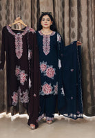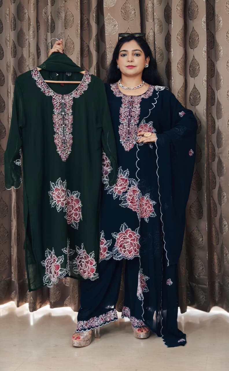 BLUE,WHITE,GREEN AND WINE AUTHENTIC PURE GEORGETTE PAKISTANI SUIT