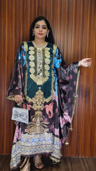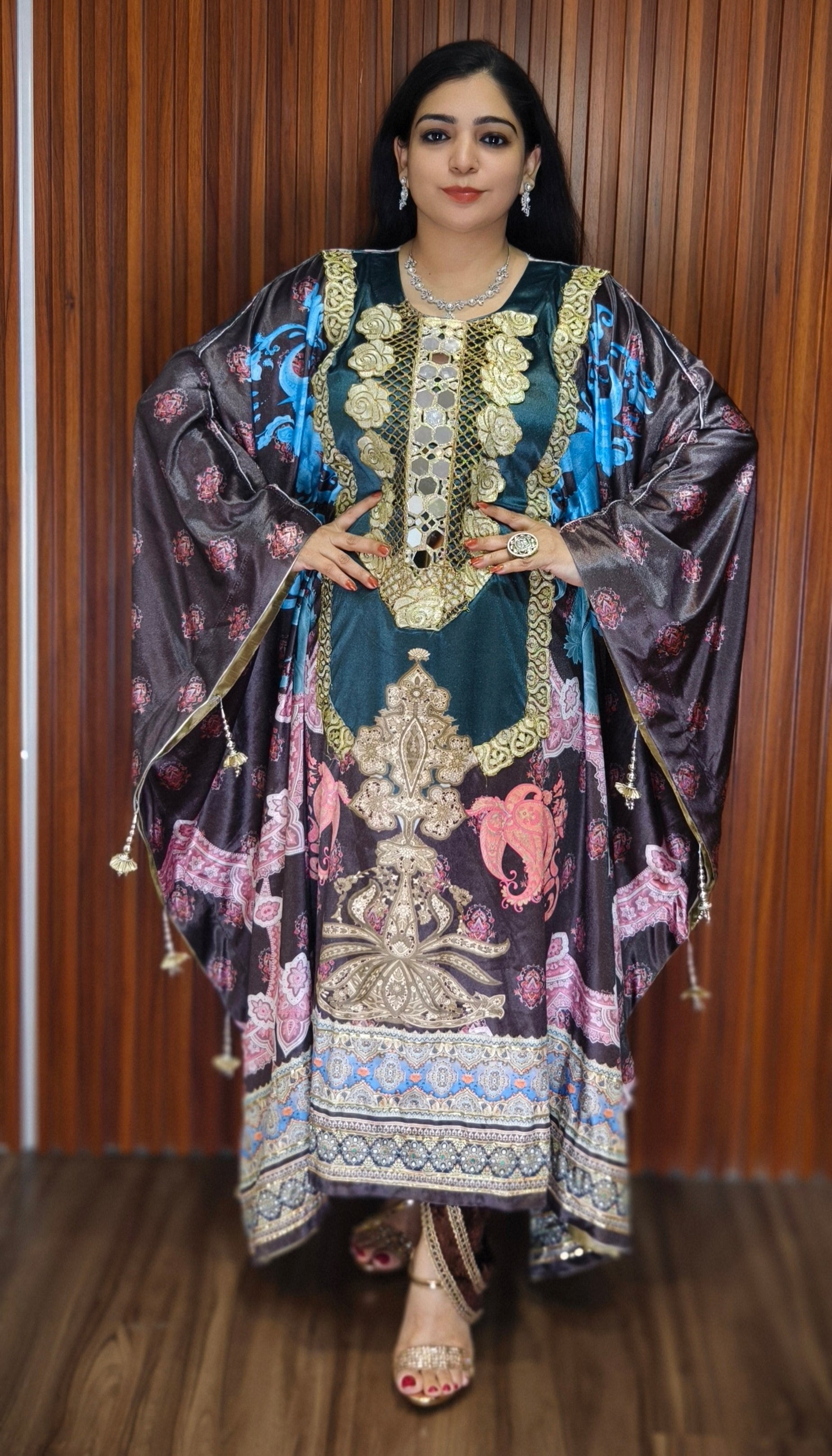 ELEGANT MULTICOULOUR TURQUOISE LONG VELVET KAFTAN