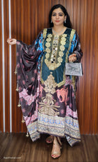 Crafted from rich velvet fabric, this kaftan features a stunning turquoise hue that exudes sophistication. The flowing silhouette ensures a relaxed fit, making it perfect for both casual and semi-formal occasions. With its timeless design and plush texture, this kaftan adds a touch of glamour to any wardrobe. Ideal for evening events or lounging in style, it blends traditional charm with modern elegance.