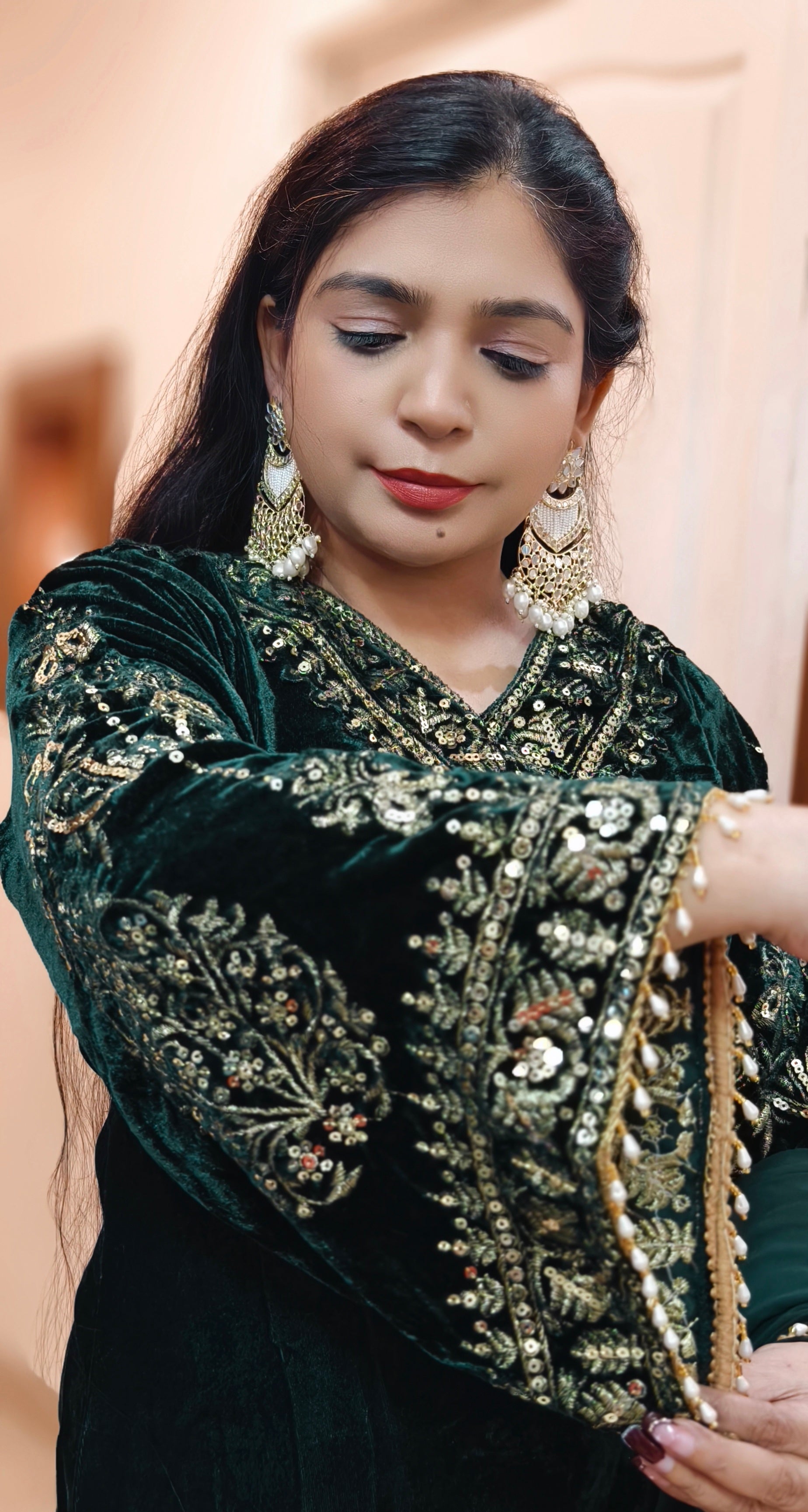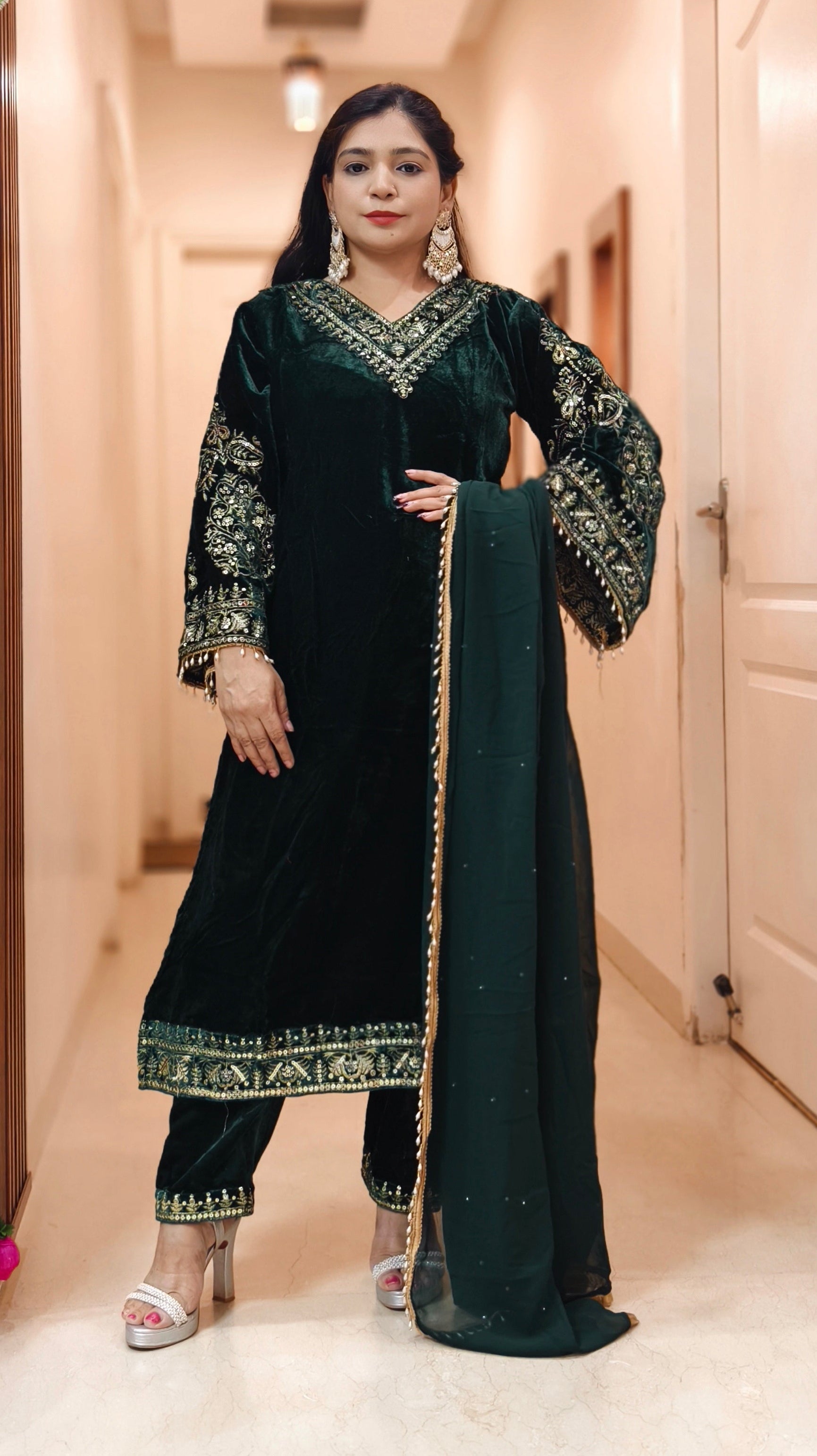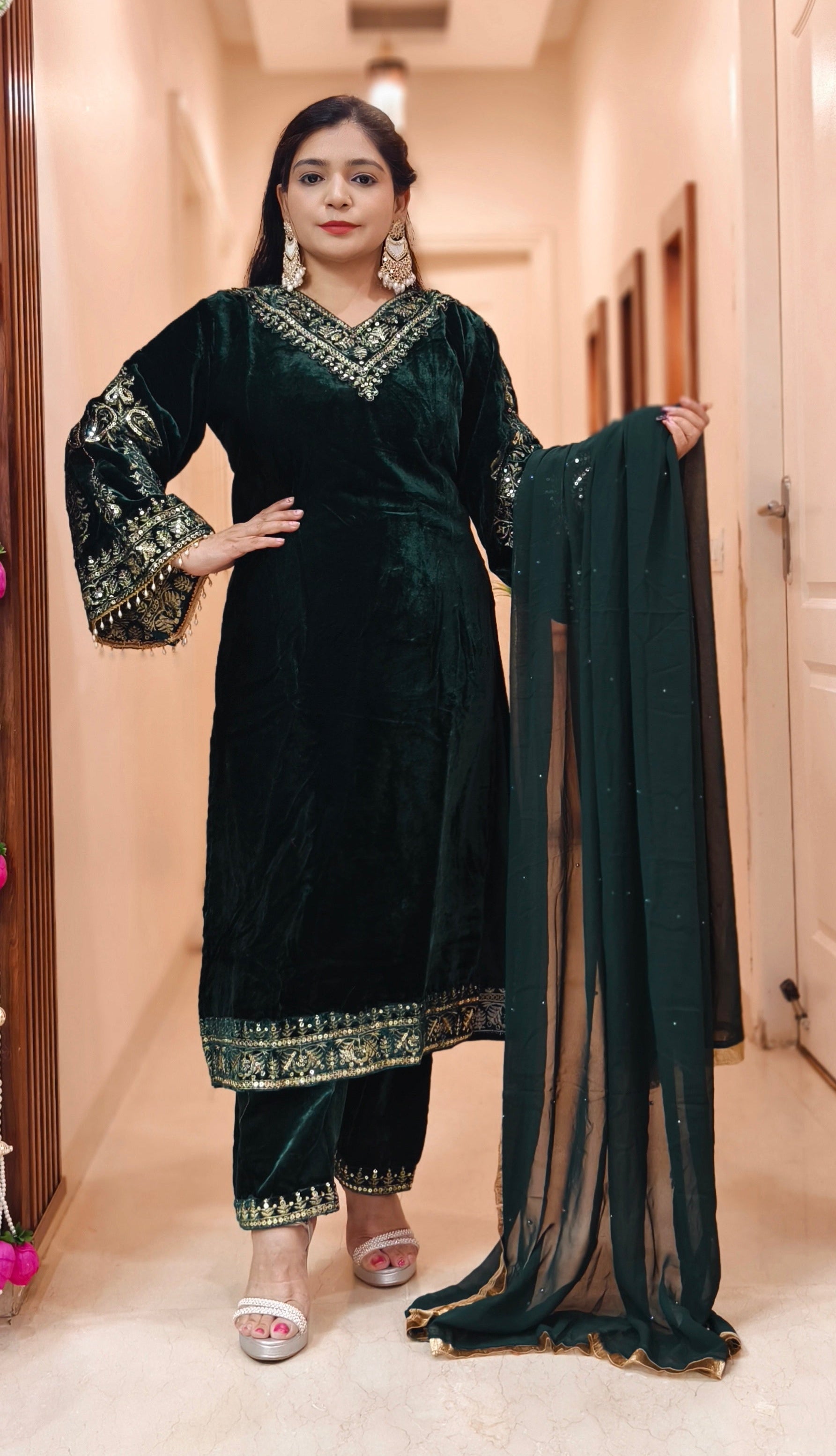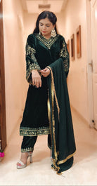 EXCLUSIVE MORPINCH MICRO VELVET SUIT WITH LACE WORK AND DUPATTA