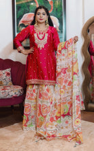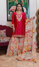 HOT PINK PURE CREPE SARARA SUIT WITH DIGITAL PRINT DUPATTA