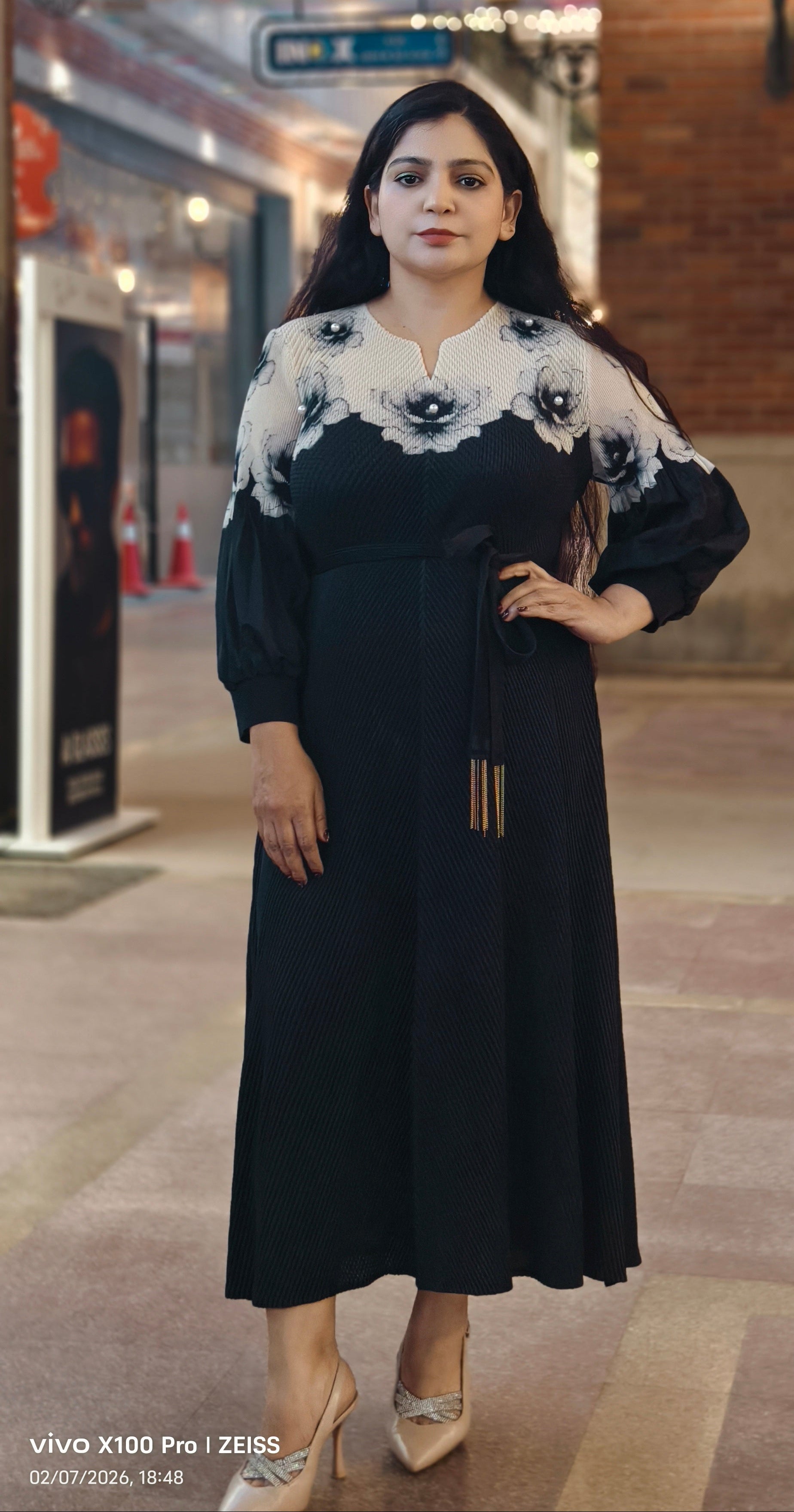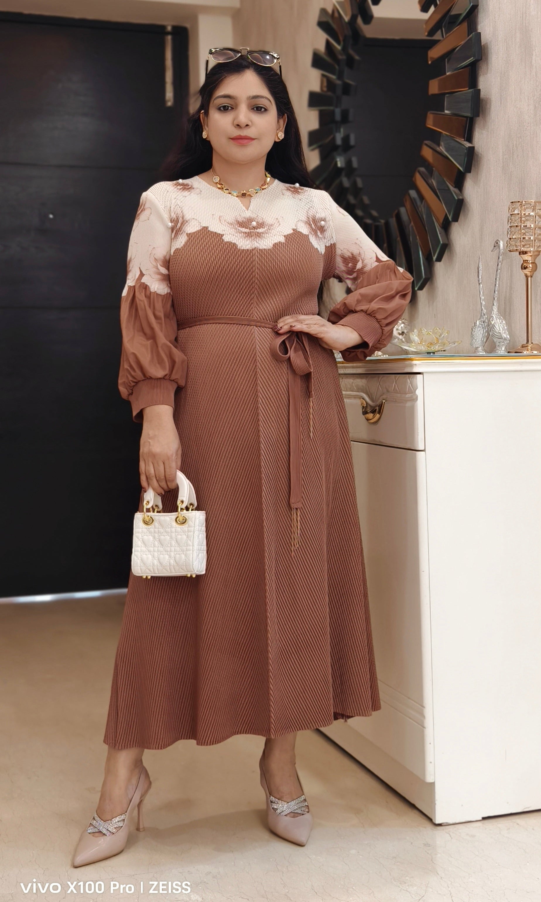 The IMPORTED BLACK AND BROWN WRINKLE FABRIC DRESS WITH FLORAL DESIGN features a vibrant, bold magenta pink color, creating a striking and elegant look. Crafted from high-quality wrinkle-resistant fabric, it ensures comfort and durability while maintaining a stylish, effortlessly chic appearance. This dress is perfect for both casual and semi-formal occasions, offering a flattering silhouette with its unique fabric texture. The lightweight and breathable material adds to its appeal, making it an ideal choice for warmer weather or layering during cooler months.