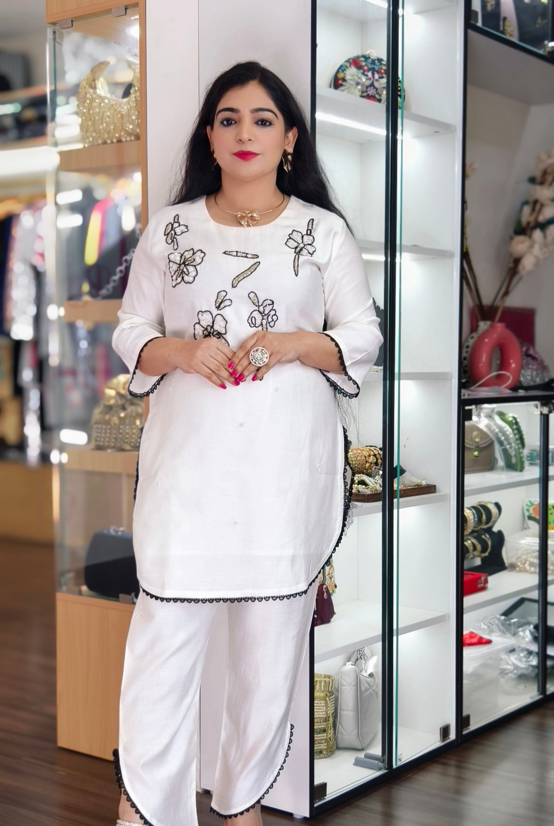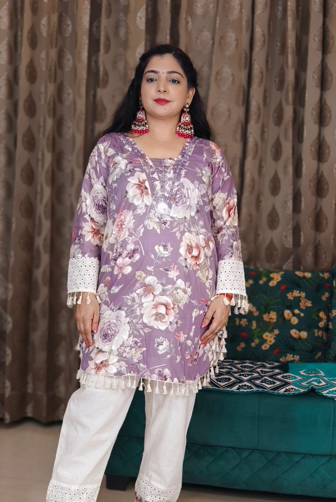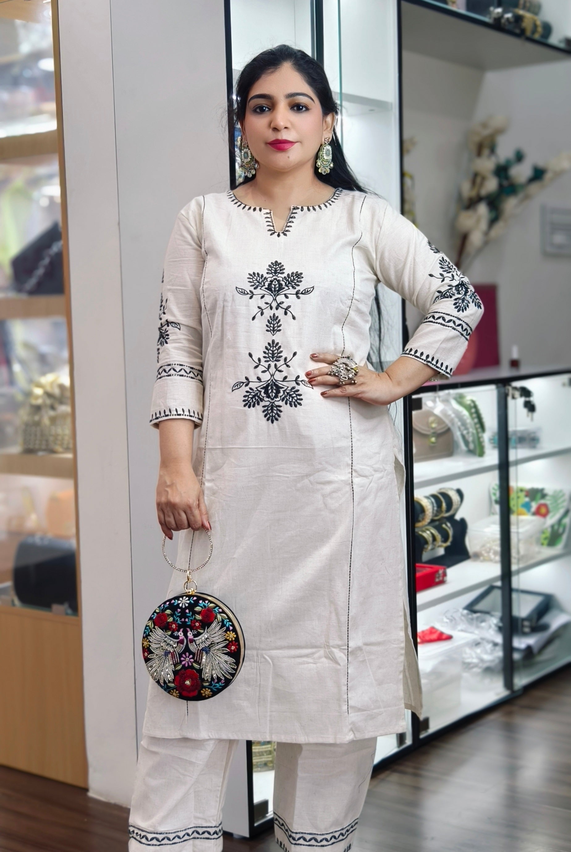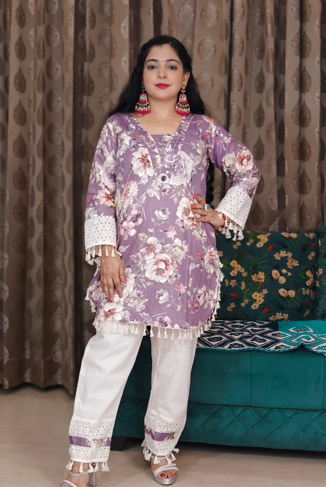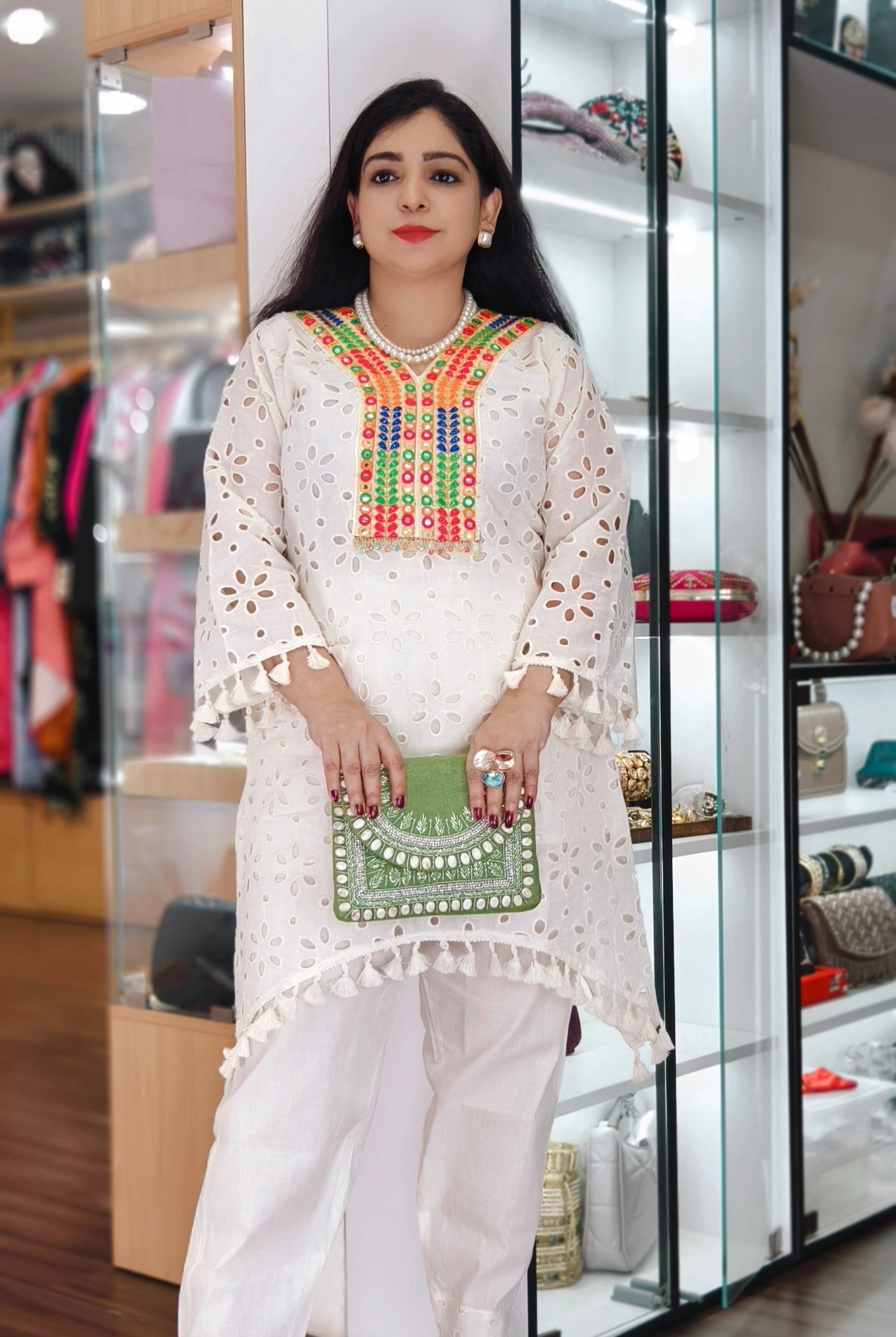 A IVORY SHIFALI COTTON ANARKALI WITH COTTON DUPATTA is a perfect blend of elegance and comfort. The outfit features a soft, breathable cotton fabric, offering all-day comfort while maintaining a refined look. The adds a modern twist to the traditional Anarkali silhouette, enhancing its flow and movement. The delicate around the edges provide a feminine, intricate touch, elevating the overall design. Paired with matching afghani pants, this ensemble combines traditional elements with contemporary style, making it ideal for casual outings, festive events, or semi-formal occasions.