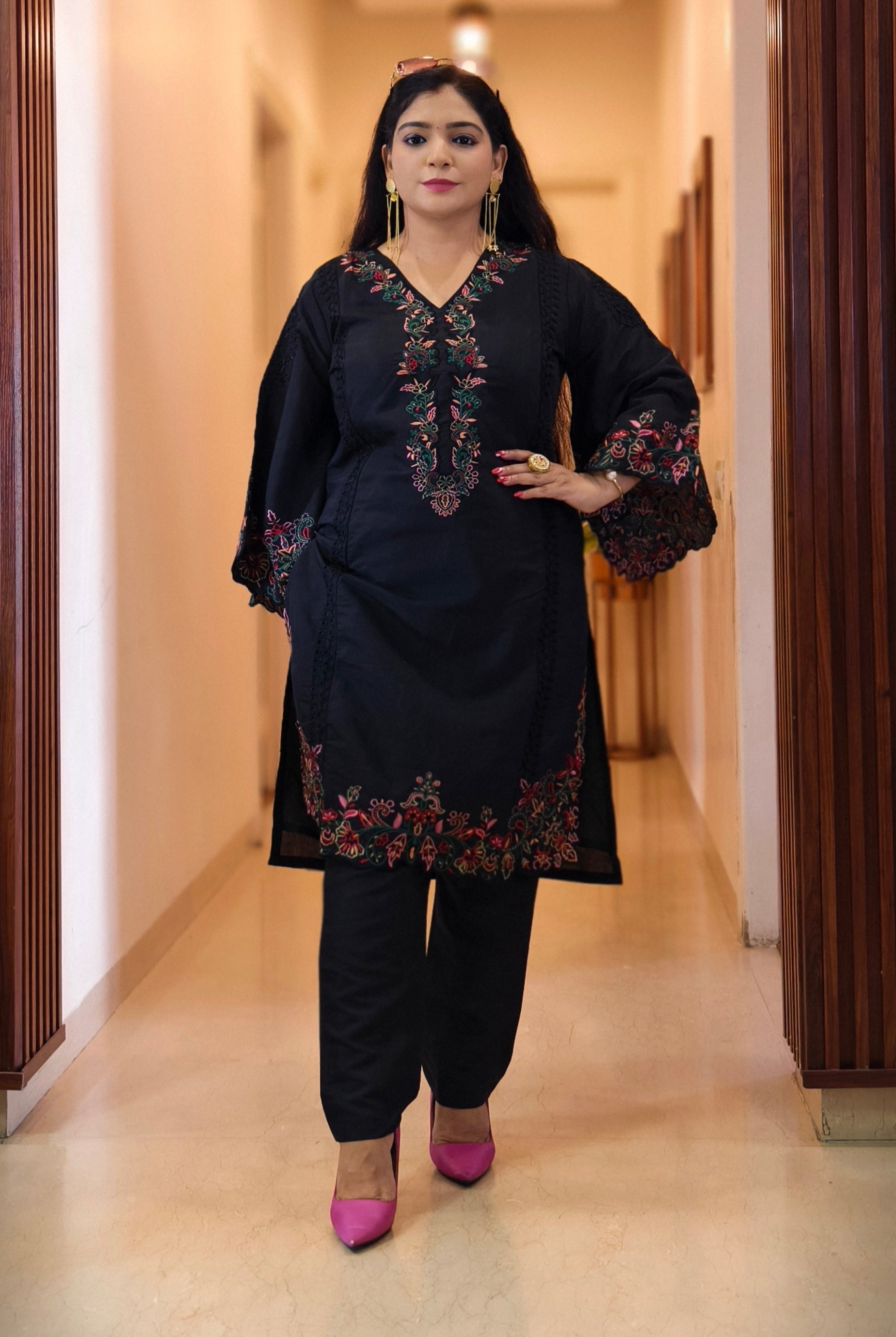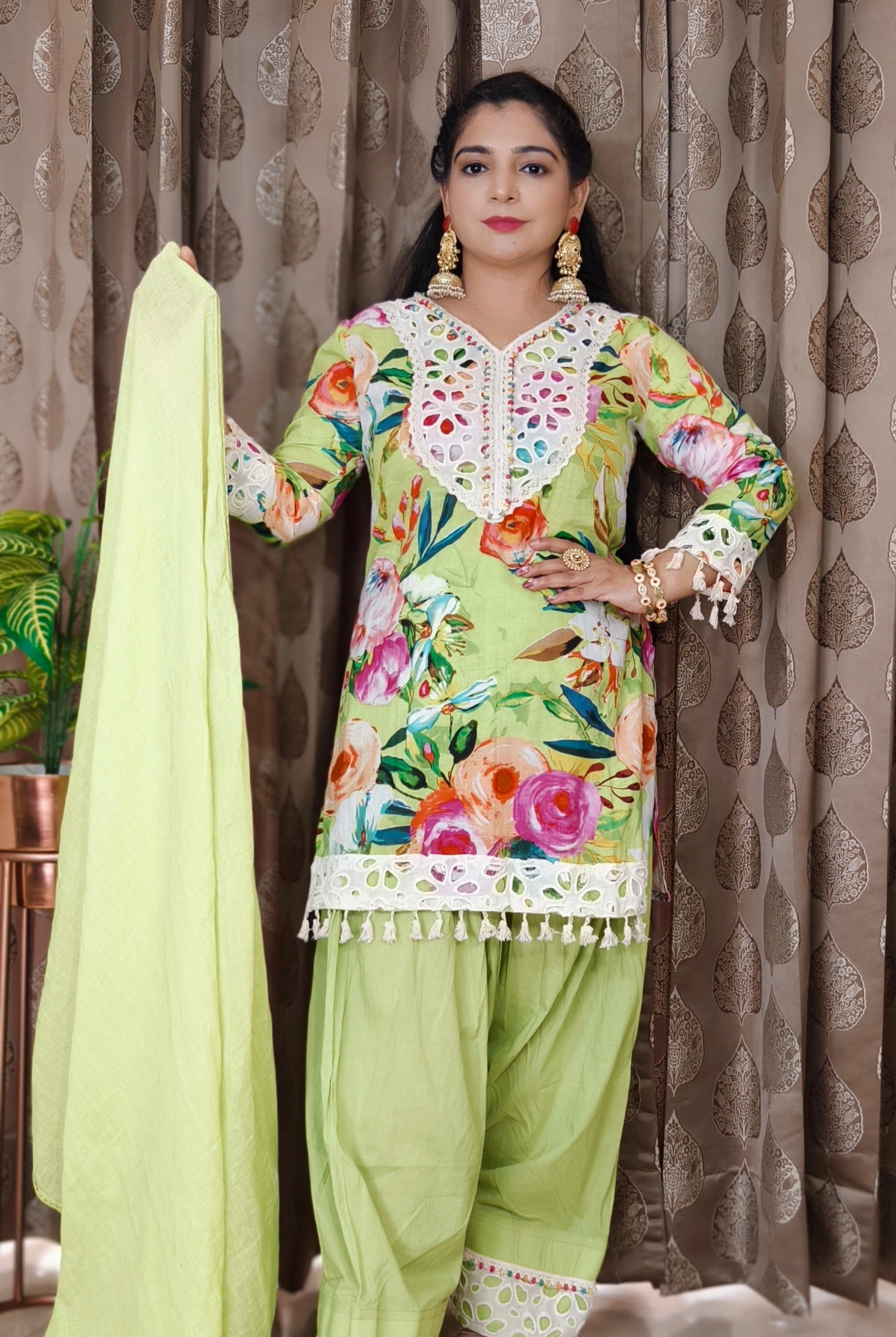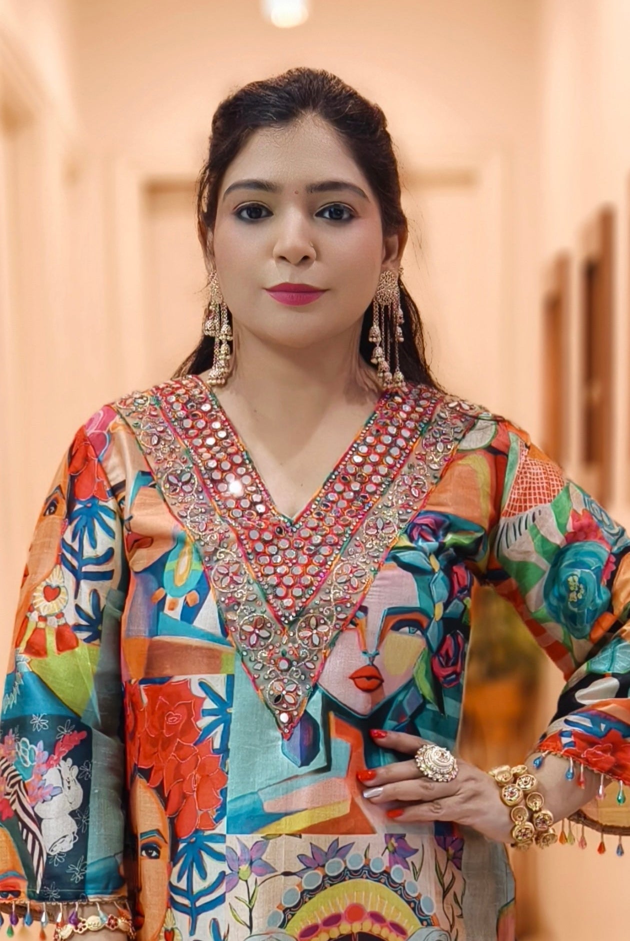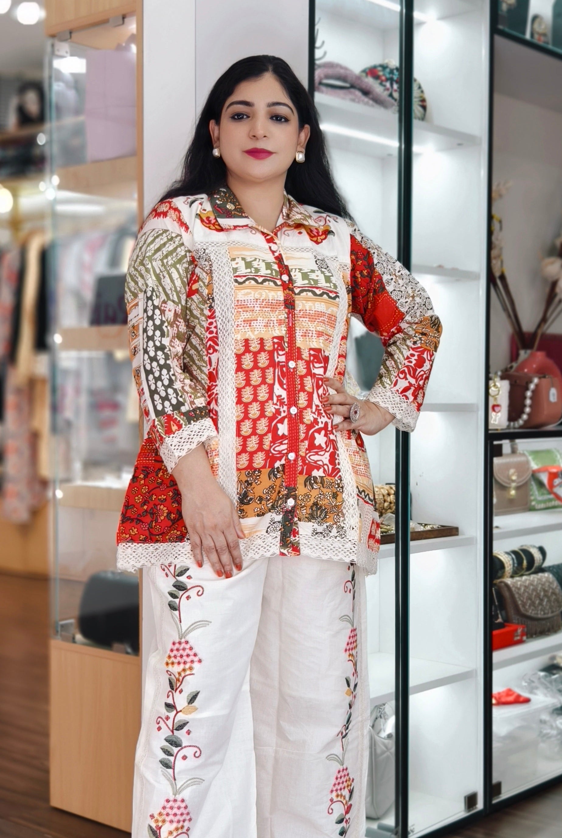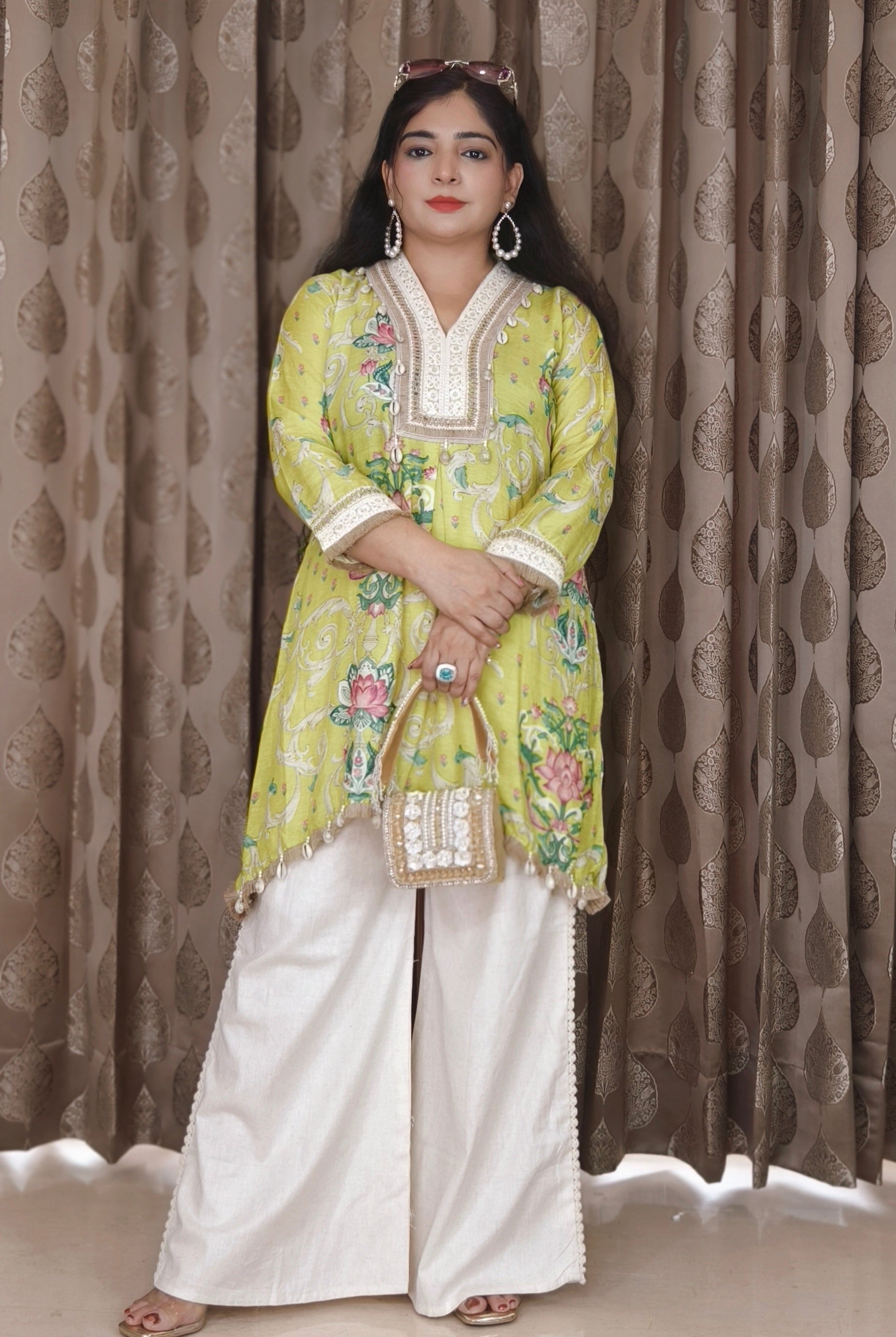 A IVORY SHIFALI COTTON ANARKALI WITH COTTON DUPATTA is a perfect blend of elegance and comfort. The outfit features a soft, breathable cotton fabric, offering all-day comfort while maintaining a refined look. The adds a modern twist to the traditional Anarkali silhouette, enhancing its flow and movement. The delicate around the edges provide a feminine, intricate touch, elevating the overall design. Paired with matching afghani pants, this ensemble combines traditional elements with contemporary style, making it ideal for casual outings, festive events, or semi-formal occasions.