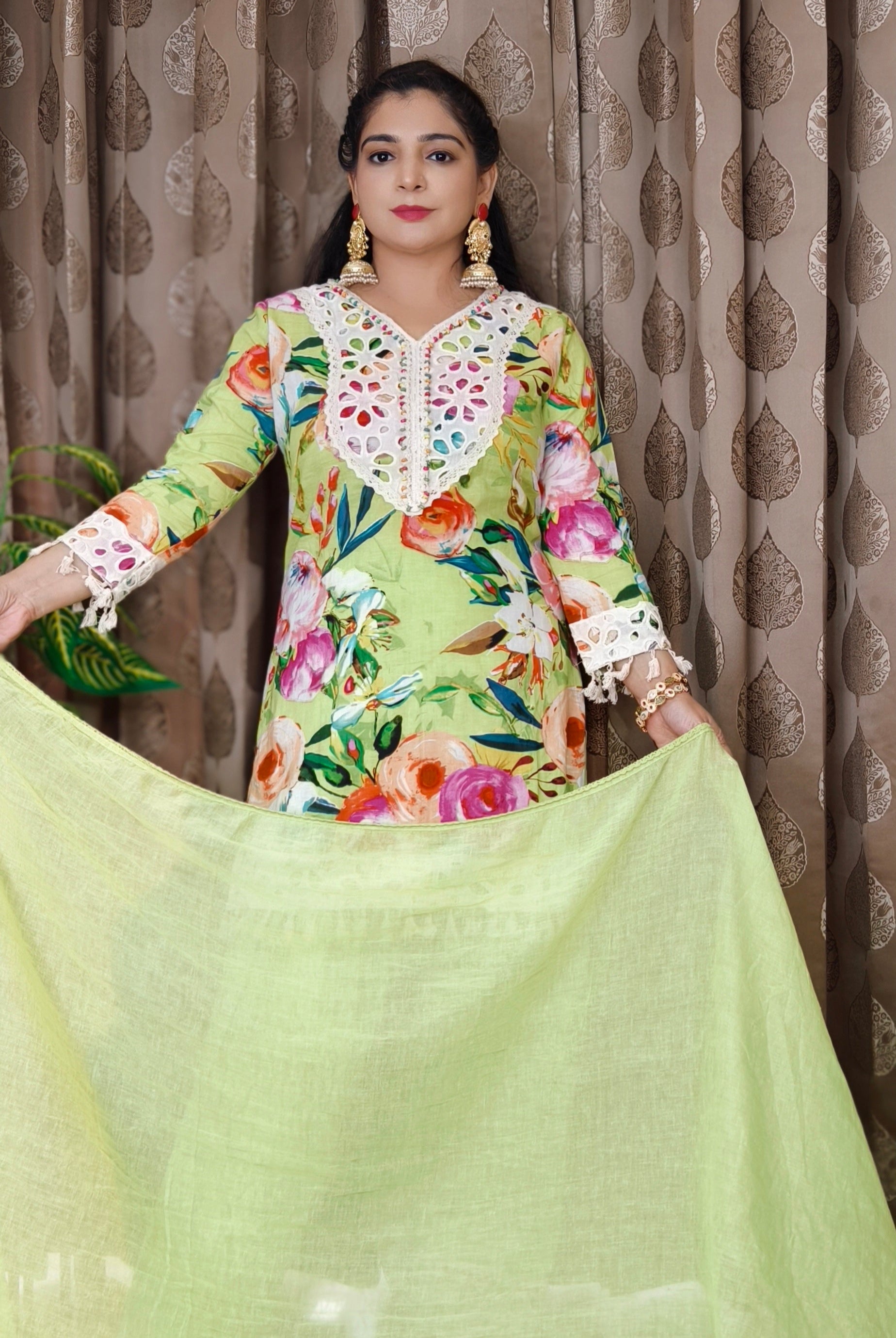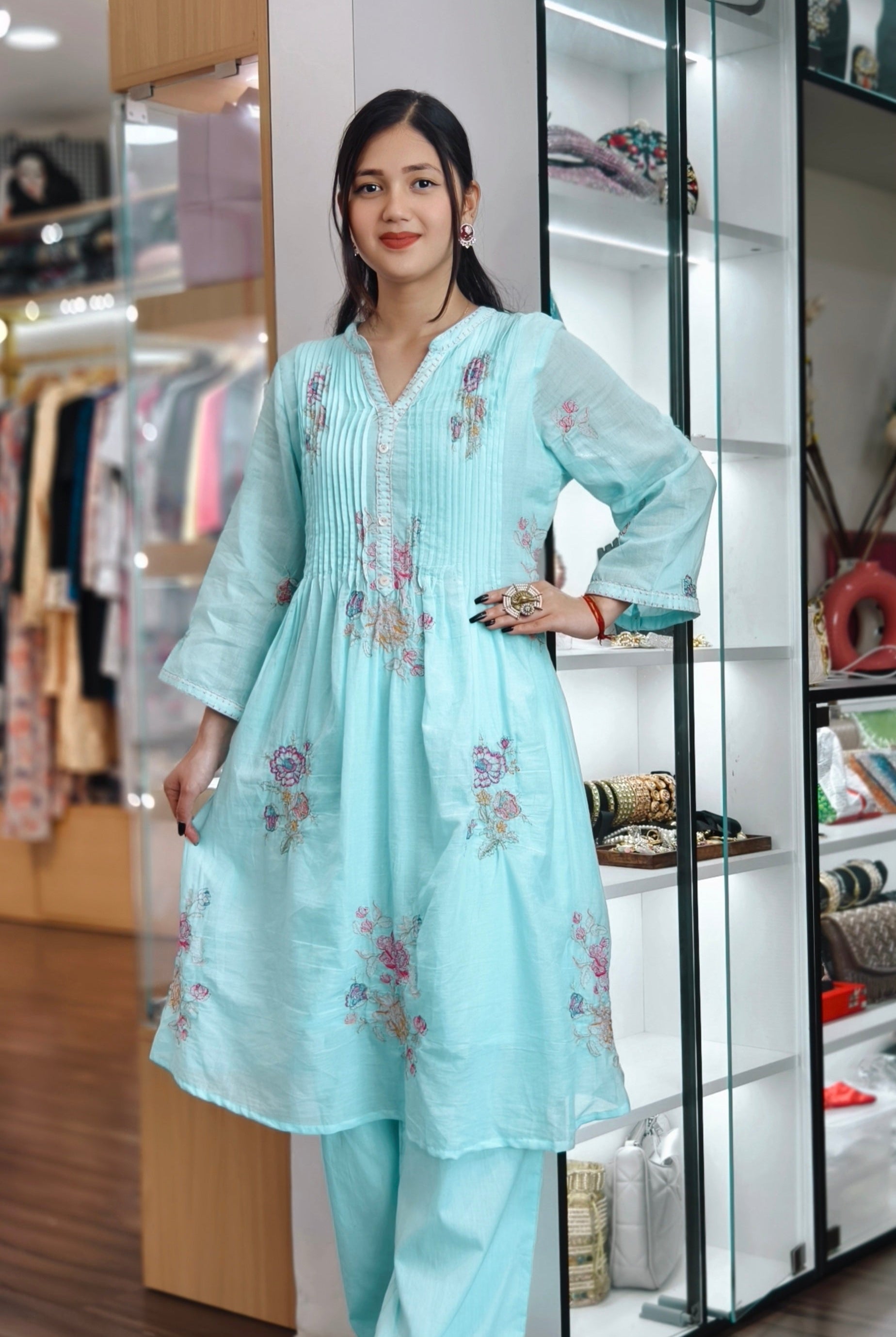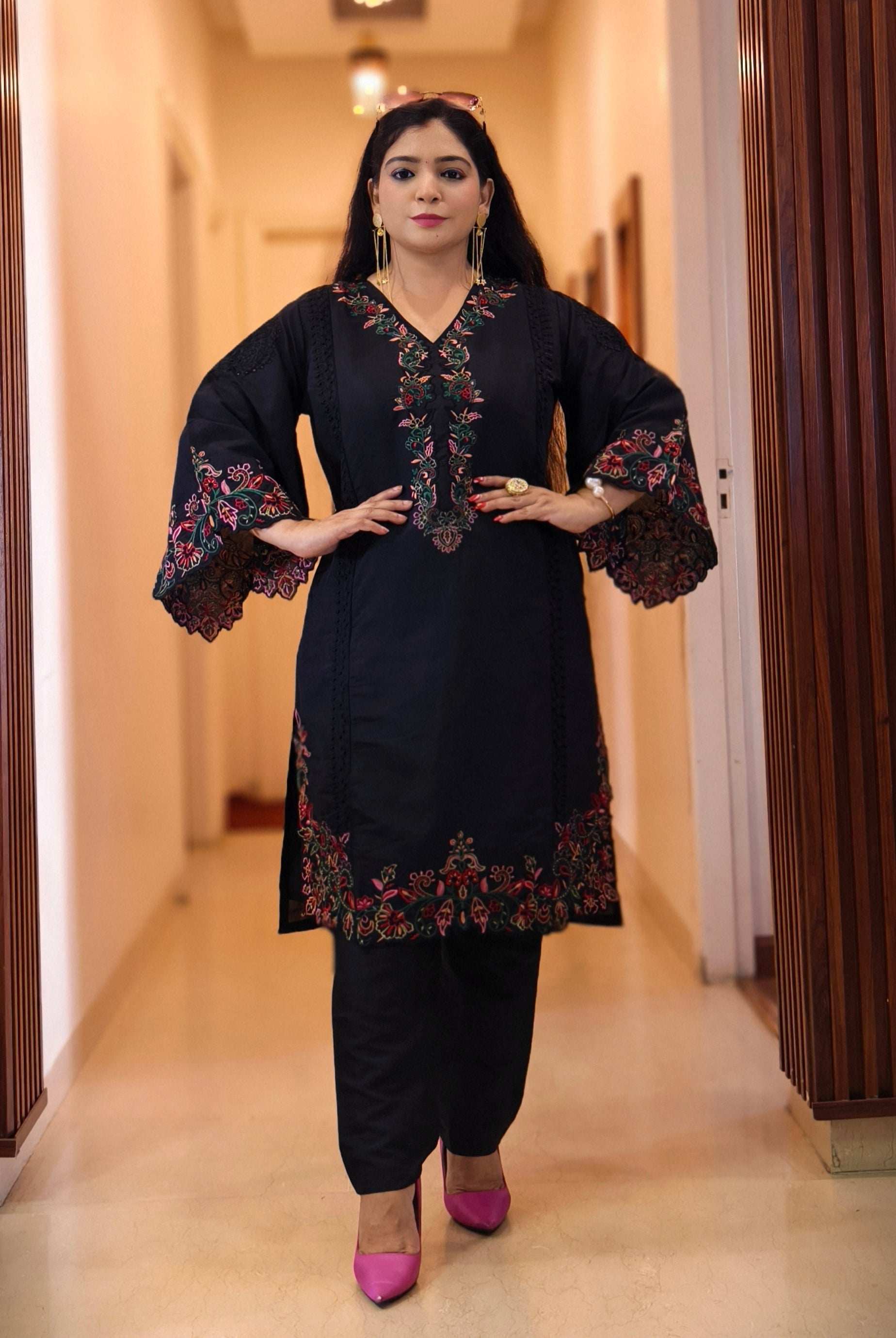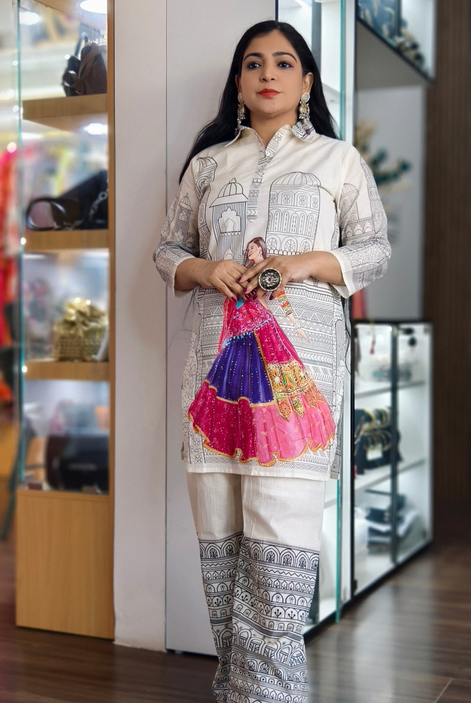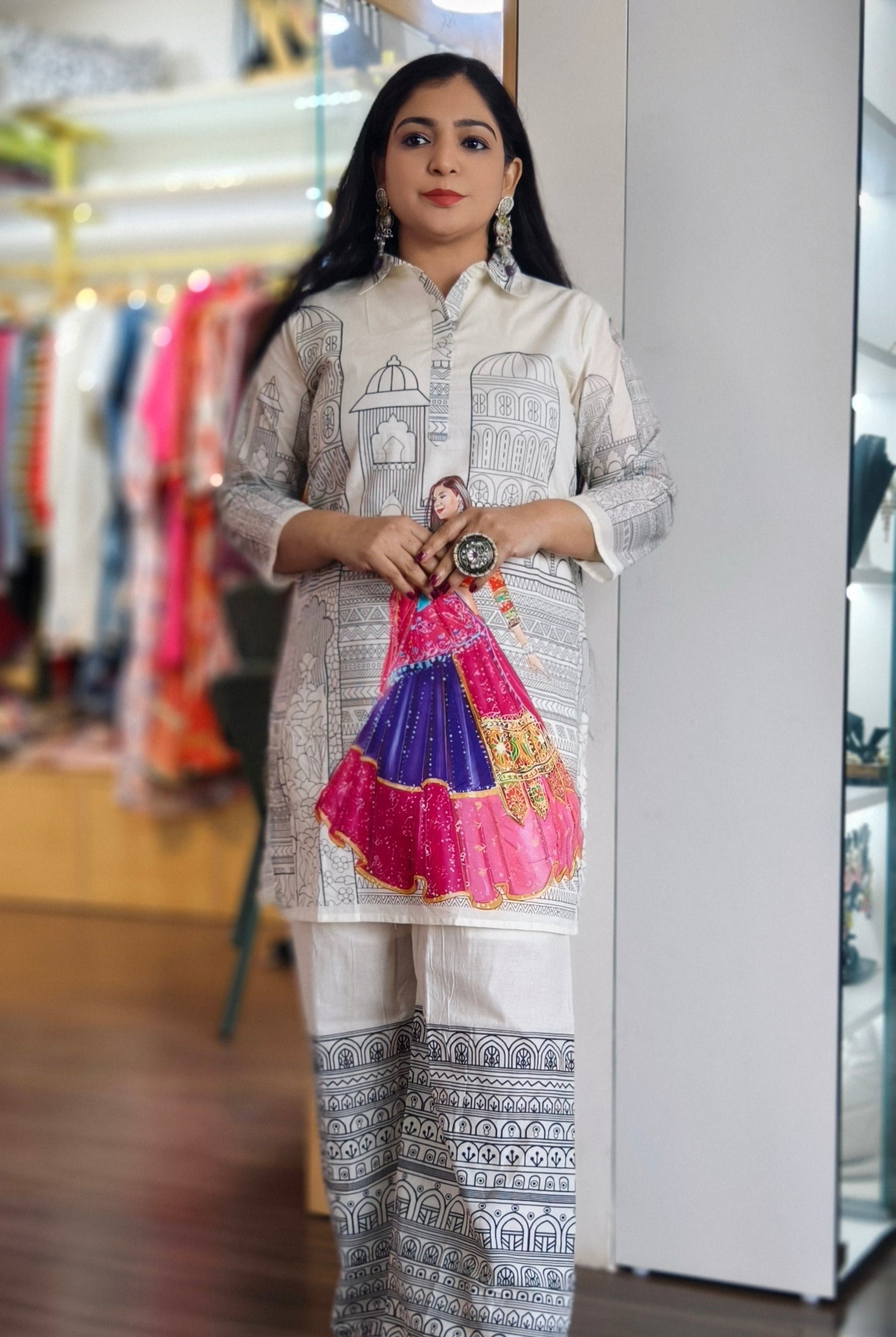 A IVORY SHIFALI COTTON ANARKALI WITH COTTON DUPATTA is a perfect blend of elegance and comfort. The outfit features a soft, breathable cotton fabric, offering all-day comfort while maintaining a refined look. The adds a modern twist to the traditional Anarkali silhouette, enhancing its flow and movement. The delicate around the edges provide a feminine, intricate touch, elevating the overall design. Paired with matching afghani pants, this ensemble combines traditional elements with contemporary style, making it ideal for casual outings, festive events, or semi-formal occasions.