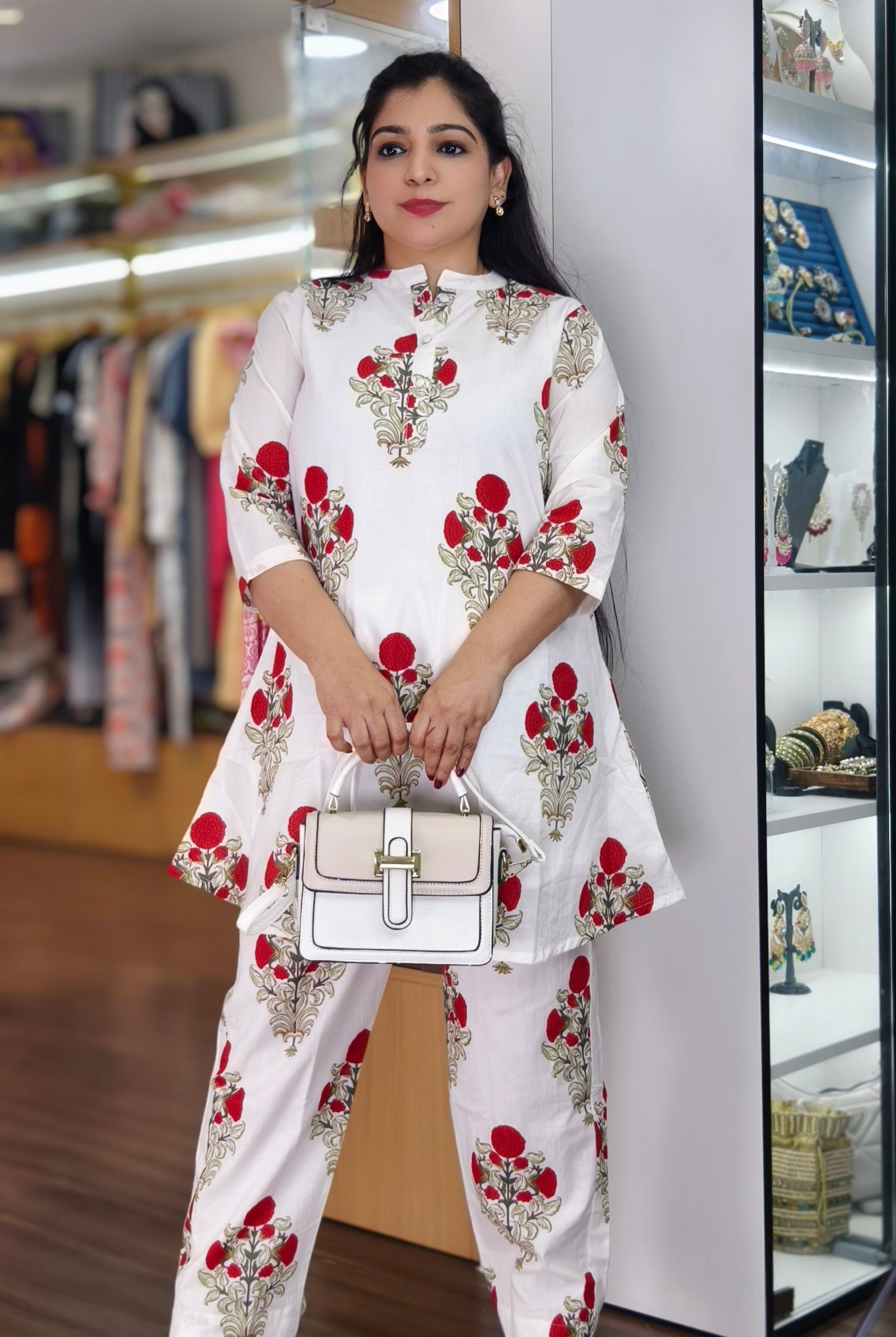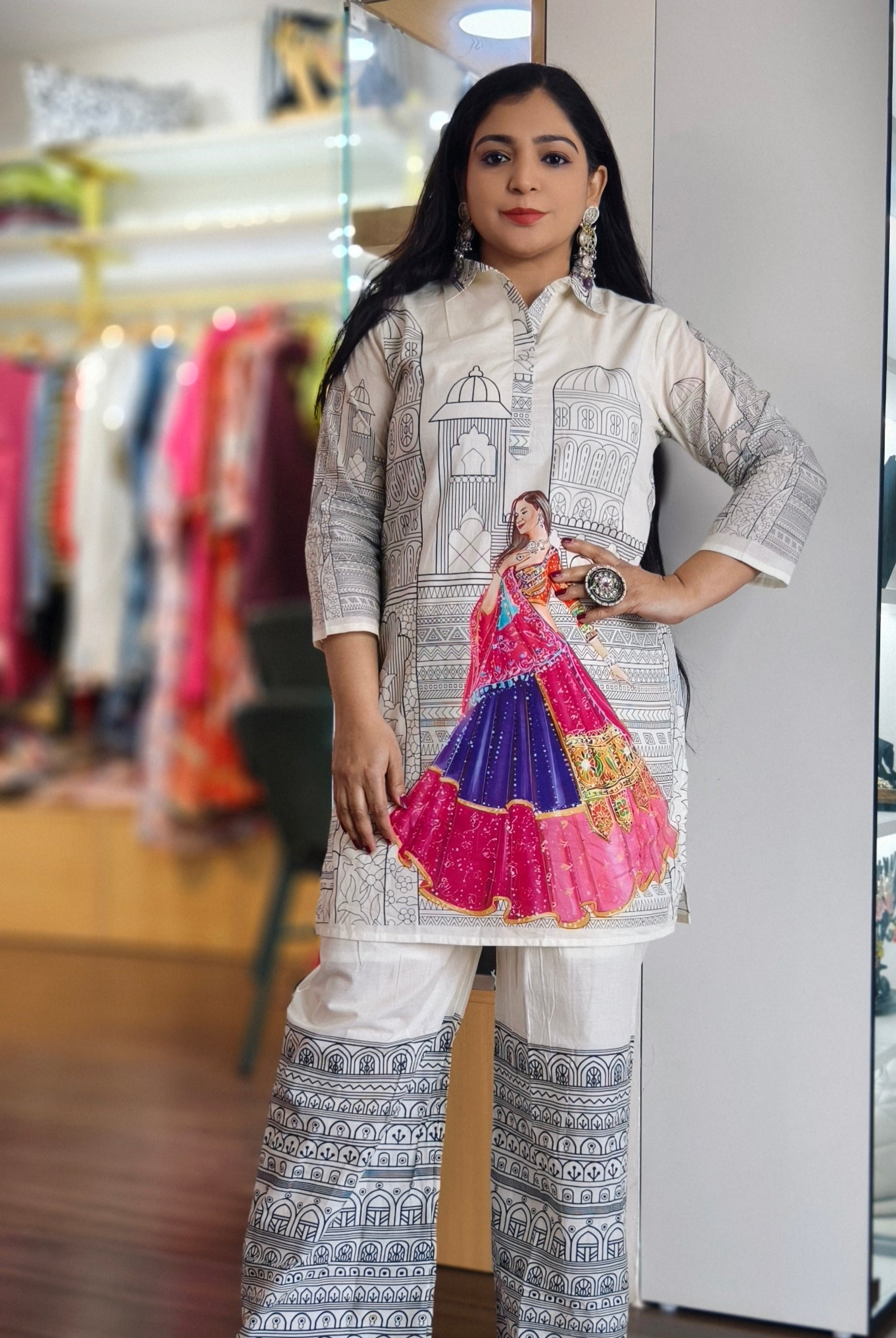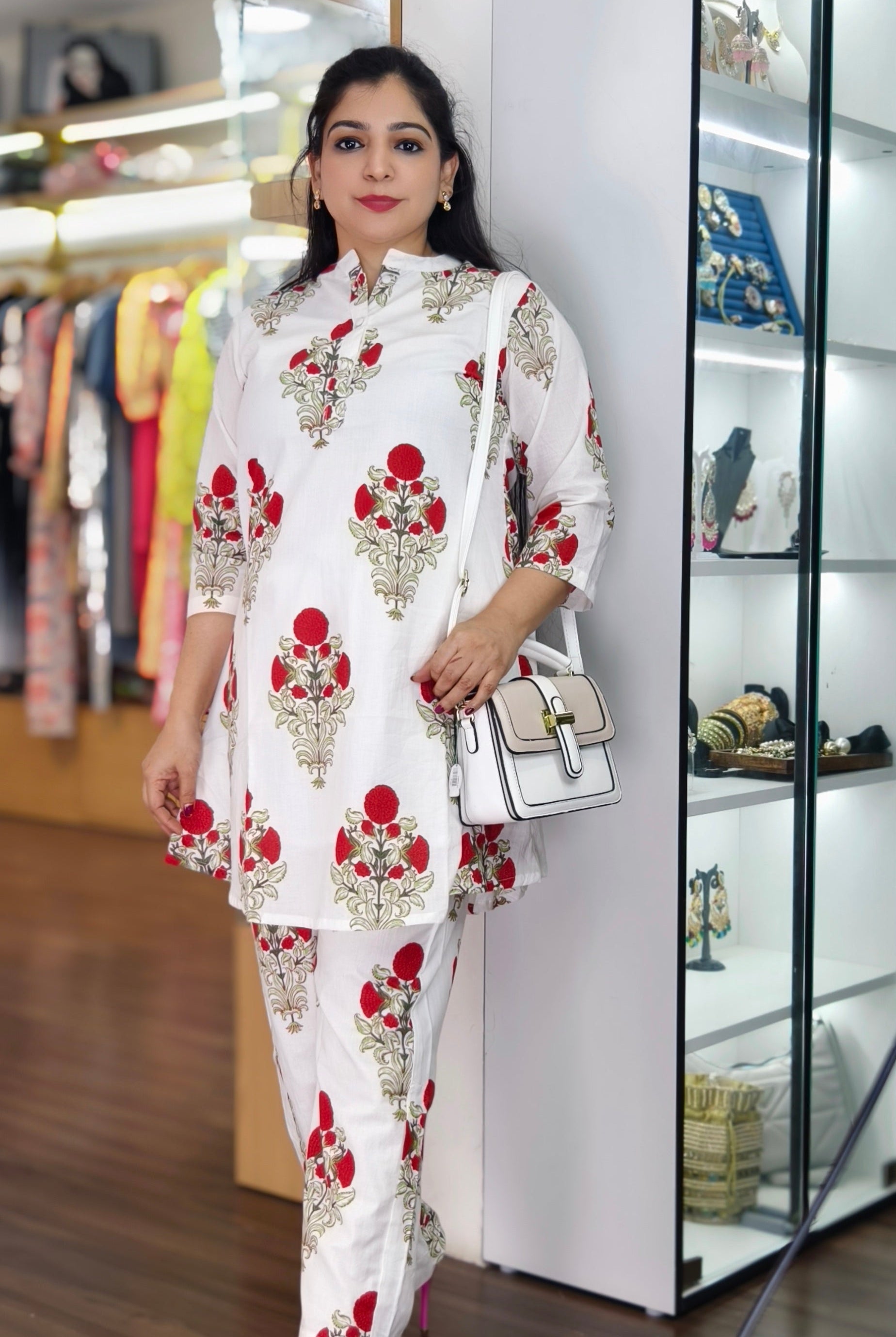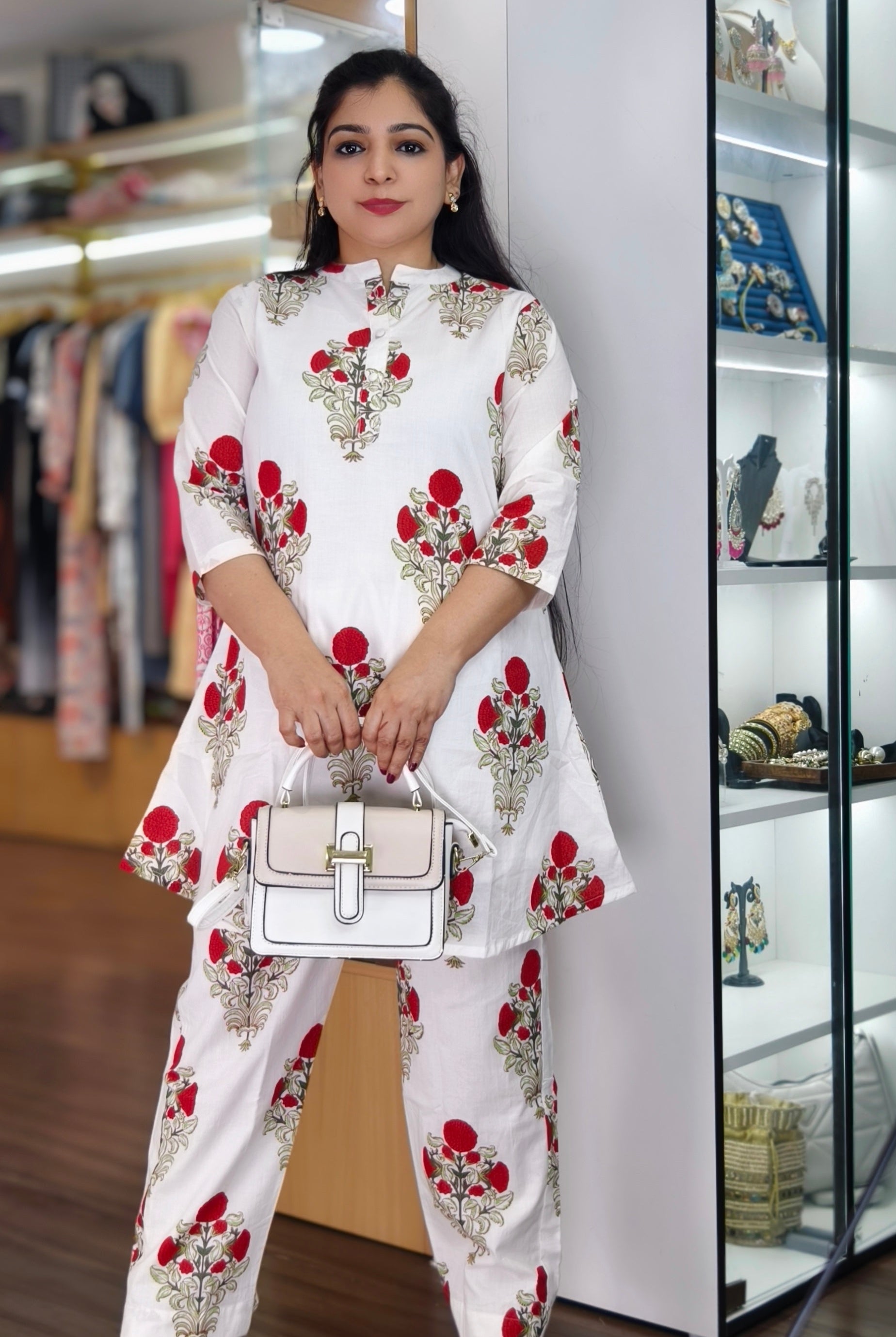 A IVORY SHIFALI COTTON ANARKALI WITH COTTON DUPATTA is a perfect blend of elegance and comfort. The outfit features a soft, breathable cotton fabric, offering all-day comfort while maintaining a refined look. The adds a modern twist to the traditional Anarkali silhouette, enhancing its flow and movement. The delicate around the edges provide a feminine, intricate touch, elevating the overall design. Paired with matching afghani pants, this ensemble combines traditional elements with contemporary style, making it ideal for casual outings, festive events, or semi-formal occasions.