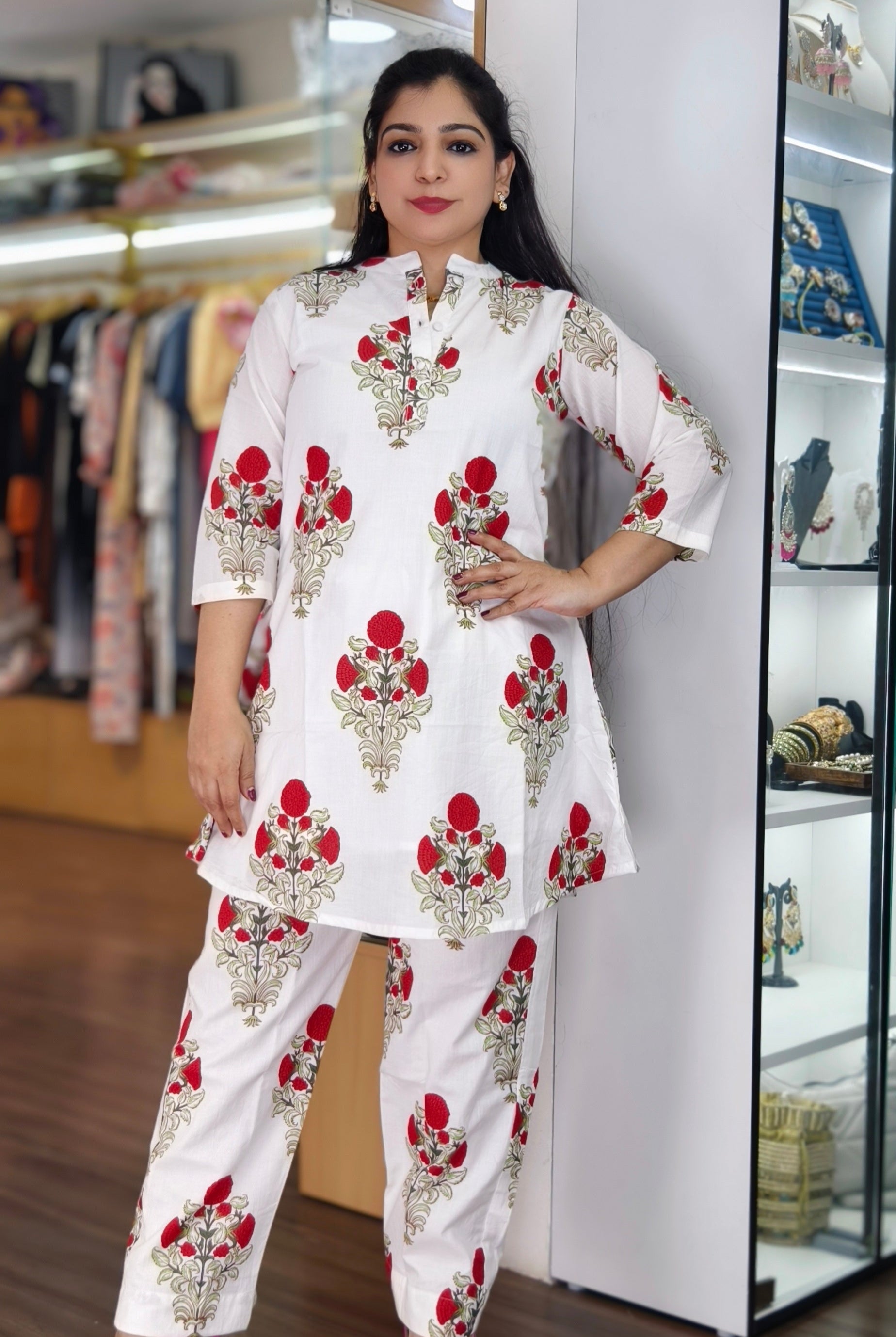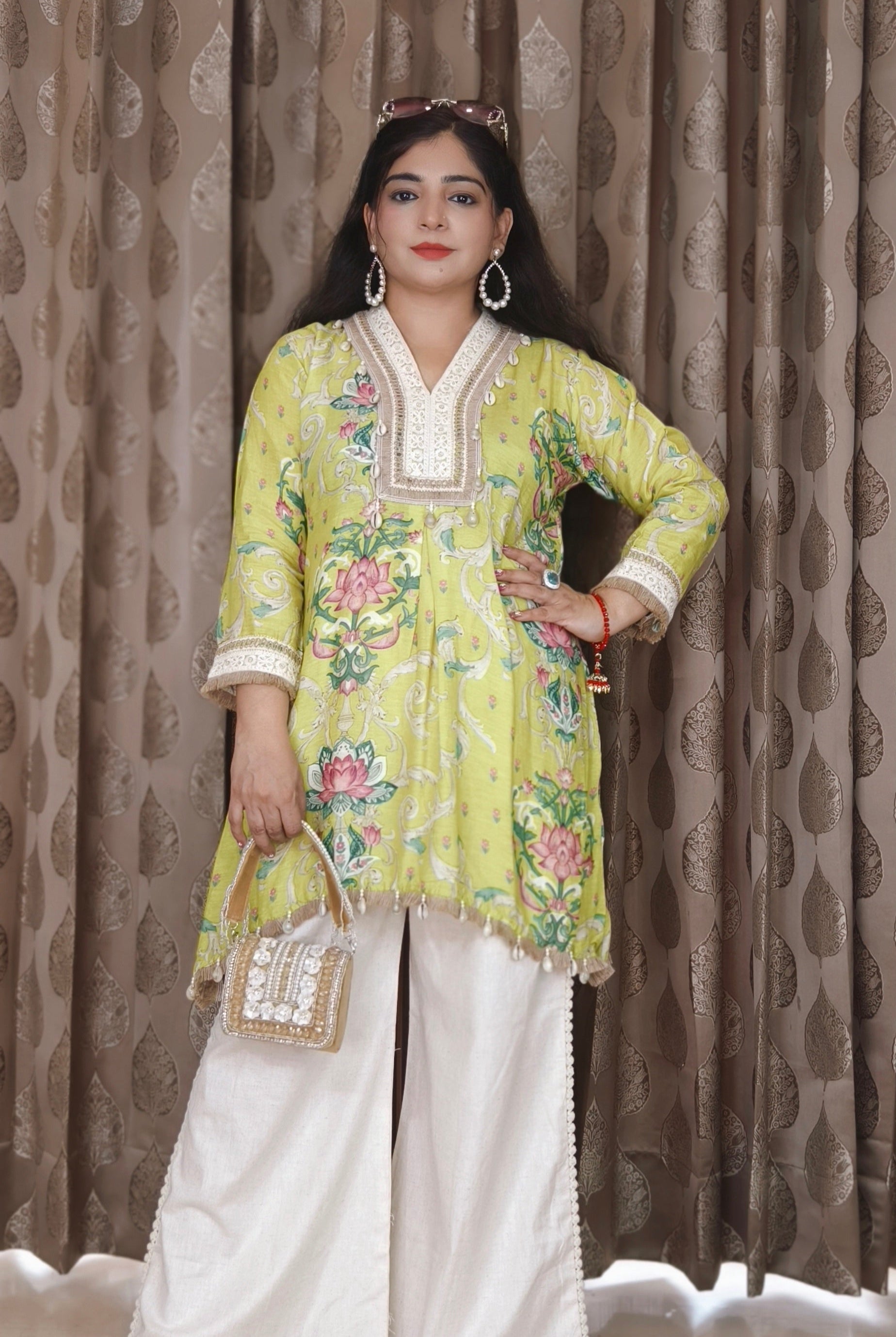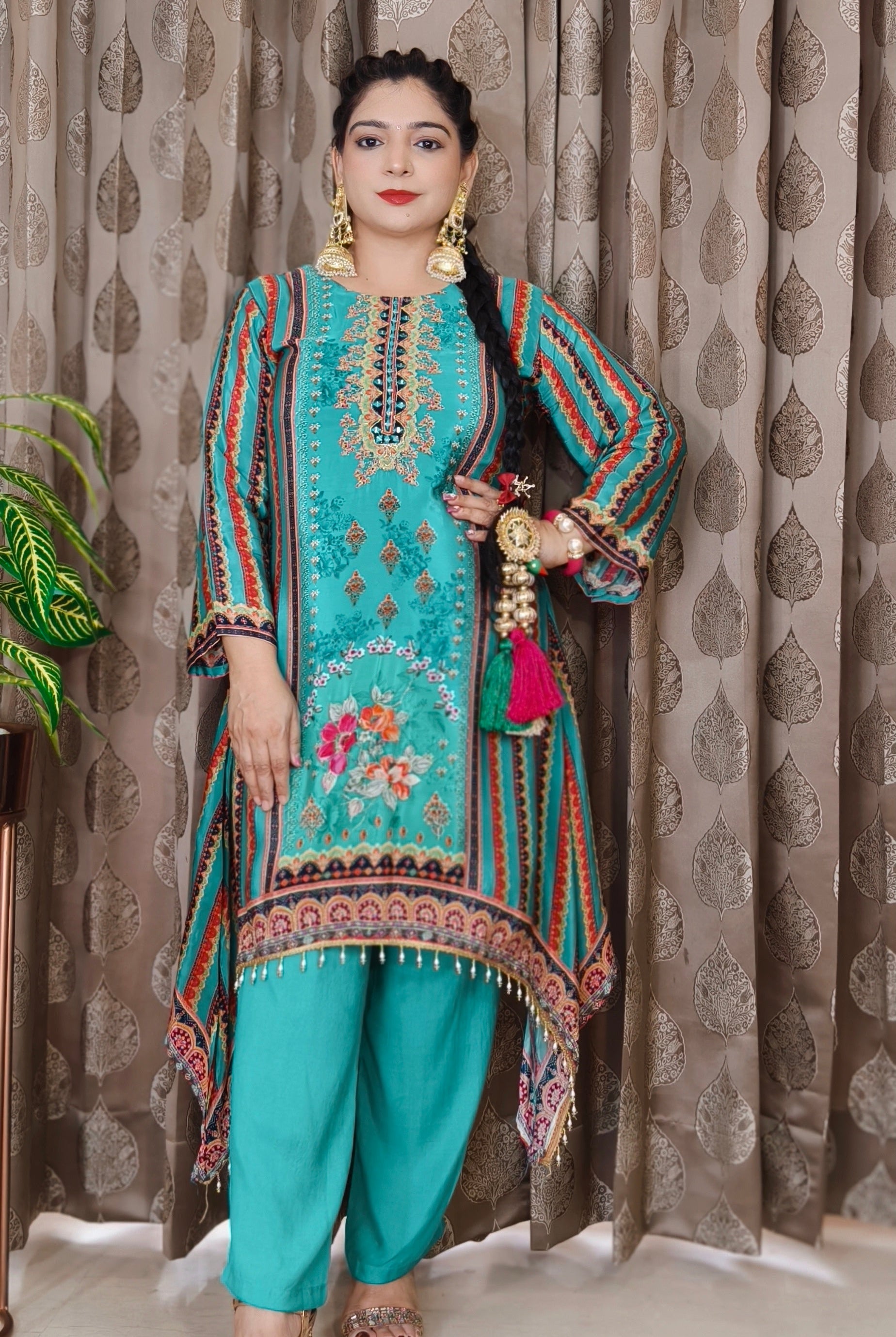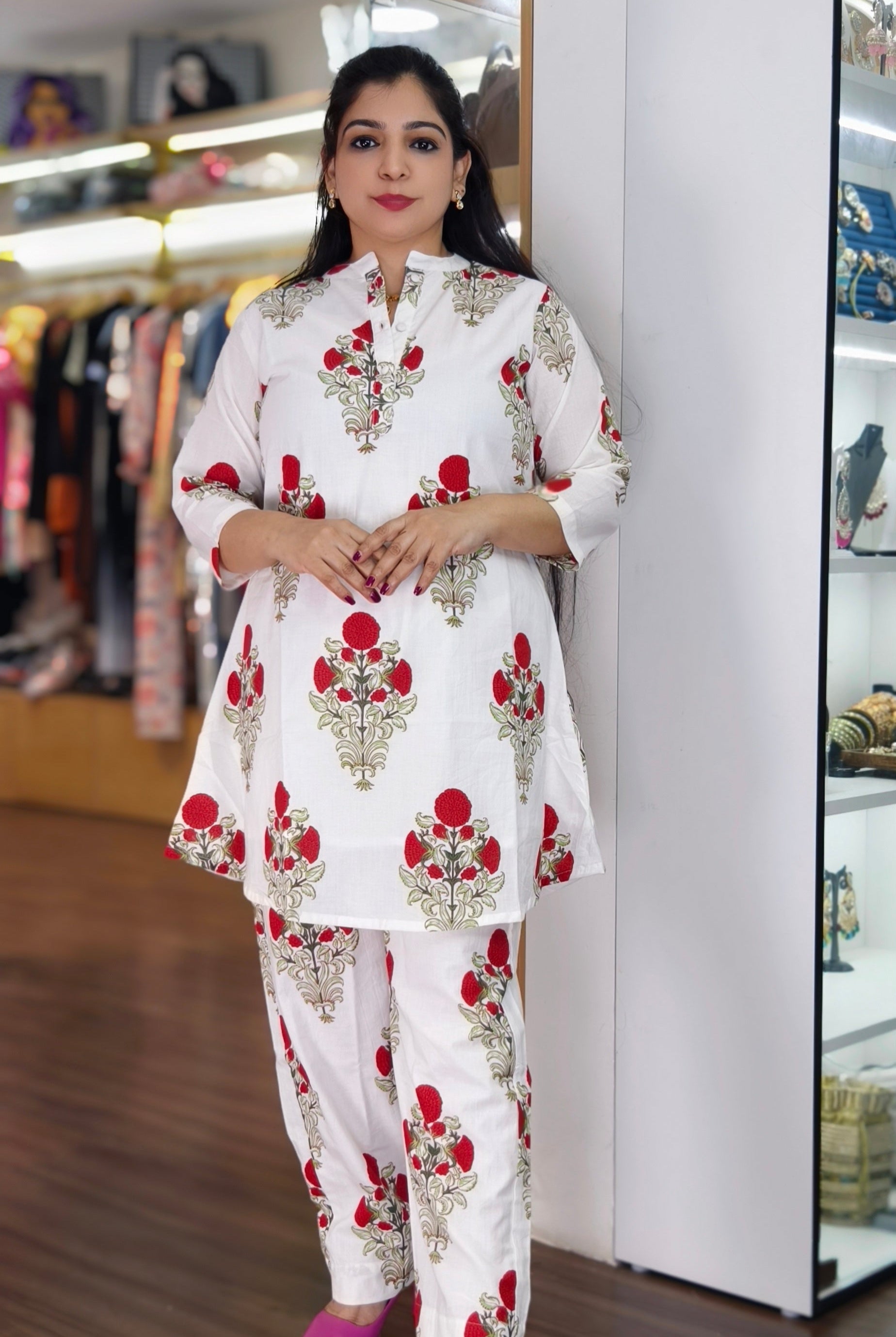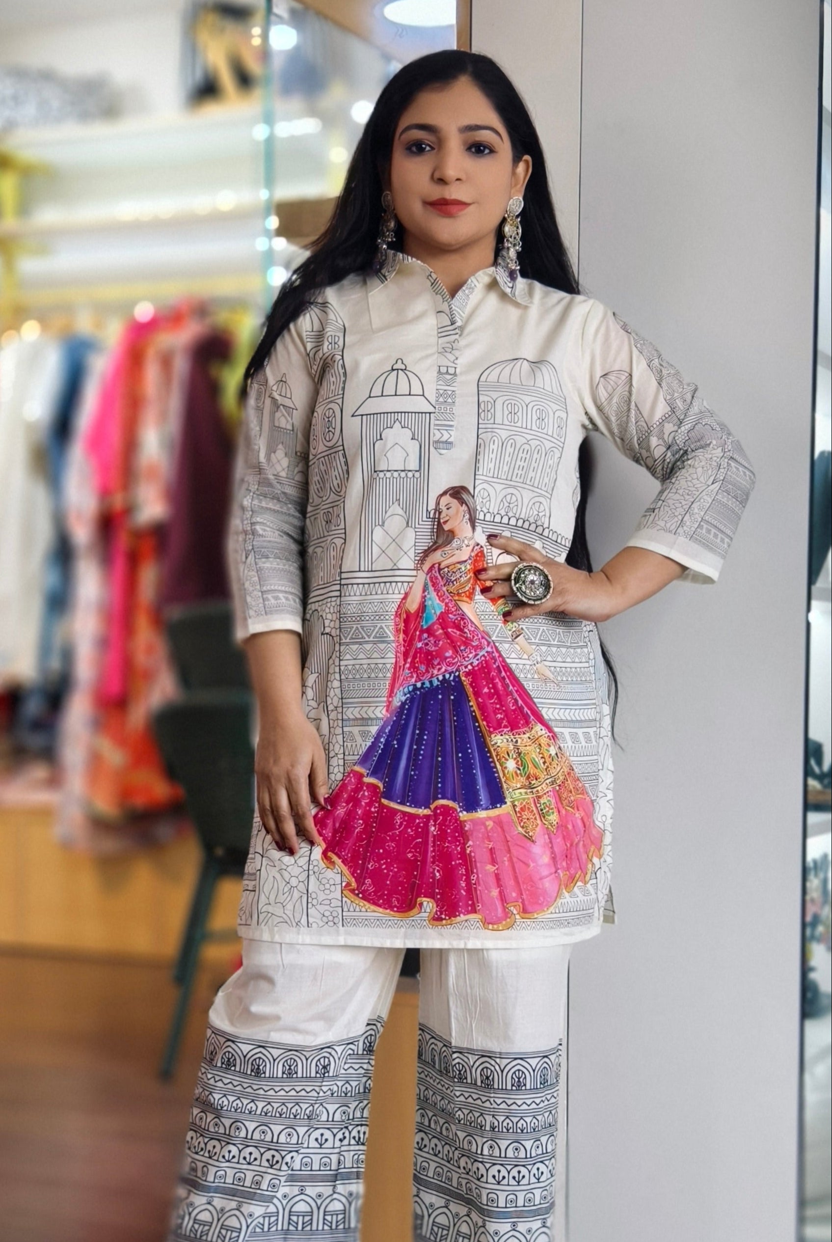A IVORY SHIFALI COTTON ANARKALI WITH COTTON DUPATTA is a perfect blend of elegance and comfort. The outfit features a soft, breathable cotton fabric, offering all-day comfort while maintaining a refined look. The adds a modern twist to the traditional Anarkali silhouette, enhancing its flow and movement. The delicate around the edges provide a feminine, intricate touch, elevating the overall design. Paired with matching afghani pants, this ensemble combines traditional elements with contemporary style, making it ideal for casual outings, festive events, or semi-formal occasions.