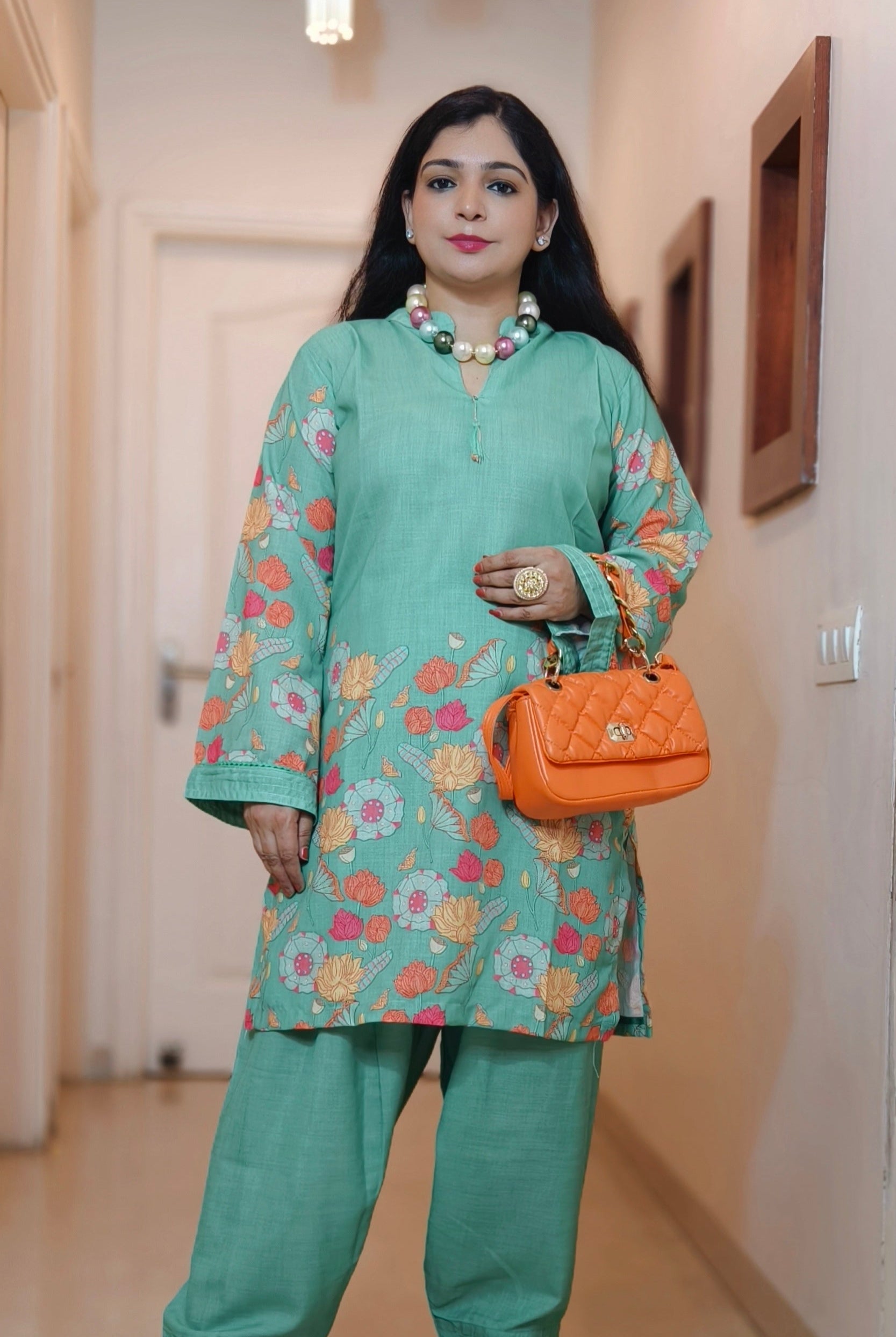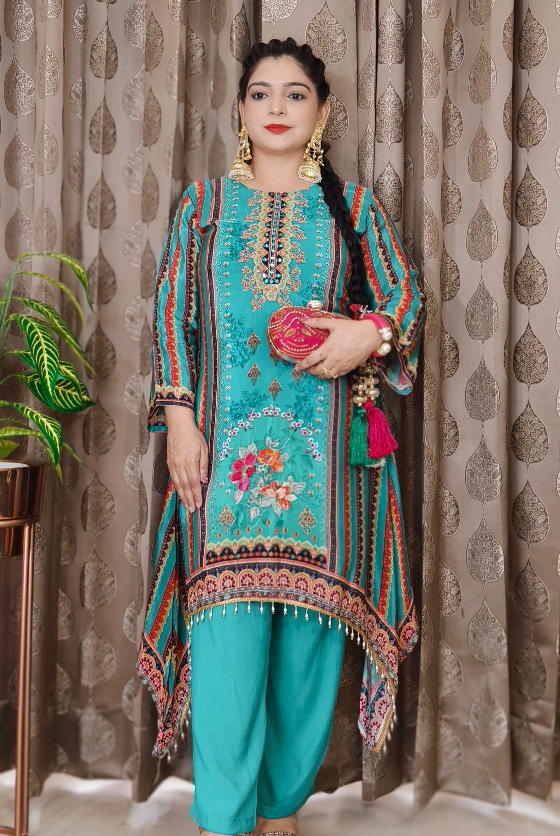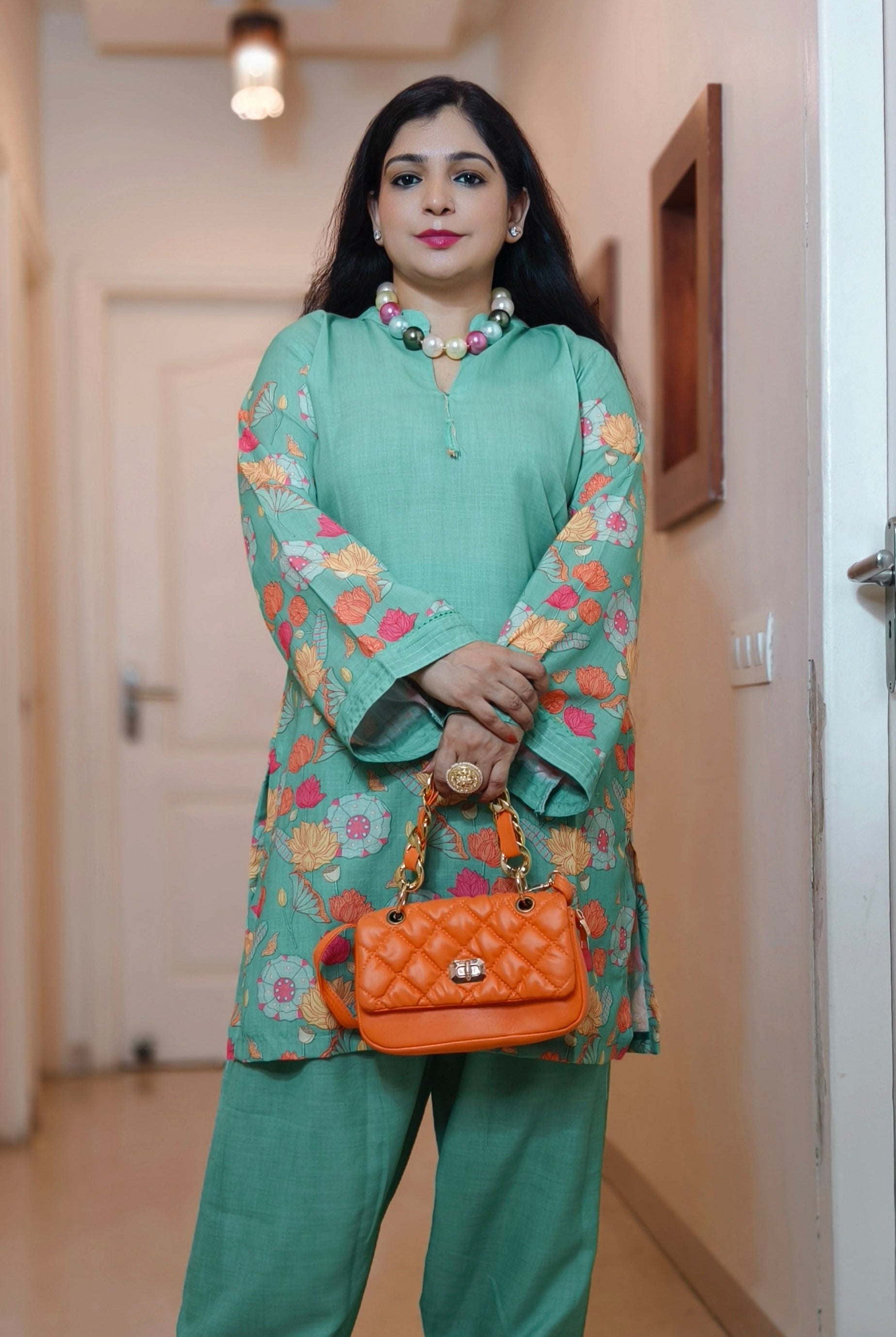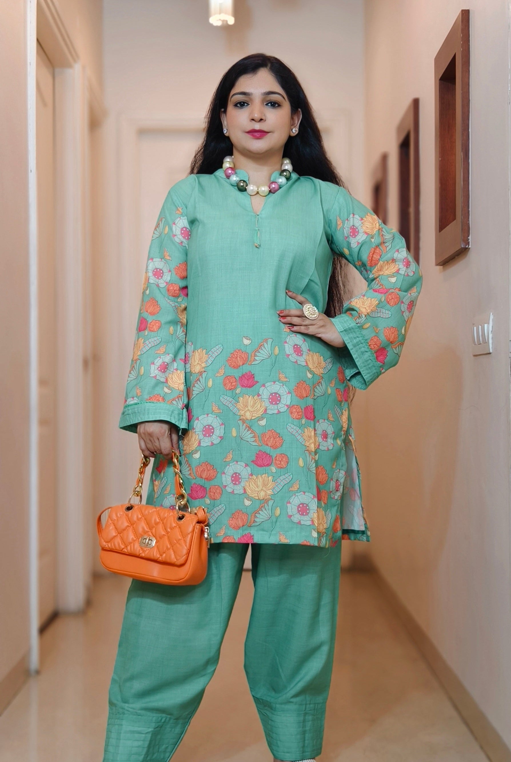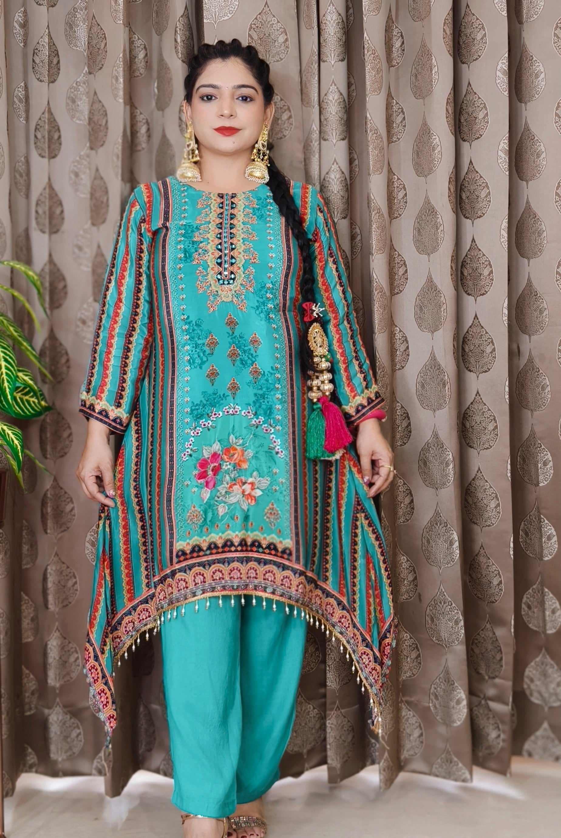 A IVORY SHIFALI COTTON ANARKALI WITH COTTON DUPATTA is a perfect blend of elegance and comfort. The outfit features a soft, breathable cotton fabric, offering all-day comfort while maintaining a refined look. The adds a modern twist to the traditional Anarkali silhouette, enhancing its flow and movement. The delicate around the edges provide a feminine, intricate touch, elevating the overall design. Paired with matching afghani pants, this ensemble combines traditional elements with contemporary style, making it ideal for casual outings, festive events, or semi-formal occasions.