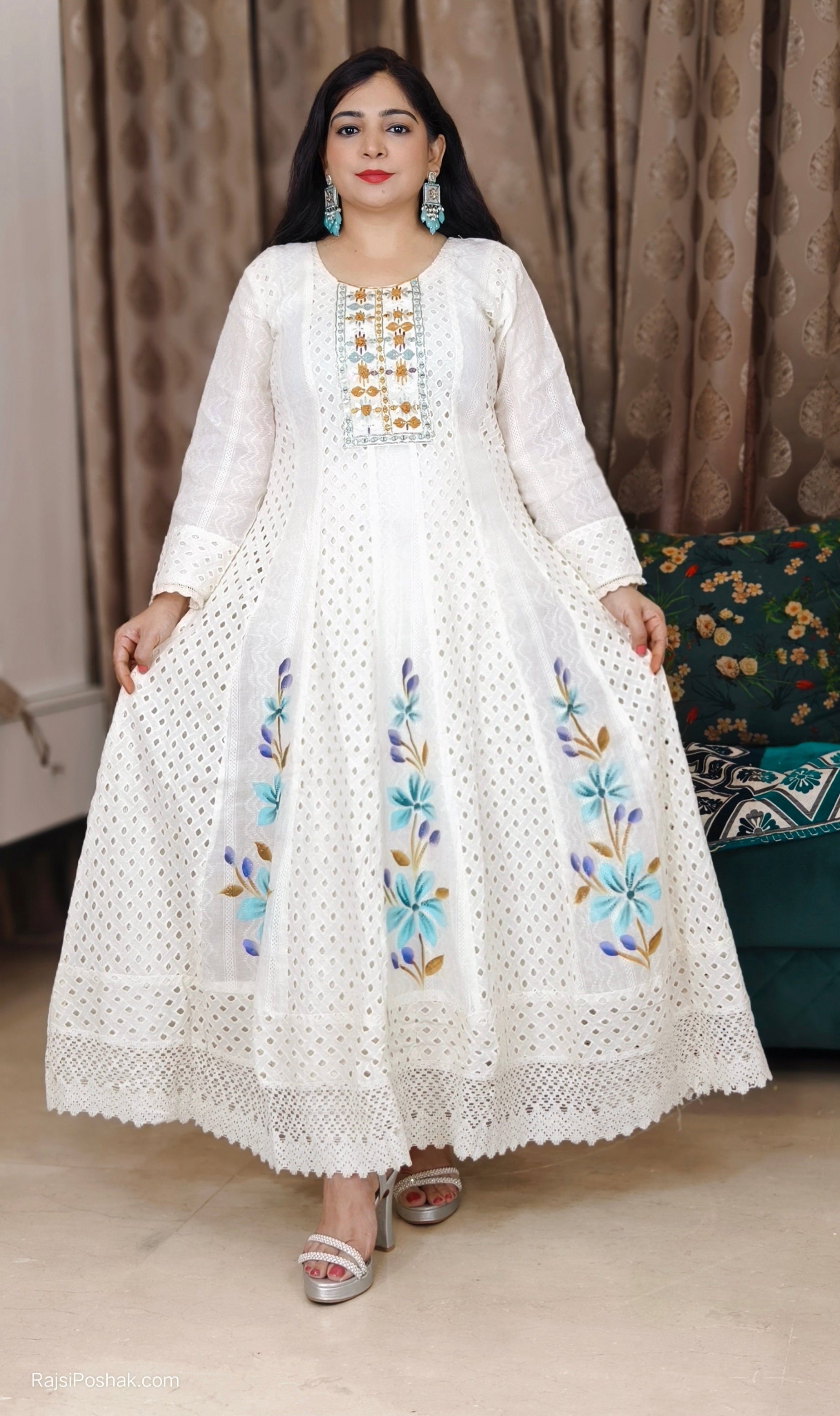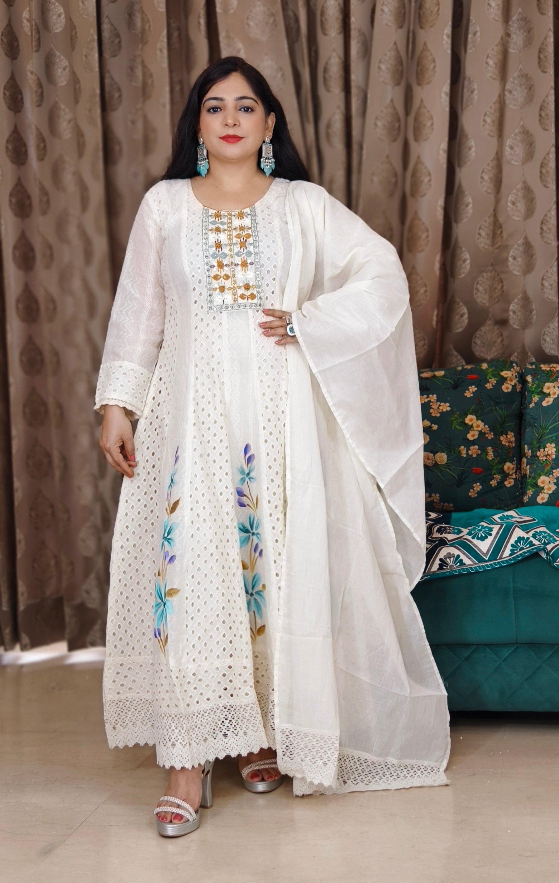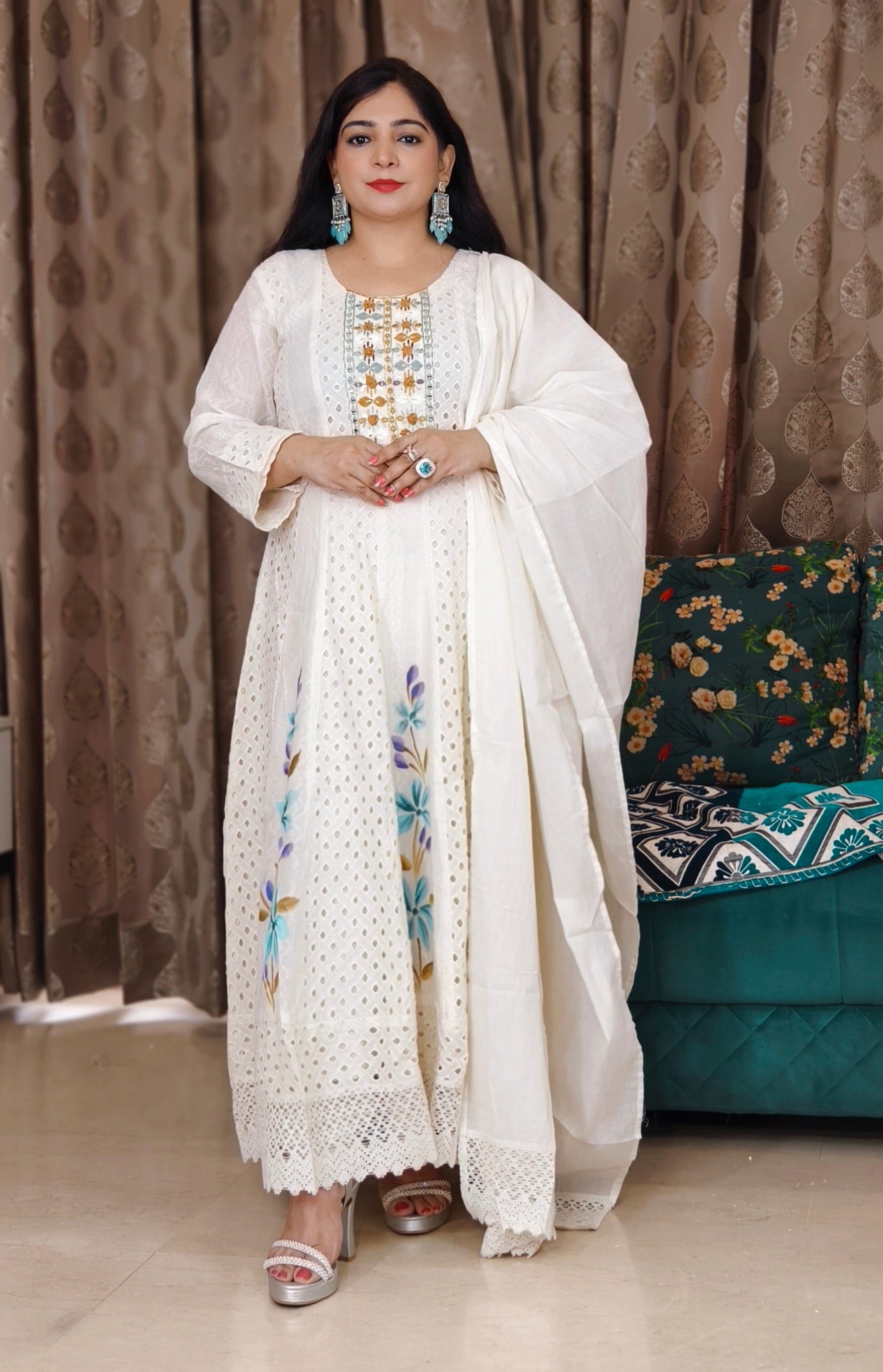 IVORY SHIFALI COTTON ANARKALI WITH COTTON DUPATTA
