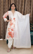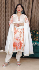 A IVORY SHIFALI COTTON ANARKALI WITH COTTON DUPATTA is a perfect blend of elegance and comfort. The outfit features a soft, breathable cotton fabric, offering all-day comfort while maintaining a refined look. The adds a modern twist to the traditional Anarkali silhouette, enhancing its flow and movement. The delicate around the edges provide a feminine, intricate touch, elevating the overall design. Paired with matching afghani pants, this ensemble combines traditional elements with contemporary style, making it ideal for casual outings, festive events, or semi-formal occasions.