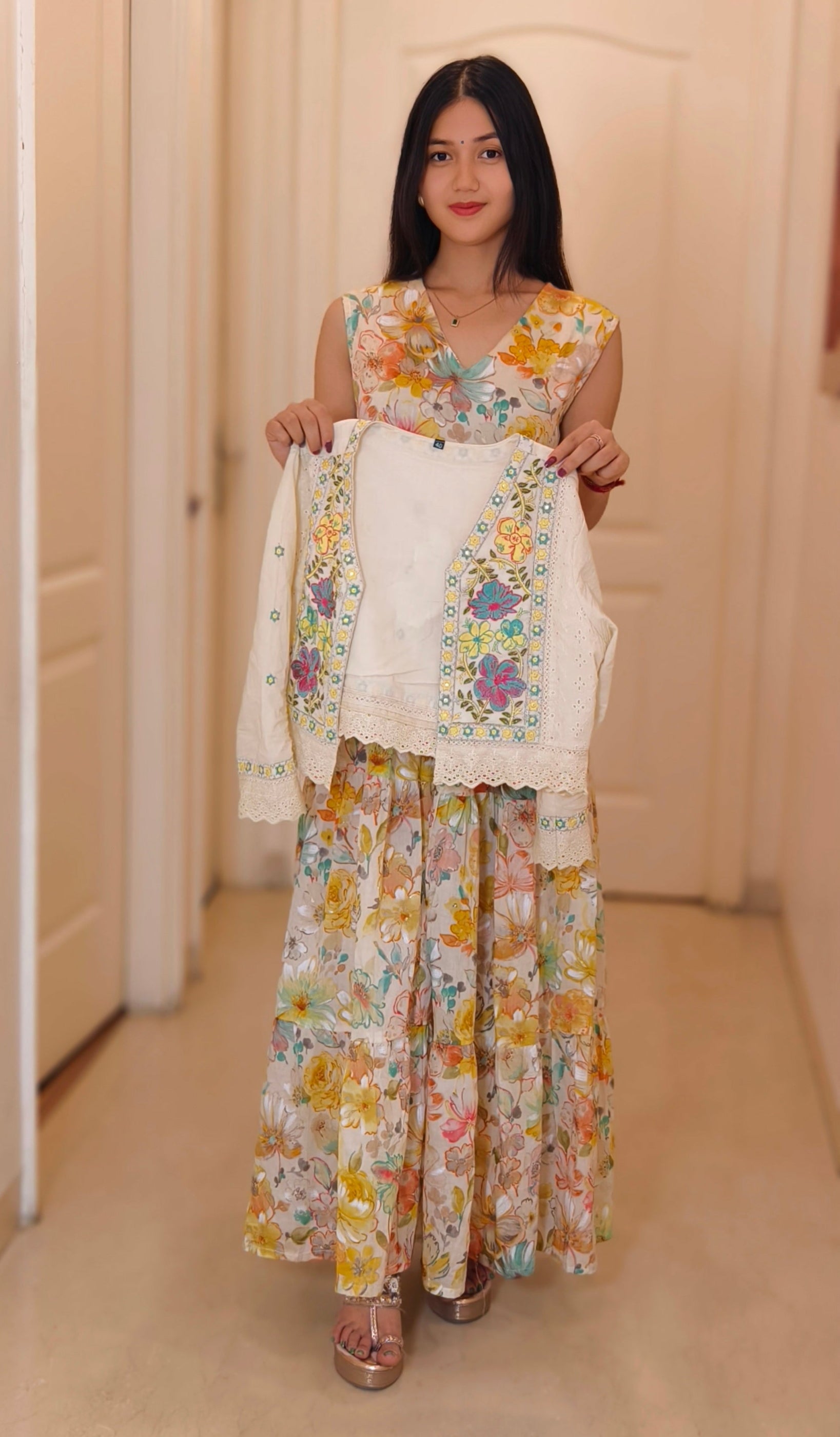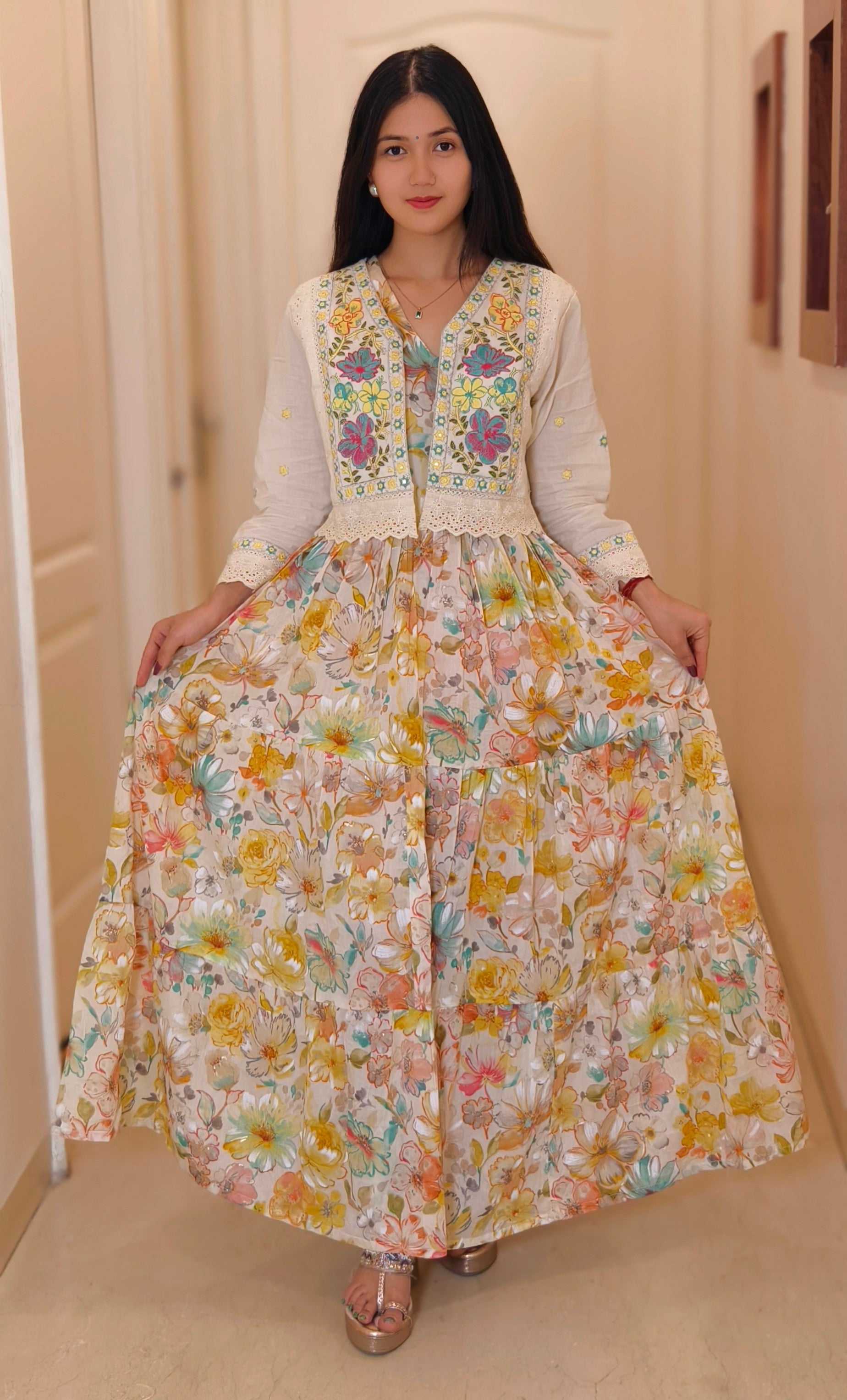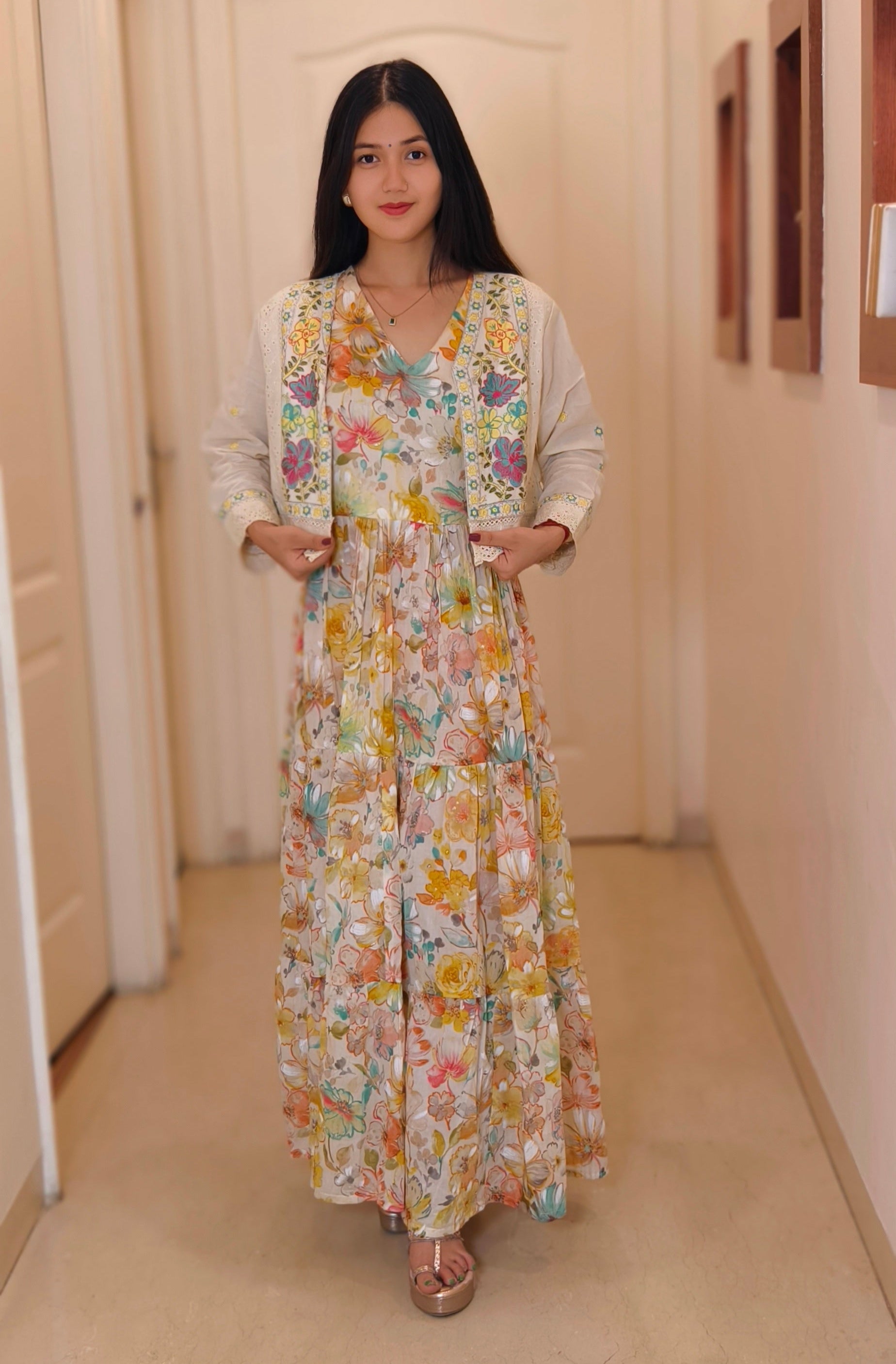 IVORY WHITE CREPE ANARKALI WITH DUPATTA AND JACKET for women, featuring elegant and timeless designs inspired by premium mughal collection . Each piece is crafted with the finest materials and attention to detail, ensuring both style and comfort. From delicate patterns to rich, vibrant colors, this collection offers a range of options suitable for any occasion.