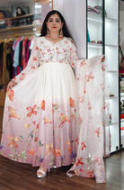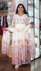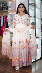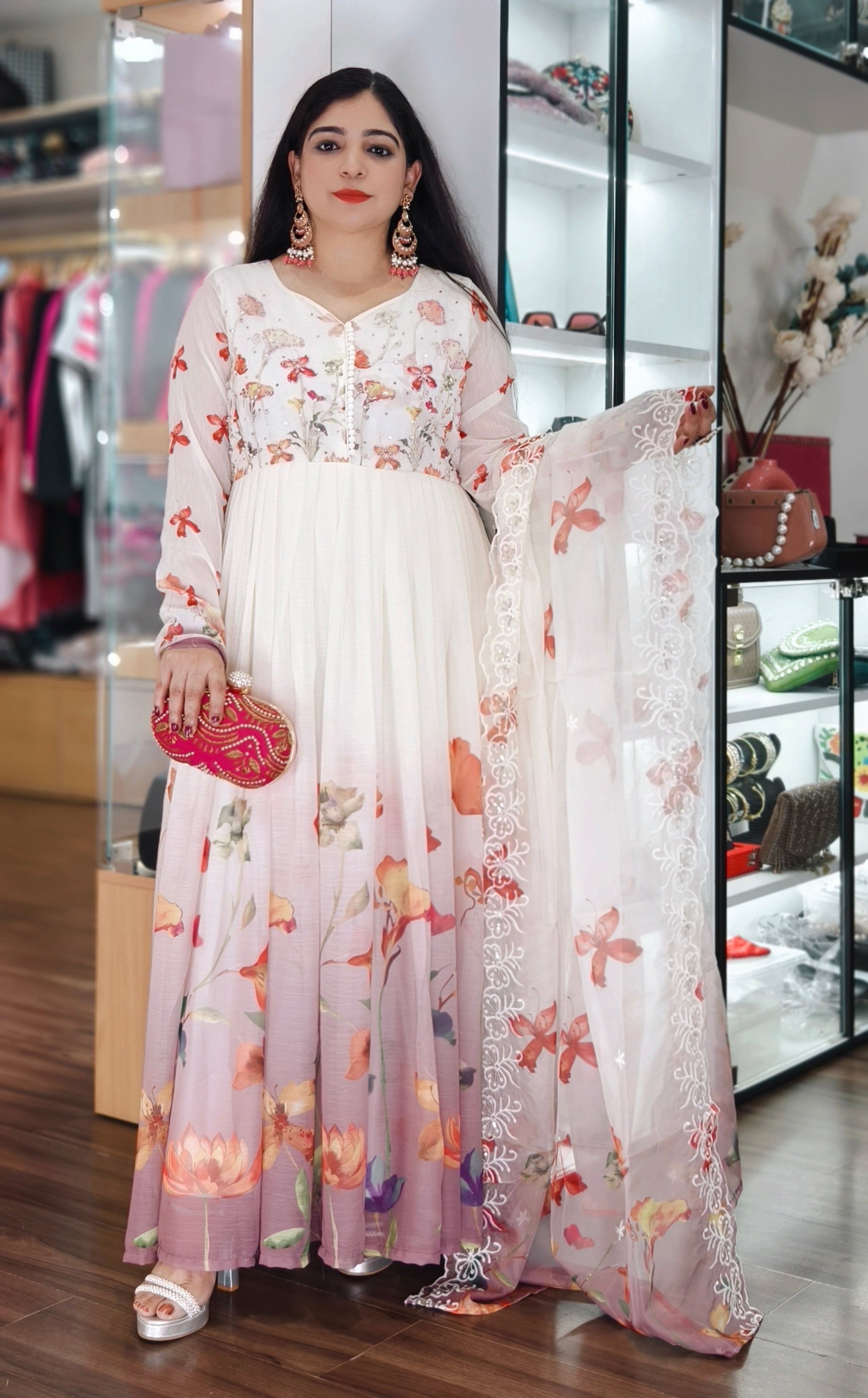 OFF WHITE/PINK MIX CHIFFON ANARKALI WITH DUPATTA