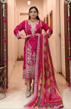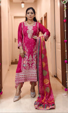 PNK ELEGANT PARTYWEAR CRAFTED FROM PURE FABRIC, PAIRED WITH TULIP PANTS FOR A CHIC AND STYLISH LOOK.