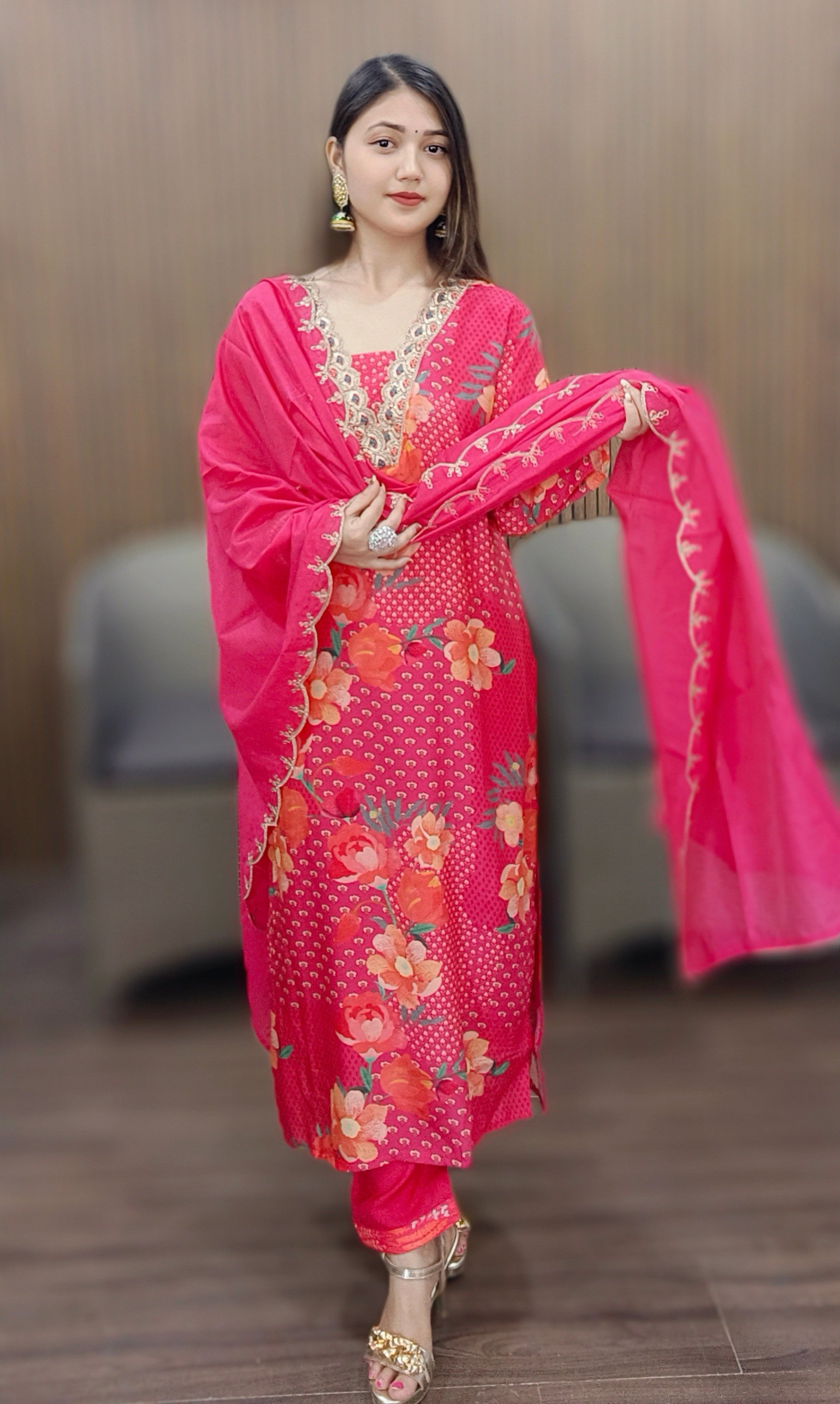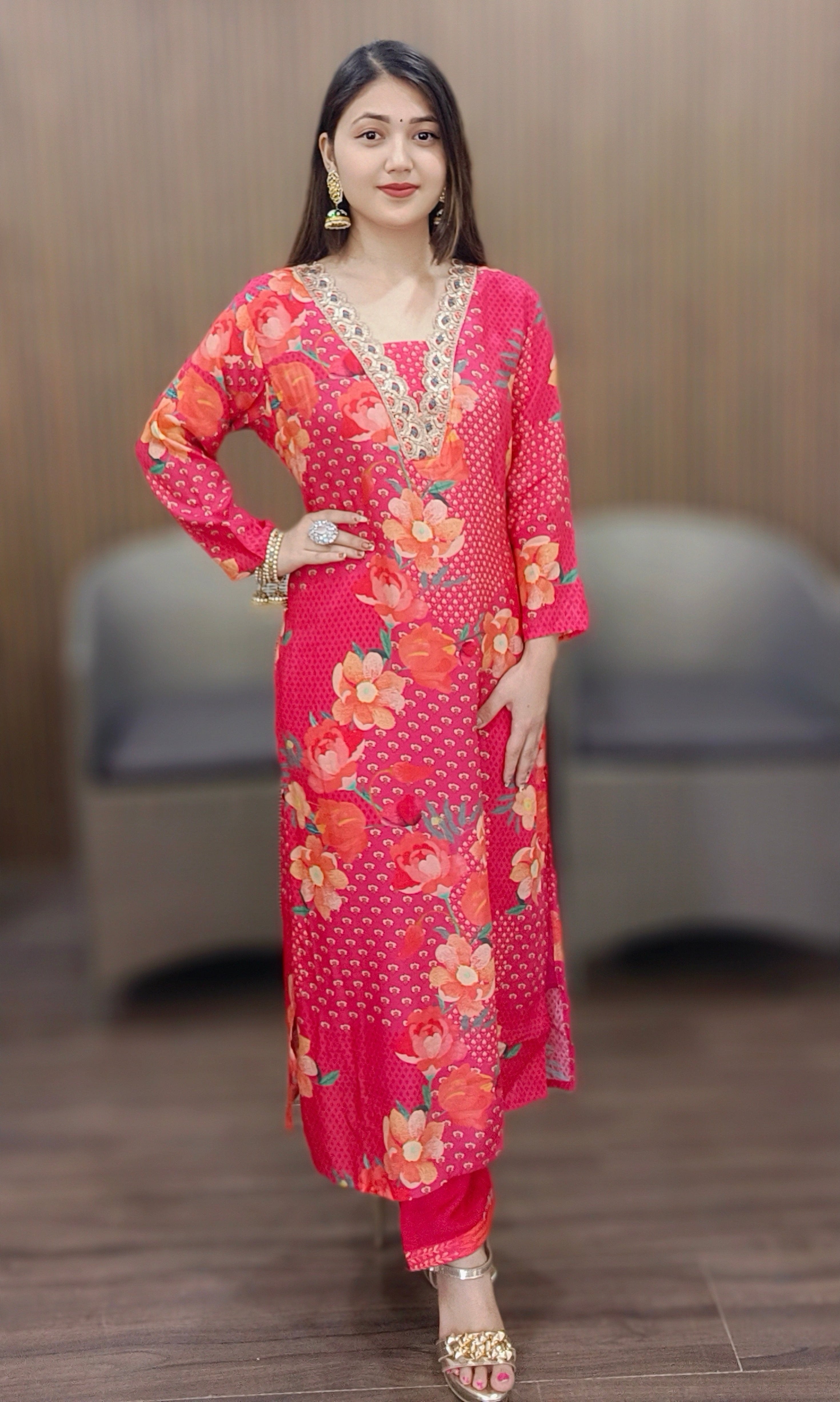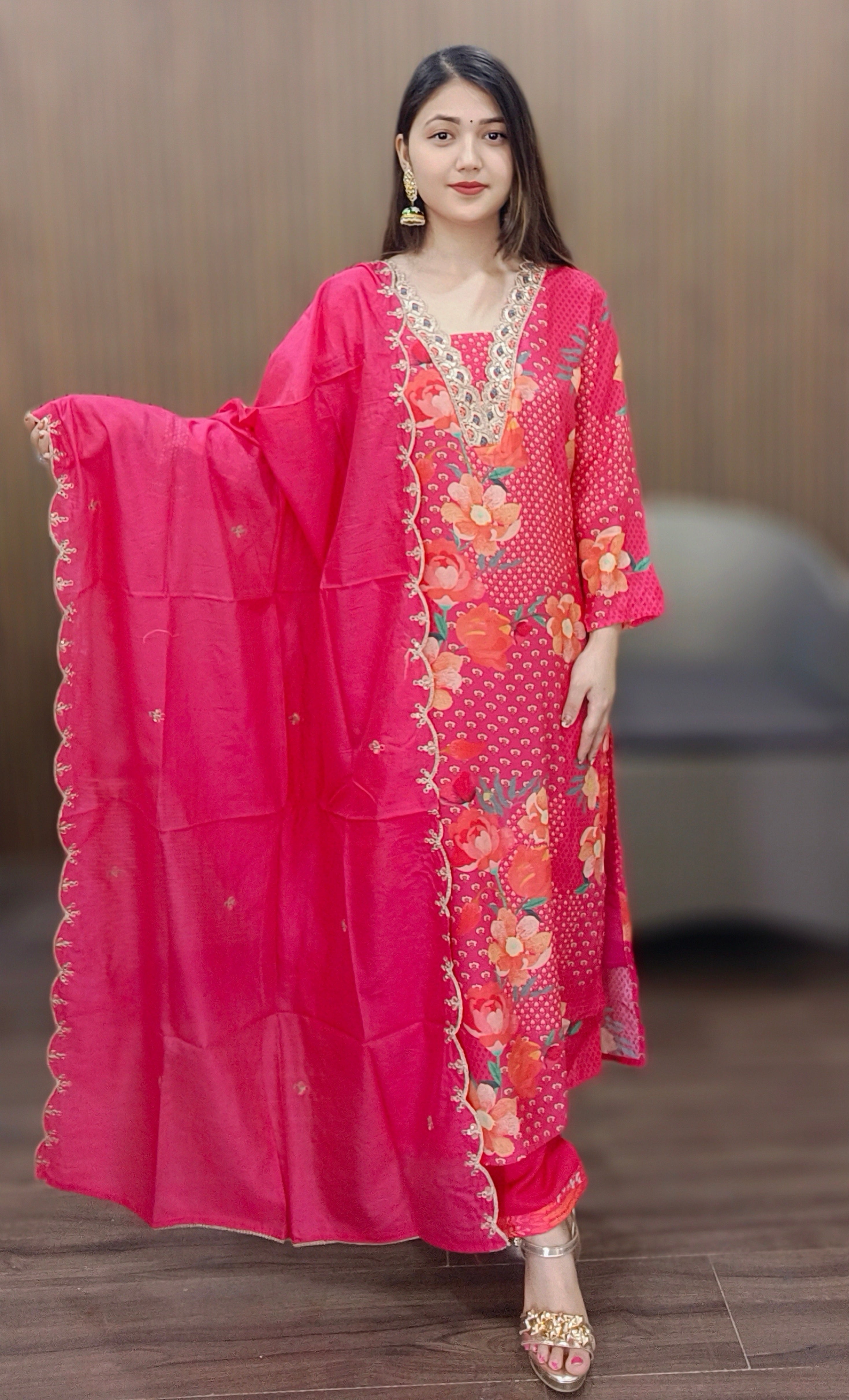Introducing our exquisite RAJSI POSHAK Collection for women, featuring elegant and timeless designs inspired by the beauty of roses. Each piece is crafted with the finest materials and attention to detail, ensuring both style and comfort. From delicate floral patterns to rich, vibrant colors, this collection offers a range of options suitable for any occasion. Elevate your wardrobe with the timeless charm of our RAJSI POSHAK Collection.