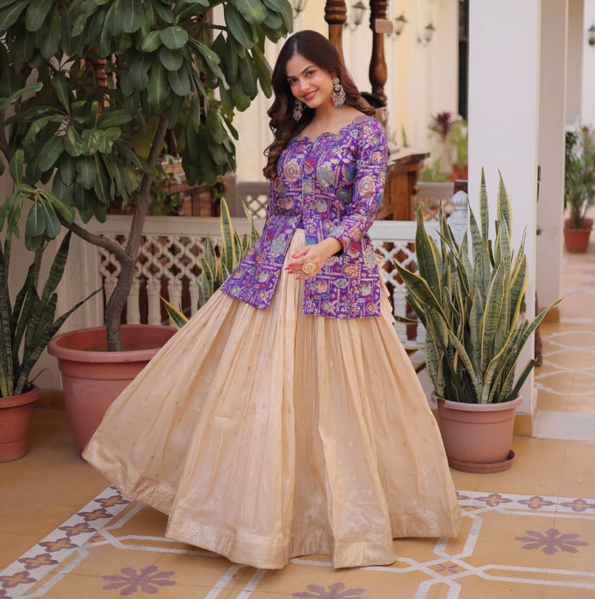 PURPLE AND PINK PREMIUM FABRIC BLOUSE WITH FLARED SKIRT