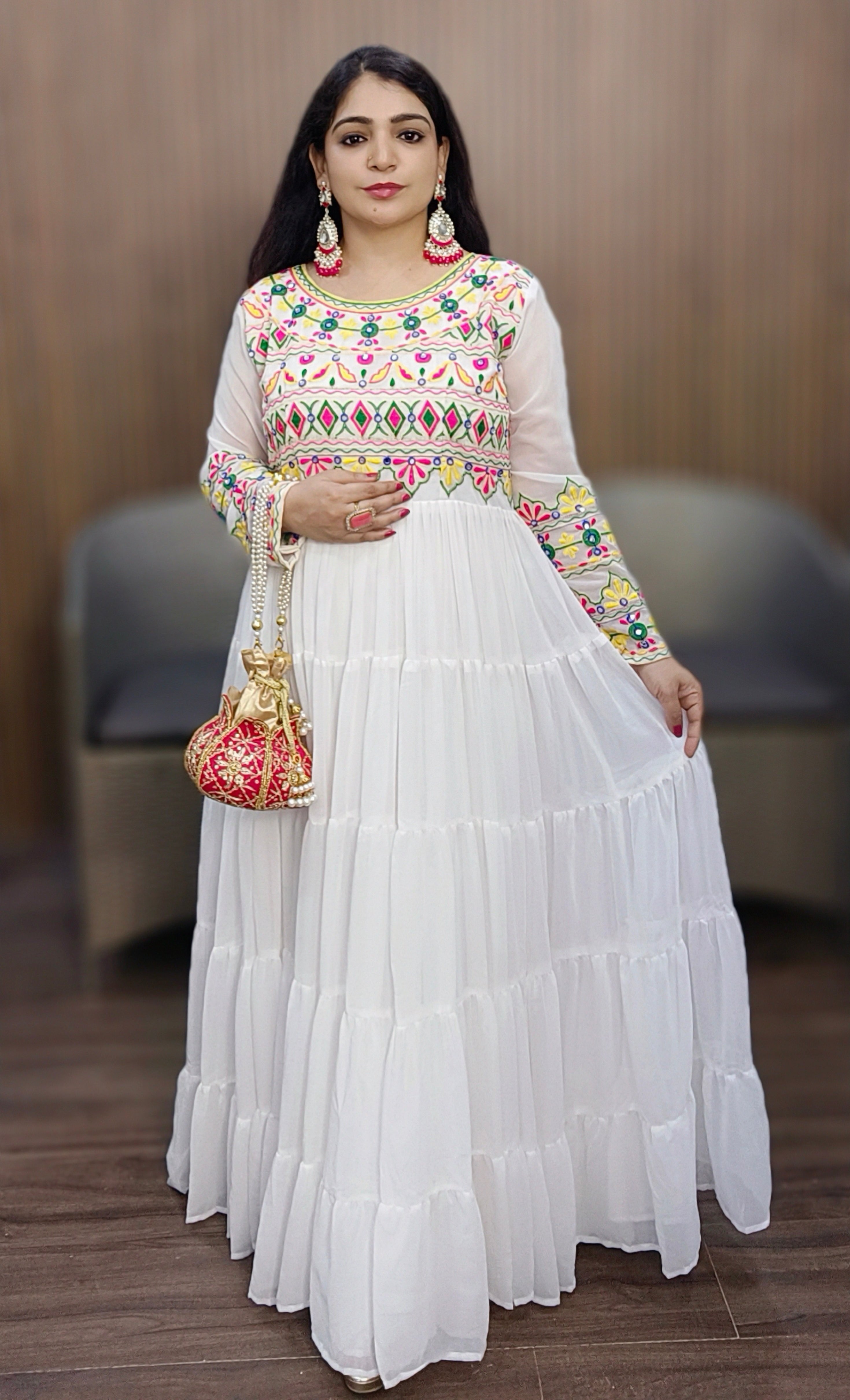 WHITE AND BLACK GEORGETTE FLAIRED GOWN