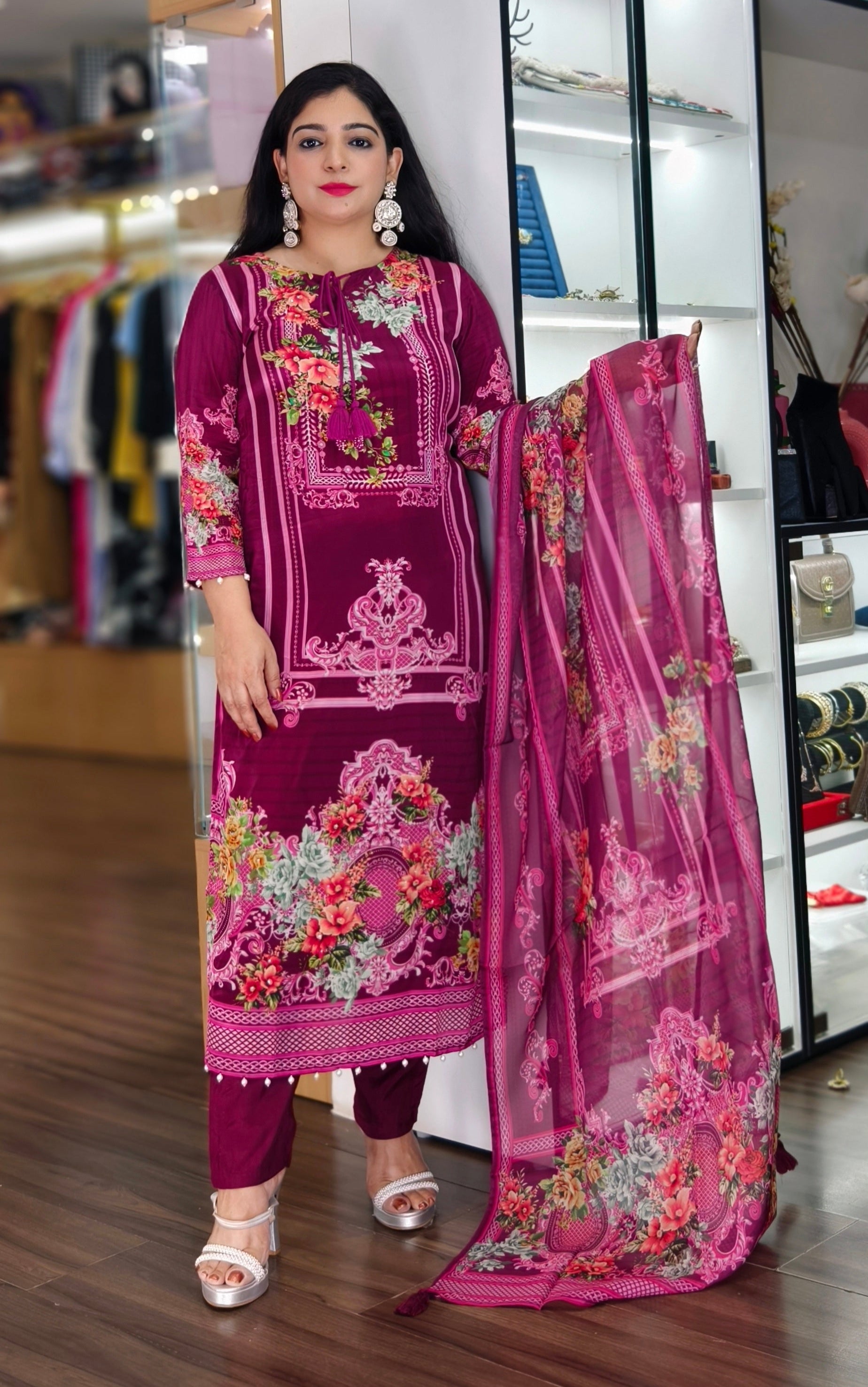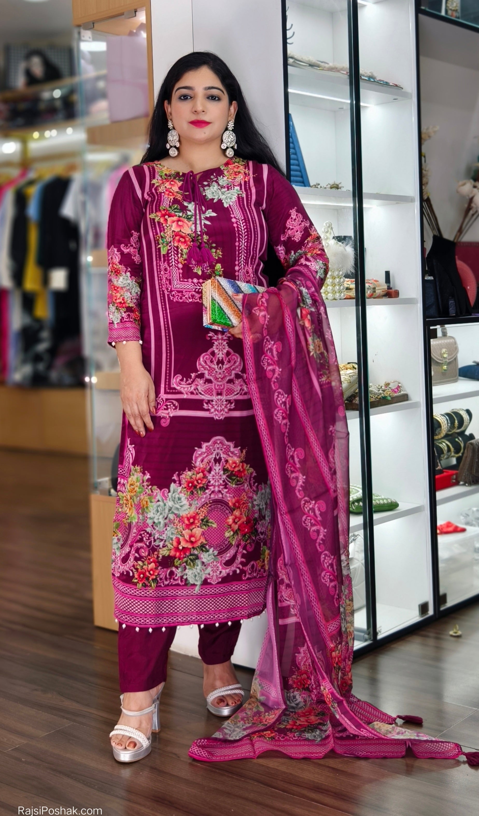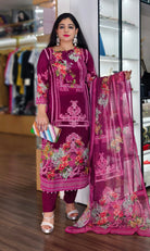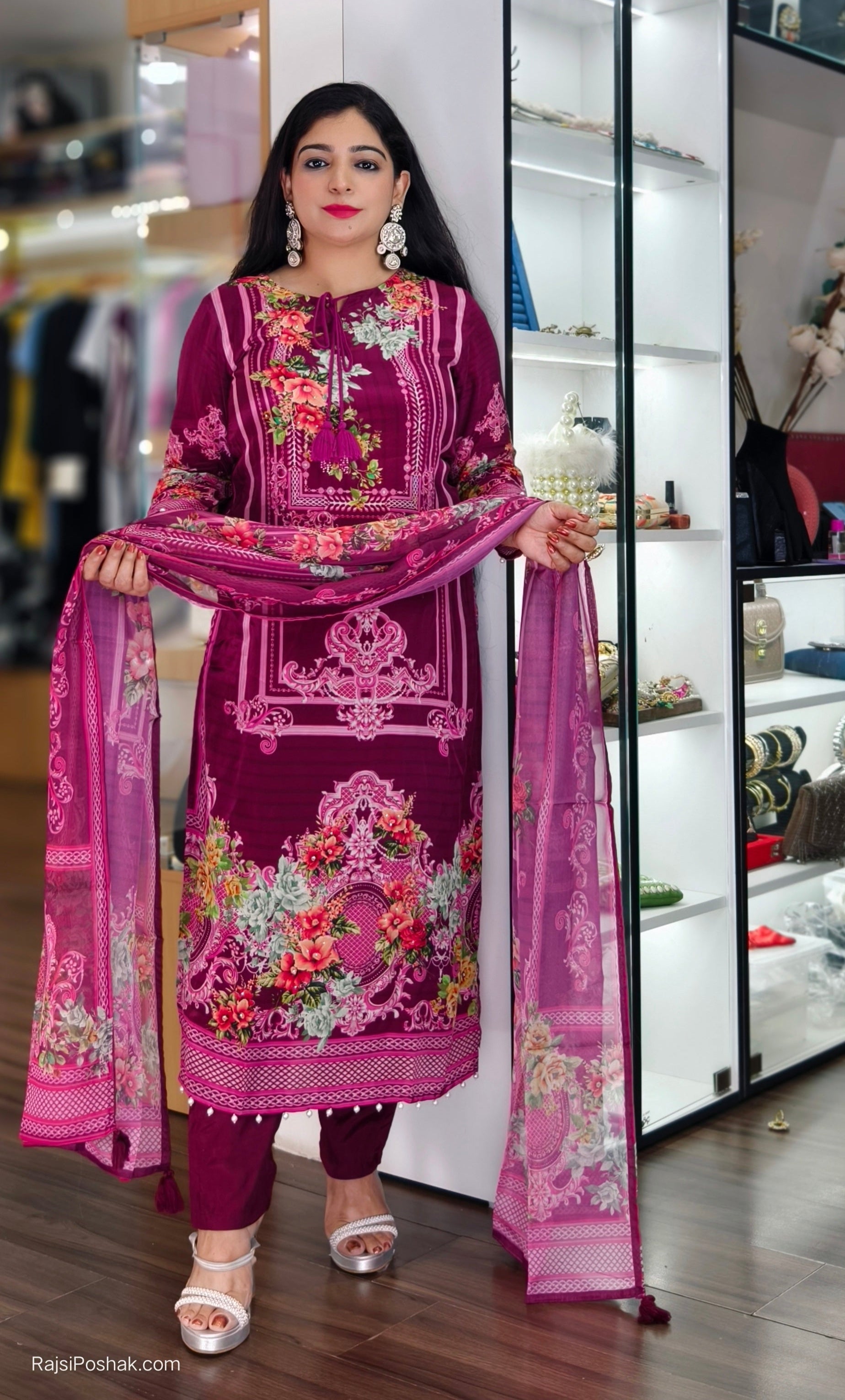 This elegant ensemble features a Pure Viscose Maslin Top, designed with intricate all-over handwork that adds a touch of sophistication. The top is adorned with exquisite delicate lace detailing, enhancing its visual appeal. It is paired with a Premium Shantoon Bottom, offering both comfort and style. Perfect for special occasions, this outfit exudes timeless charm and elegance.