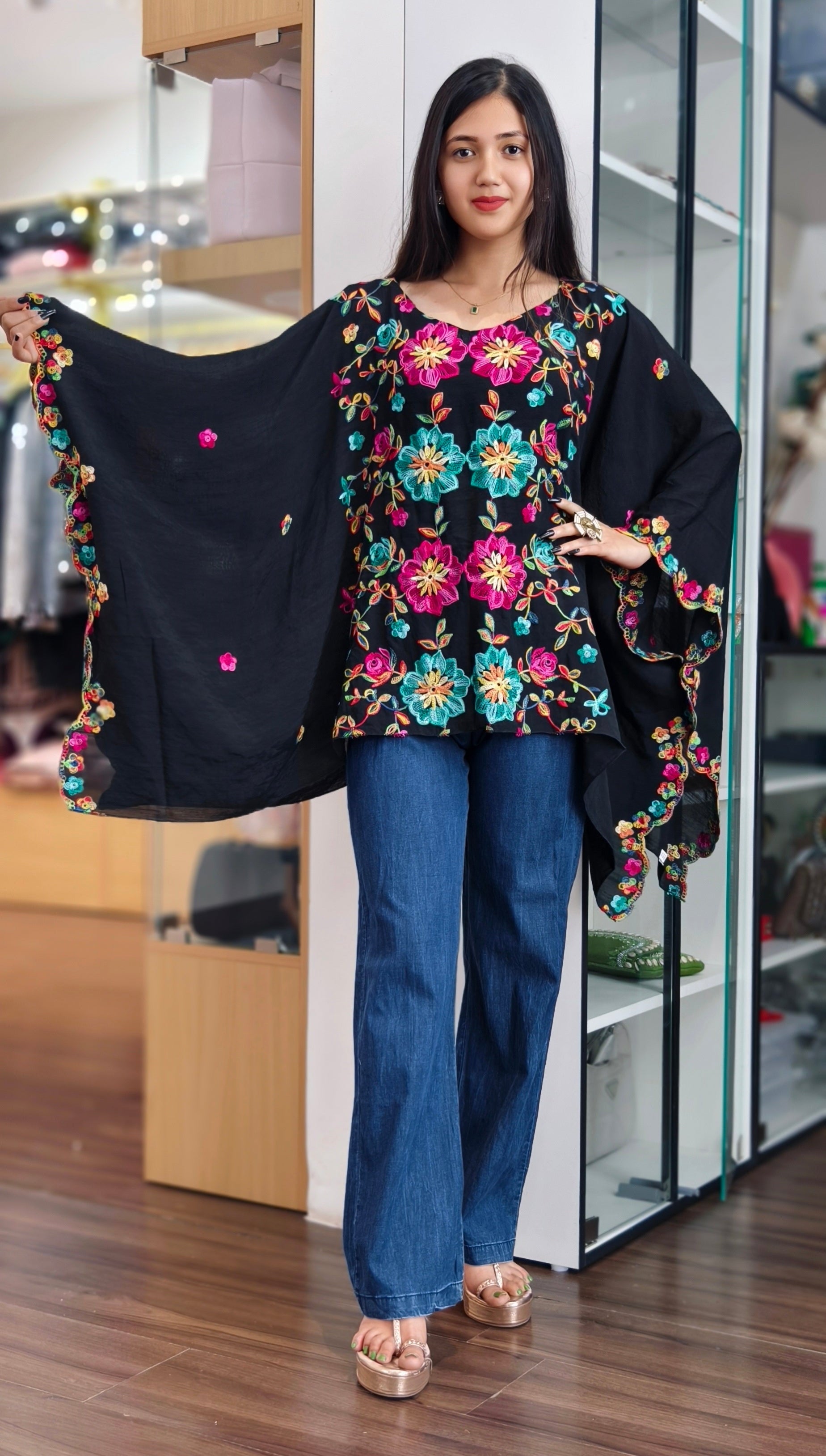TRENDY BLACK COTTON PARTY WEAR KAFTAN