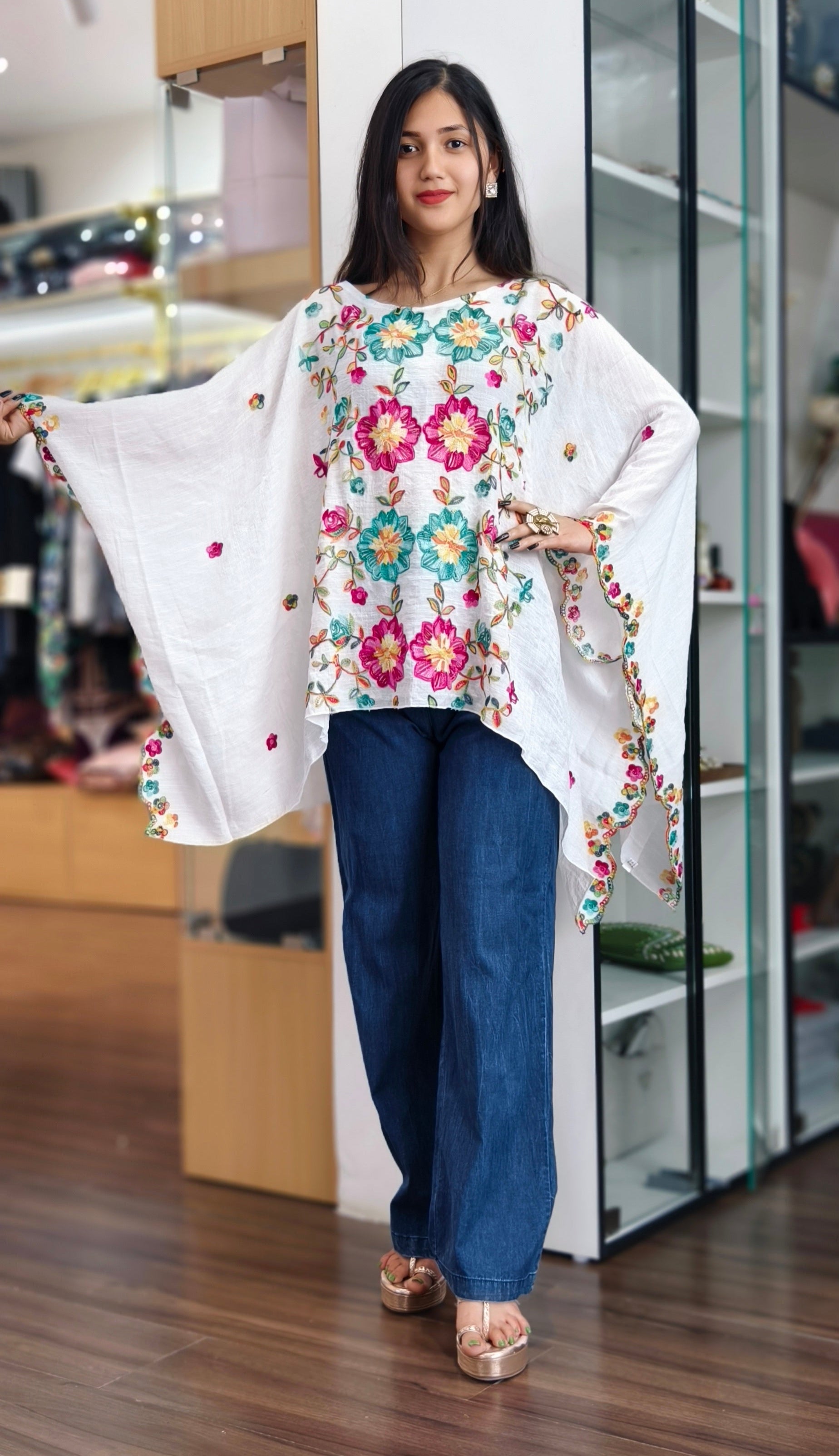 TRENDY WHITE COTTON PARTY WEAR KAFTAN