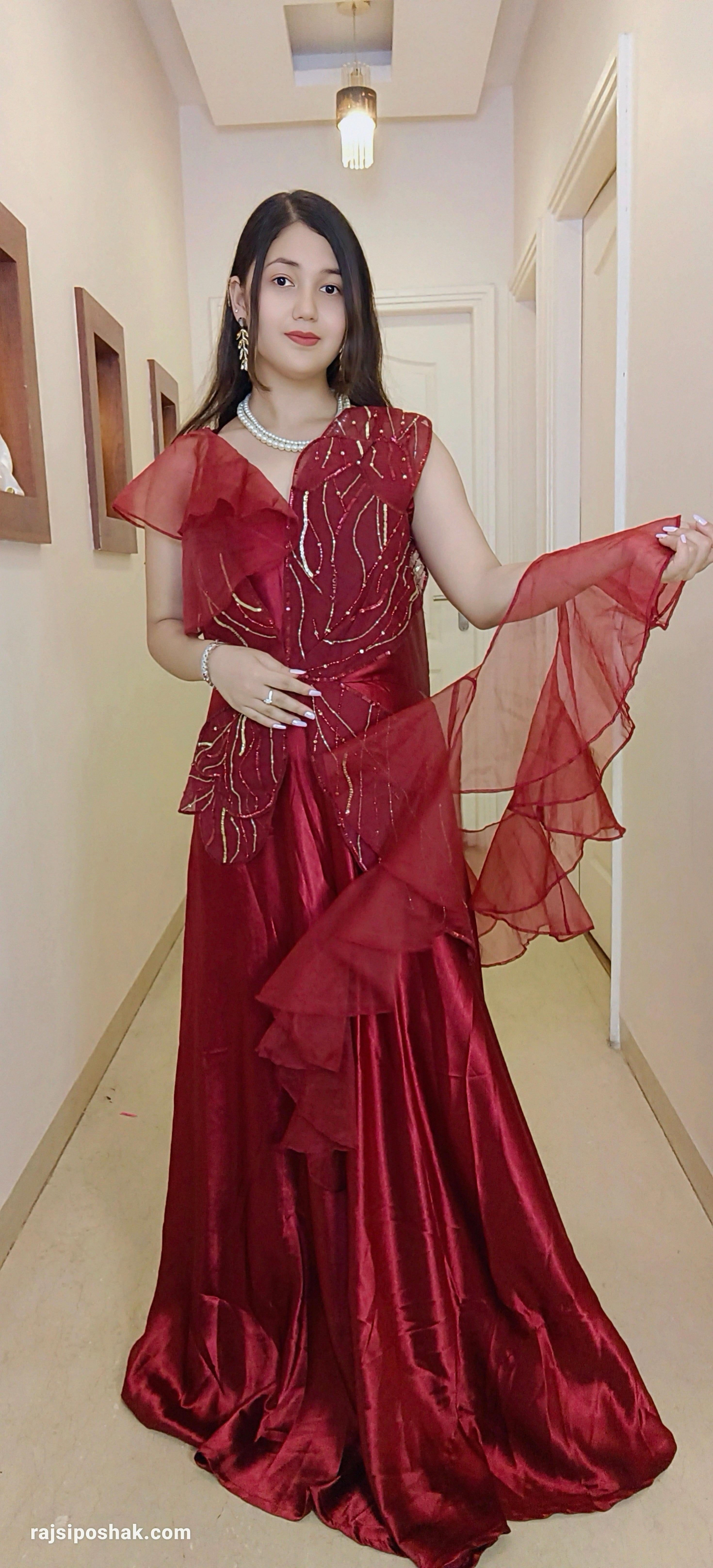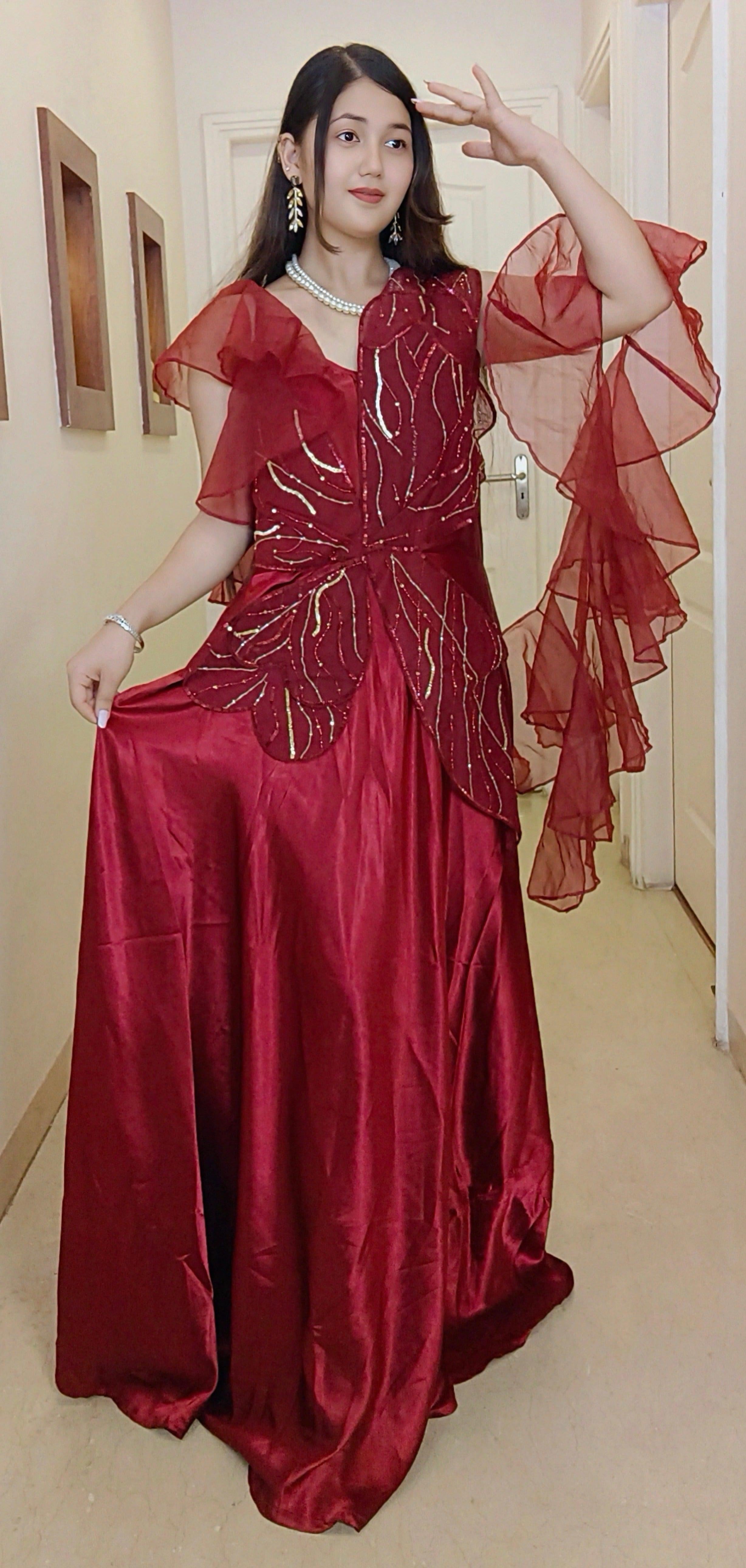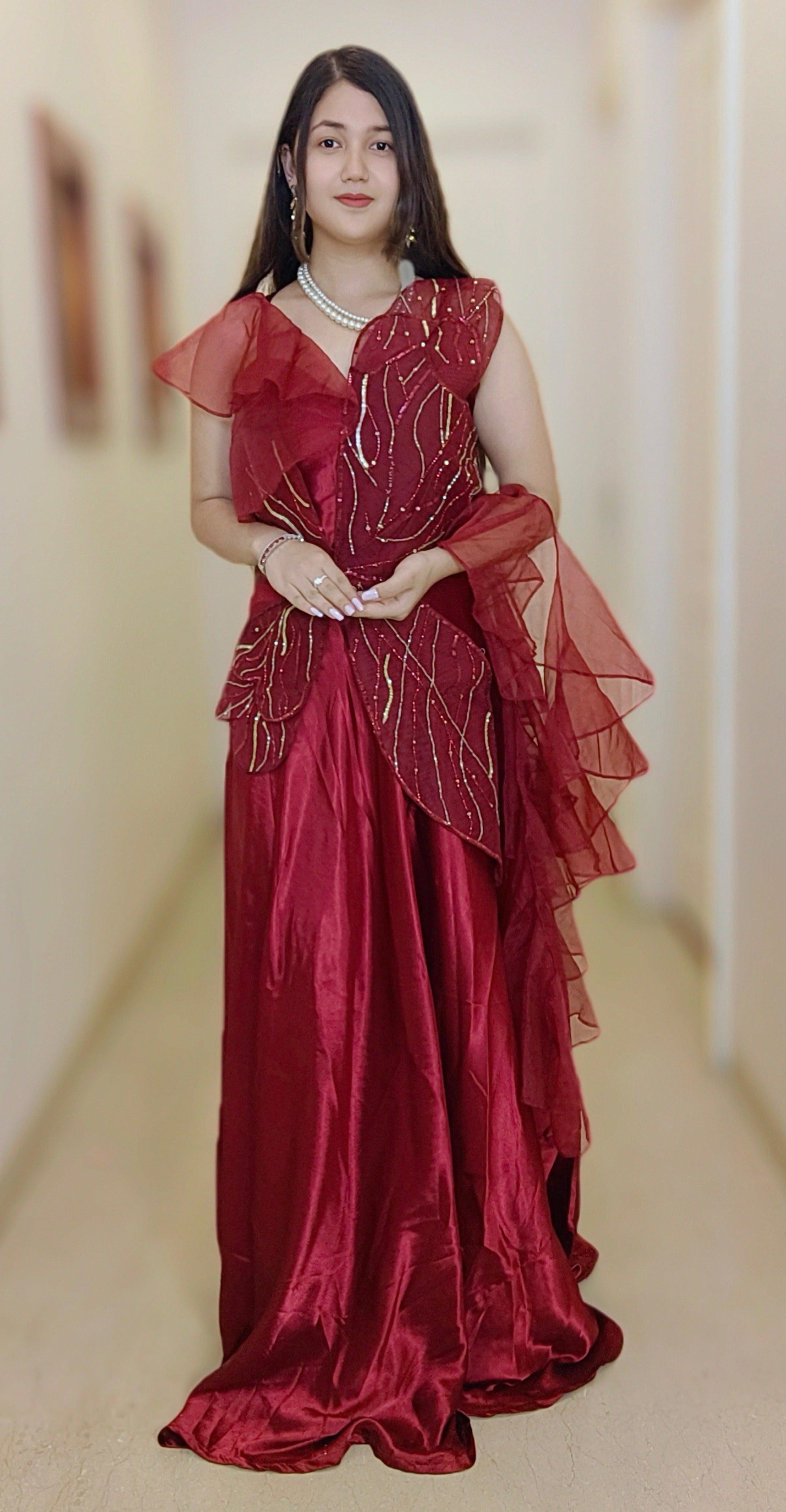 MAROON CREP DESIGNER GOWN
