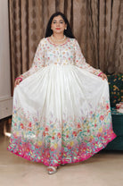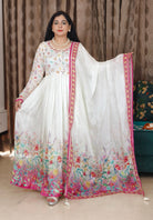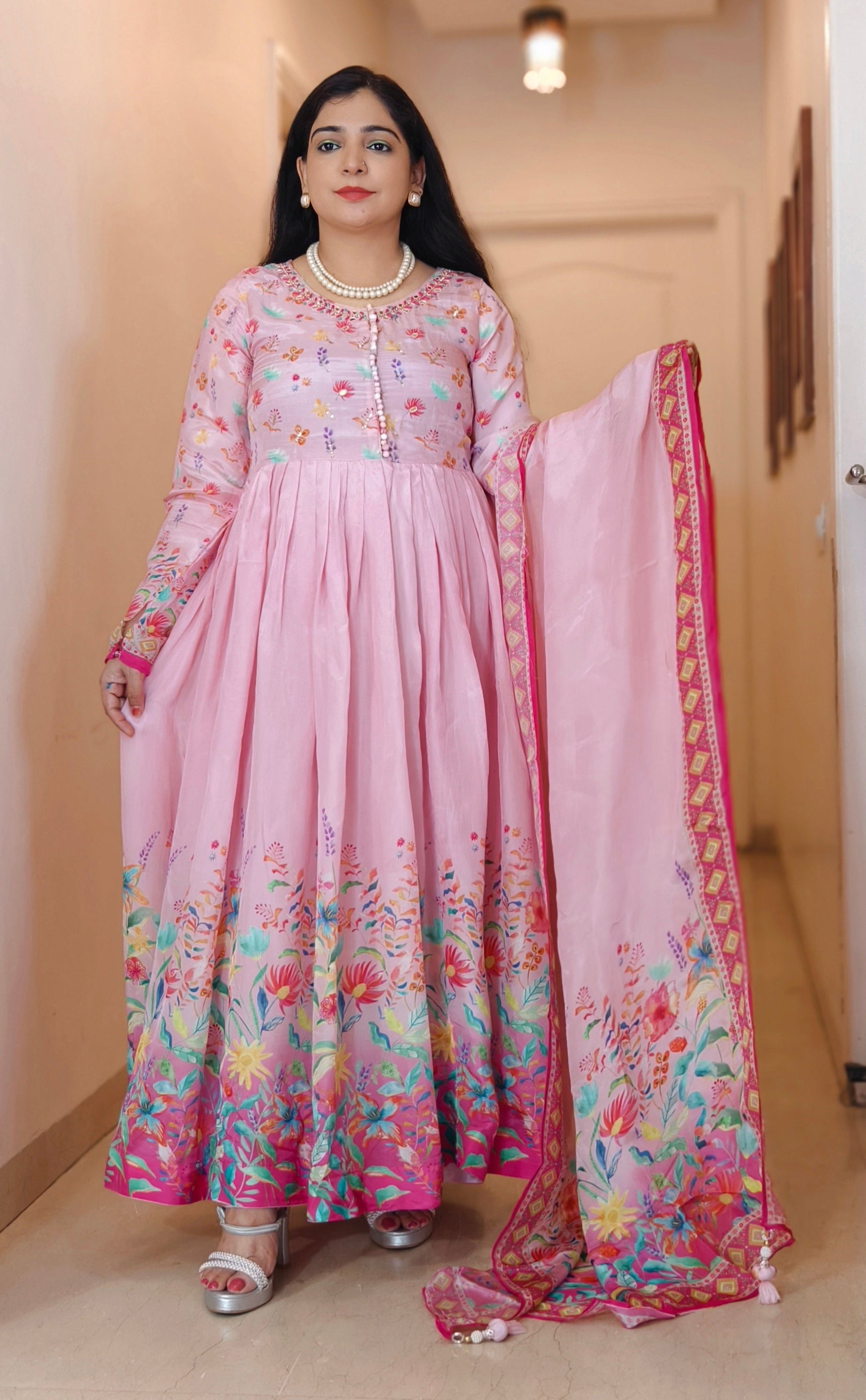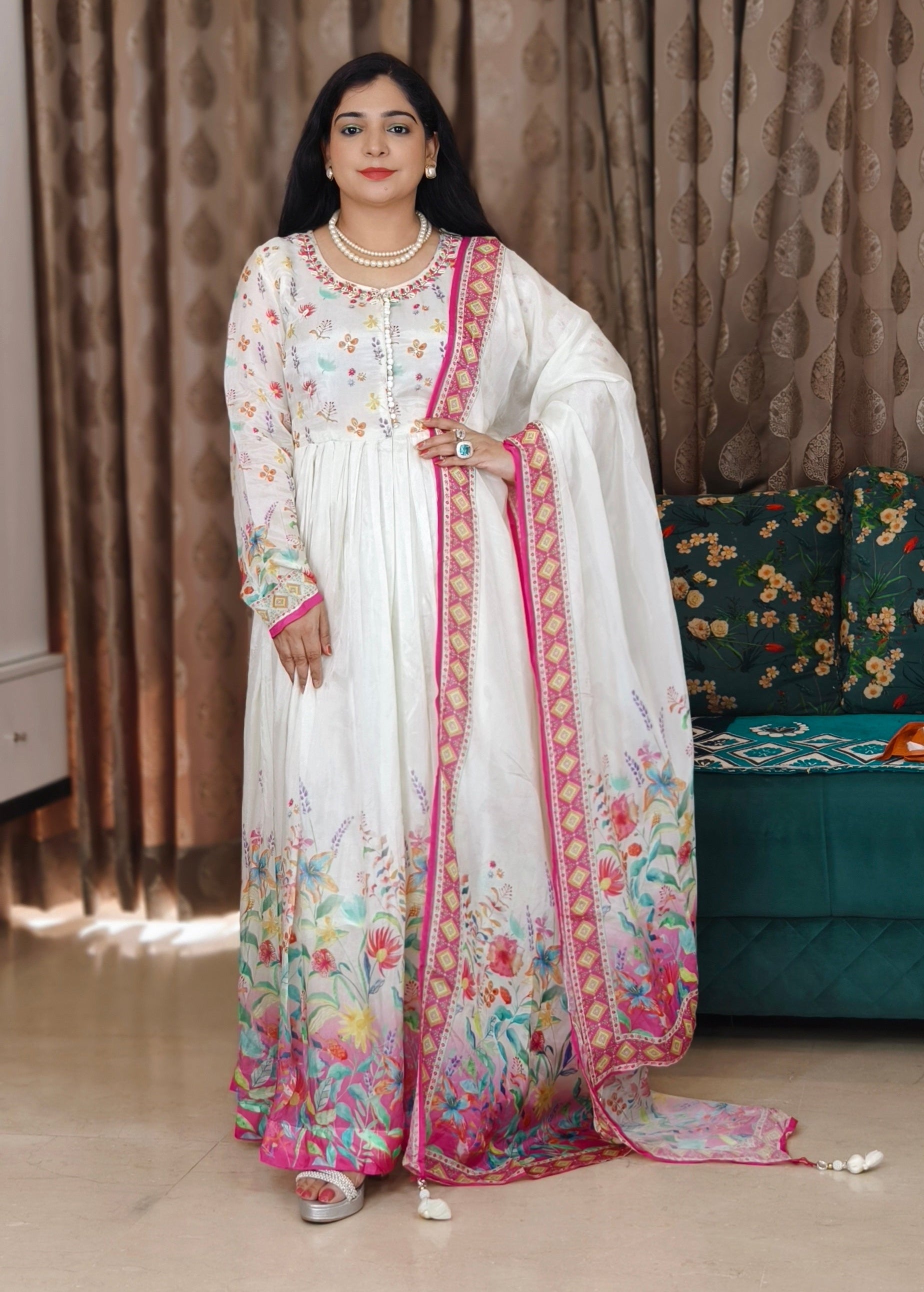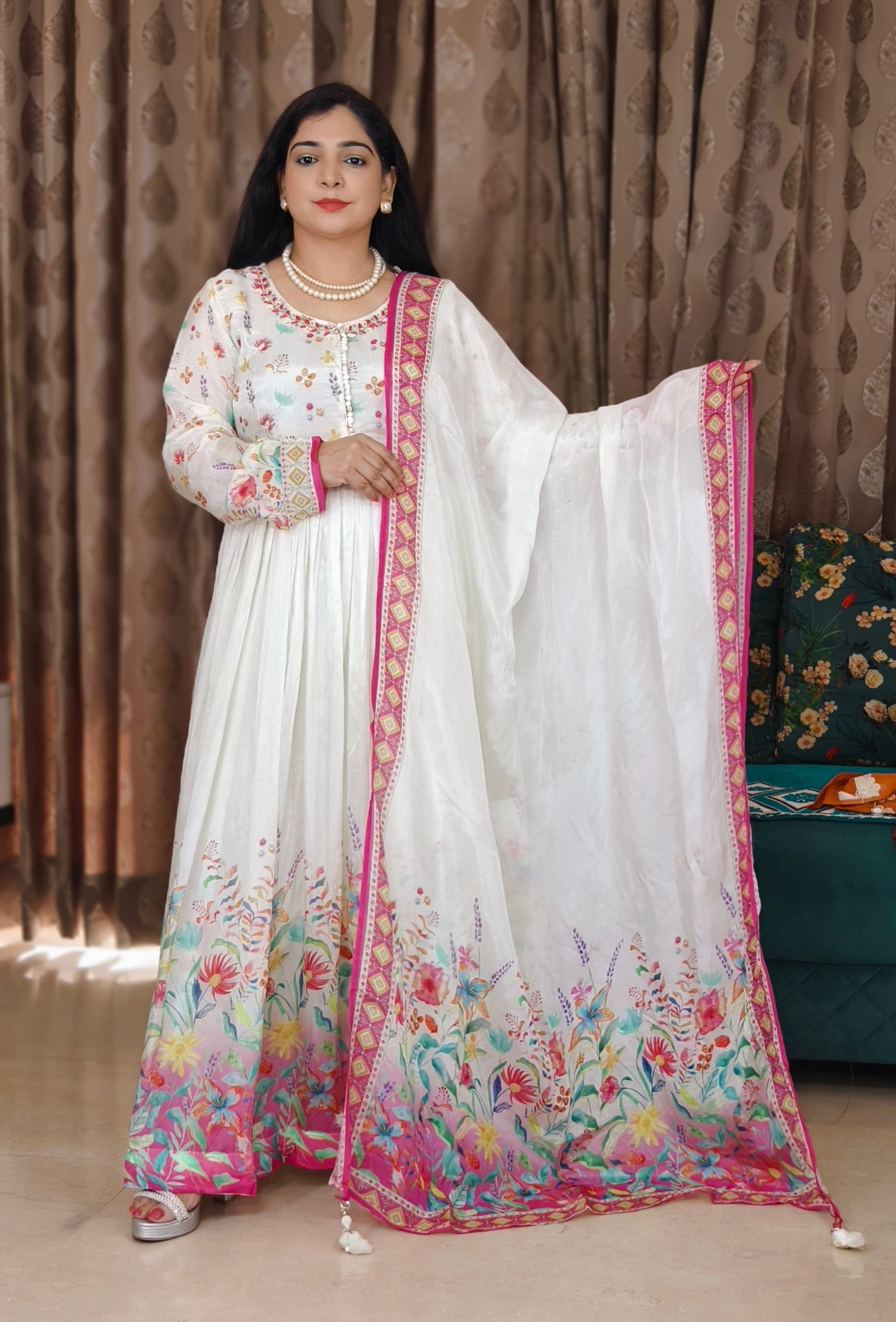 WHITE AND PINK MIX CREPE ANARKALI WITH DUPATTA