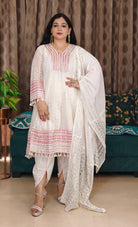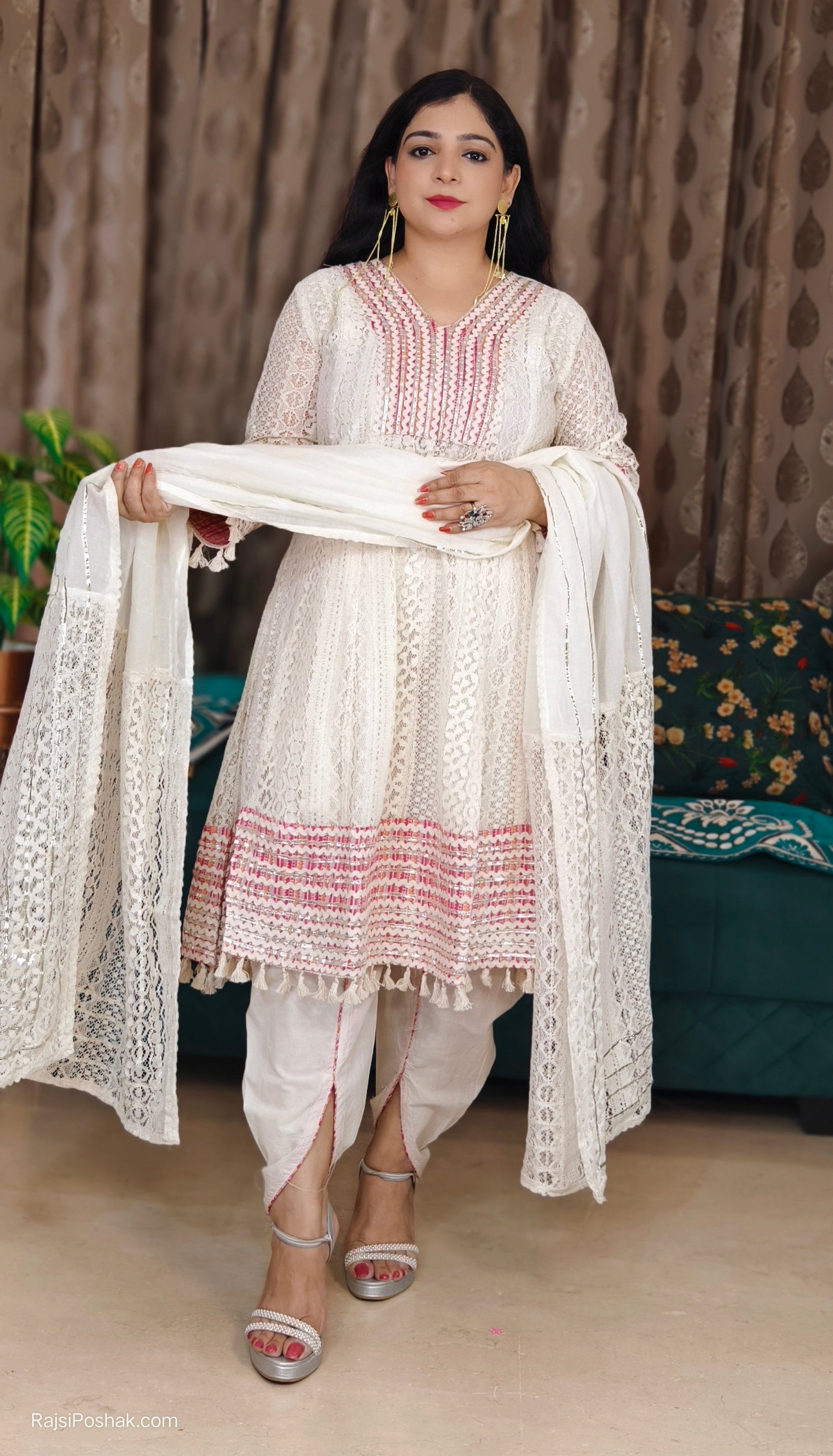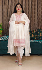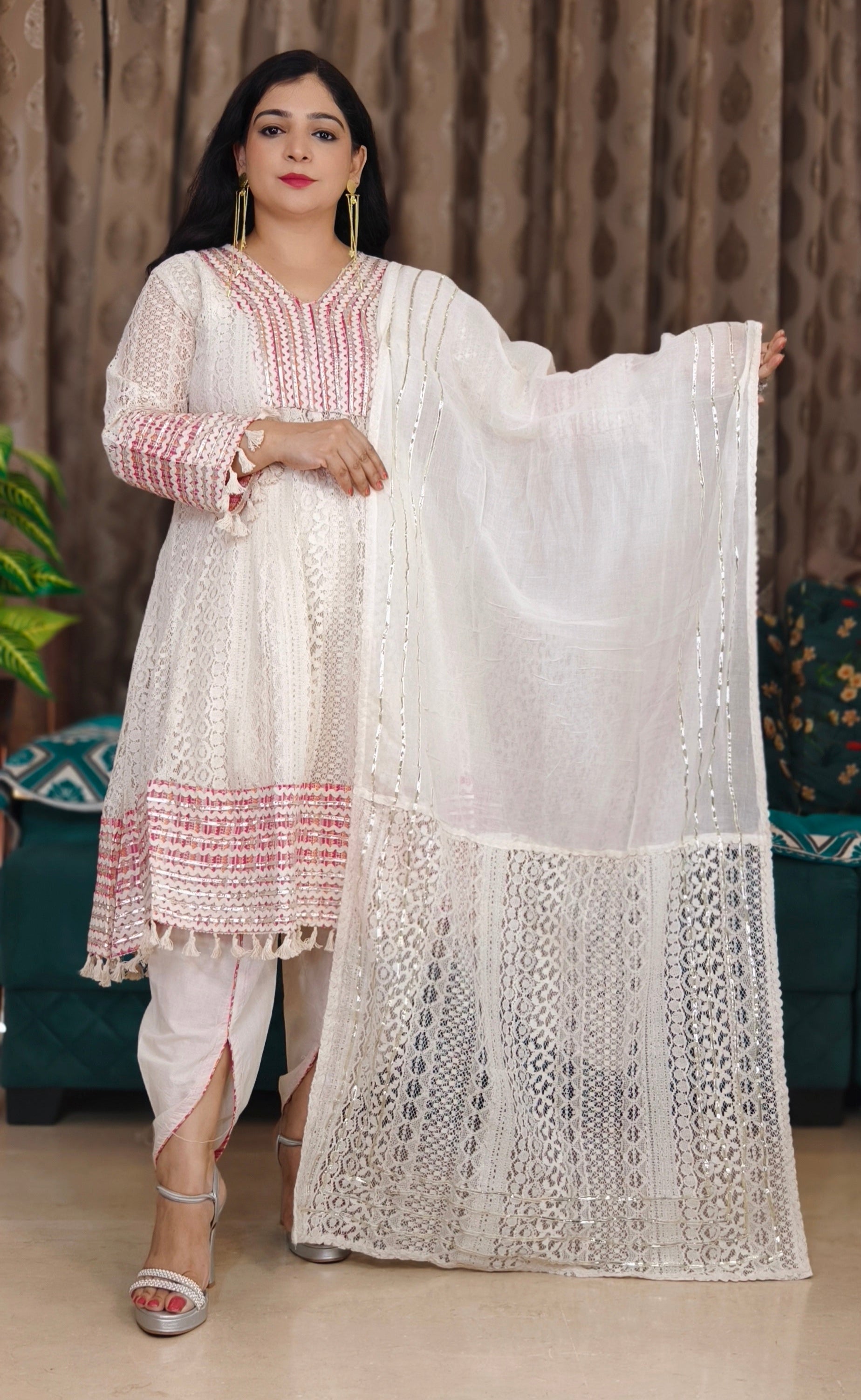 WHITE PREMIUM COTTON EMBRORAIRED SUIT WITH COTTON SARARA & FULL DUPATTA