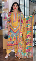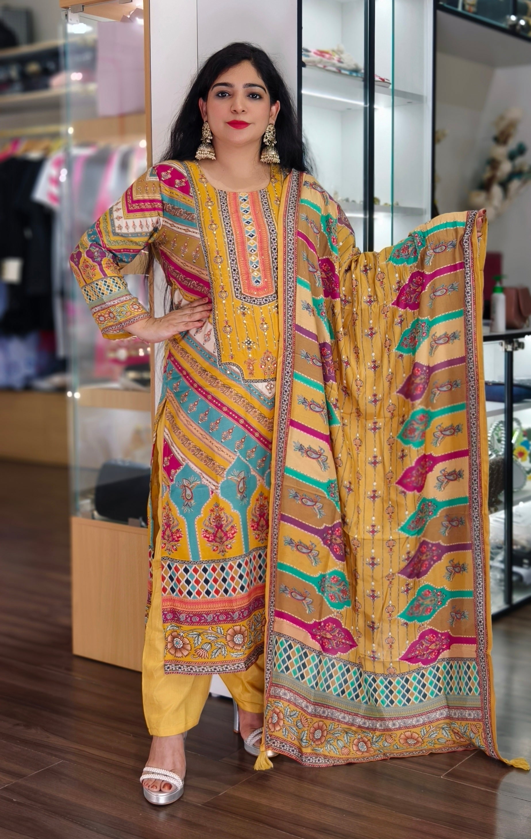 This elegant ensemble features a Pure Viscose Maslin Top, designed with intricate all-over handwork that adds a touch of sophistication. The top is adorned with exquisite delicate lace detailing, enhancing its visual appeal. It is paired with a Premium Shantoon Bottom, offering both comfort and style. Perfect for special occasions, this outfit exudes timeless charm and elegance.