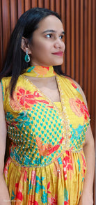 Step into a world of traditional charm and contemporary allure with our exquisite Styled Flared Anarkali with Dupatta. Crafted from the finest chinon fabric, this ensemble exudes a sense of ethereal grace that will leave you feeling like royalty.