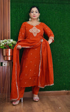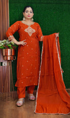 RUST RUSSIAN SILK SUIT WITH PANT AND DUPATTA