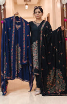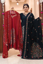 BLACK,MAROON,YELLOW AND PURPLE PASHMINA WINTER DESIGNER SUIT WITH DUPATTA