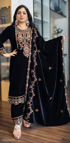 ELEGANT BLACK VELVET PARTYWEAR SUIT WITH EXQUISITE EMBROIDERY