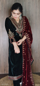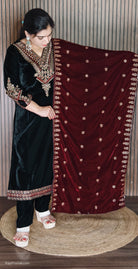 Elegant Velvet Salwar Suit, a stunning piece that exudes sophistication and charm. Crafted from luxurious velvet, this ensemble features intricate embroidery details that add a touch of artistry and elegance. The rich Blue & Maroon hue complements the beautiful designs, making it perfect for special occasions and celebrations. Paired with a matching dupatta, this salwar suit is sure to make a statement wherever you go. Experience comfort and style in one exquisite outfit!