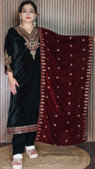 ELEGANT 2D VELVET SALWAR SUIT WITH INTRICATE EMBROIDERY DETAILS