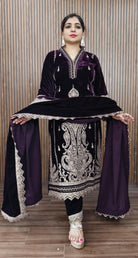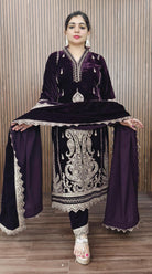ELEGANT PURPLE VELVET SALWAR SUIT WITH INTRICATE EMBROIDERY DETAILS
