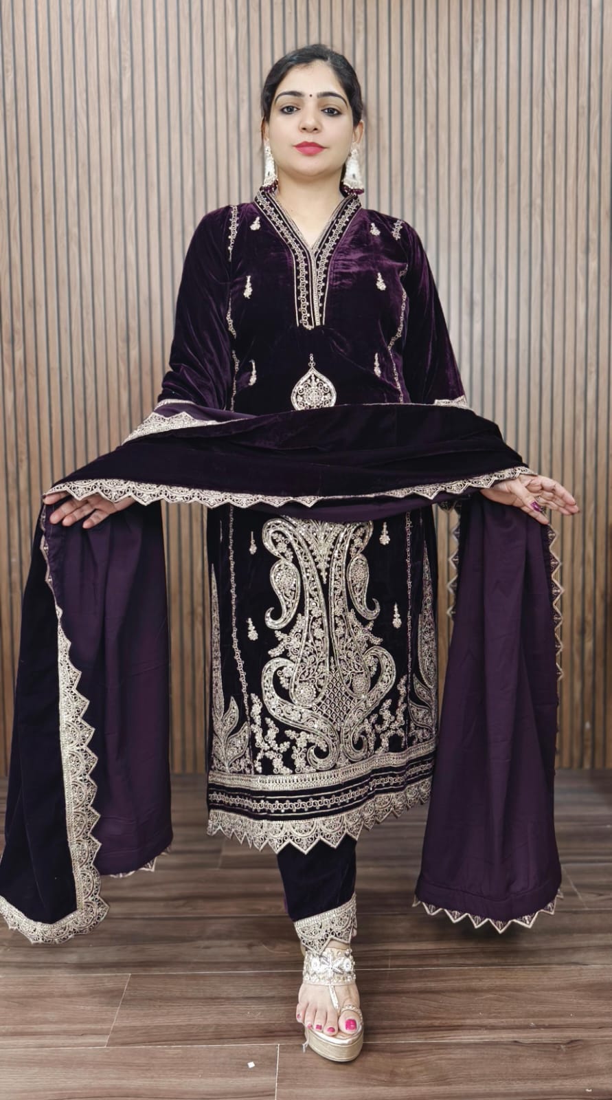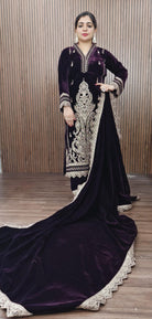 Elegant Purple Velvet Salwar Suit, a stunning piece that exudes sophistication and charm. Crafted from luxurious velvet, this ensemble features intricate embroidery details that add a touch of artistry and elegance. The rich purple hue complements the beautiful designs, making it perfect for special occasions and celebrations. Paired with a matching dupatta, this salwar suit is sure to make a statement wherever you go. Experience comfort and style in one exquisite outfit!