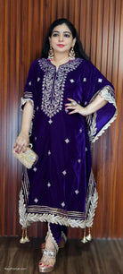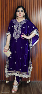 LUXURIOUS PURPLE & BLACK VELVET KAFTAN WITH TULIP PANT