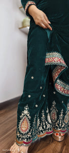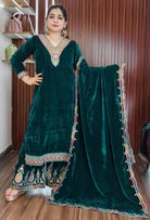 SYTLISH GREEN VELVET SUIT SET WITH VELVET DUPATTA