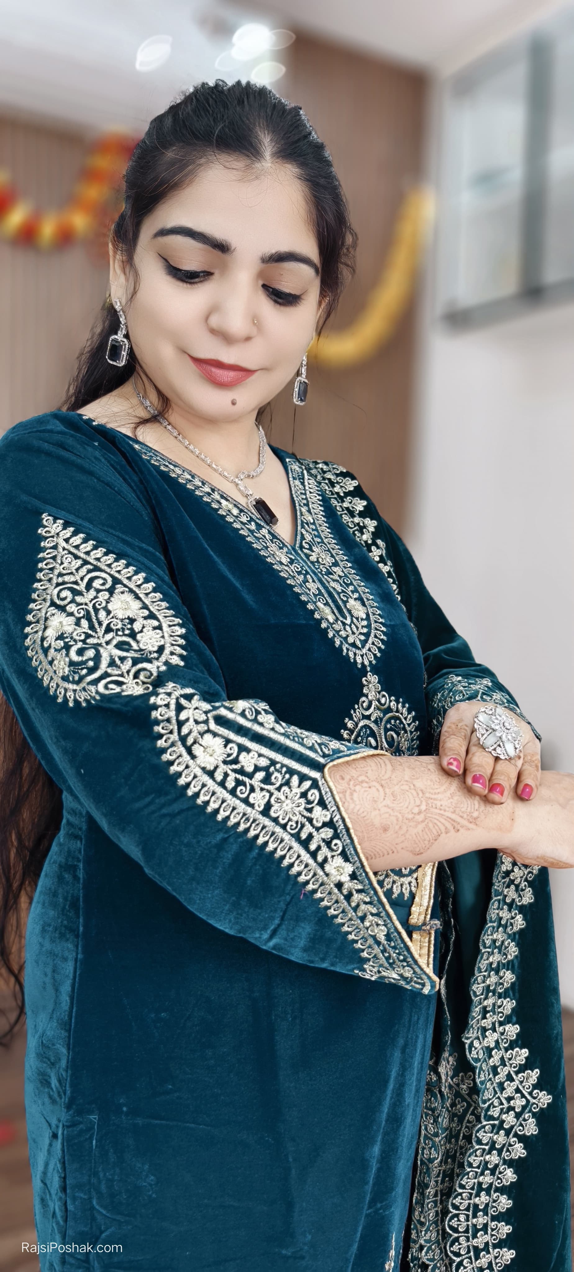 SYTLISH VELVET SUIT SET WITH VELVET DUPATTA