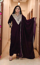The Sophisticated WINE PREMIUM LONG VELVET SUIT WITH REAL MIRROR AND DUPATTA for Any Occasion is a timeless and luxurious outfit that exudes elegance and style. Crafted from premium viscose velvet, this suit offers a smooth, rich texture that feels as good as it looks. Its refined design ensures a perfect fit, making it ideal for both formal and semi-formal events. Whether you're attending a business meeting, a wedding, or a night out, this versatile suit will elevate your look, providing both comfort and a high-end appearance for any occasion.