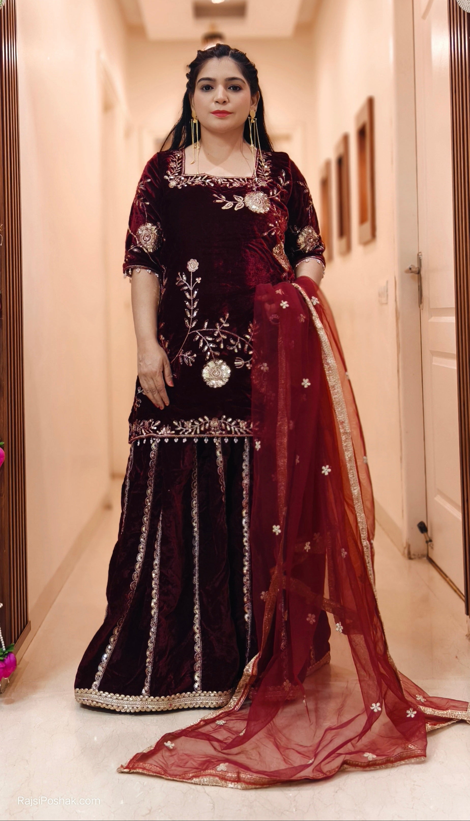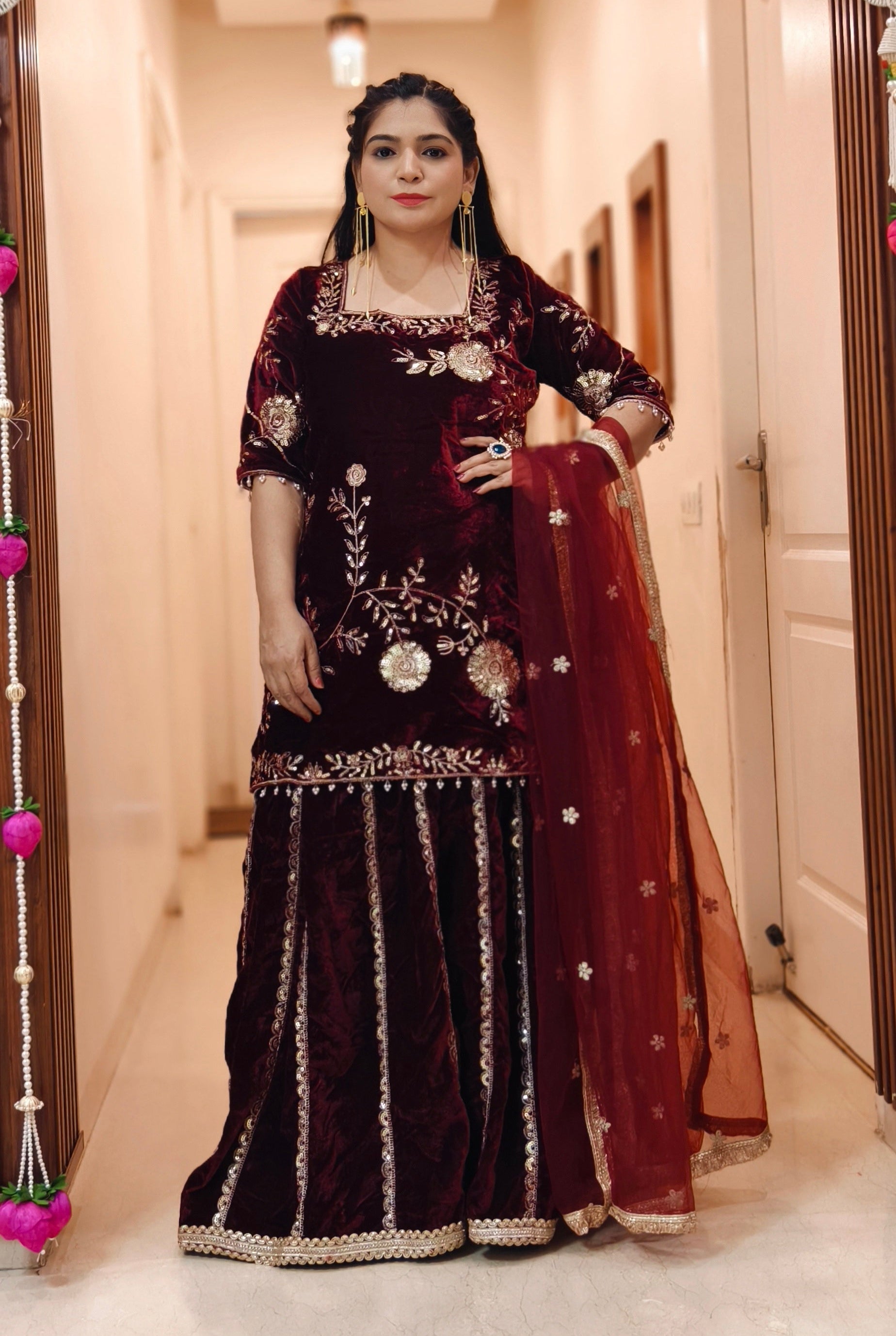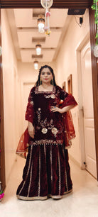 WINE SOPHISTICATED VISCOSE VELVET SUIT FOR ANY OCCASION WITH DUPATTA