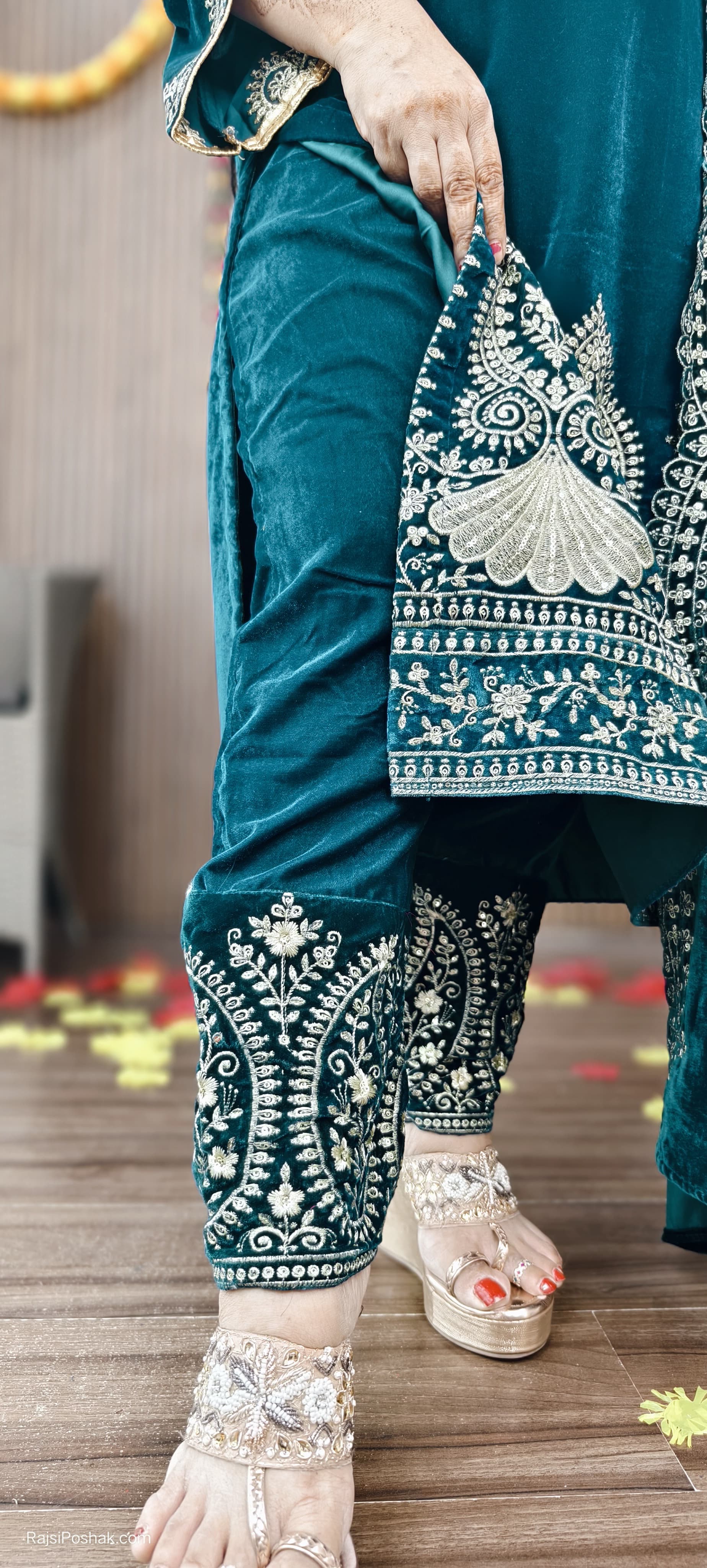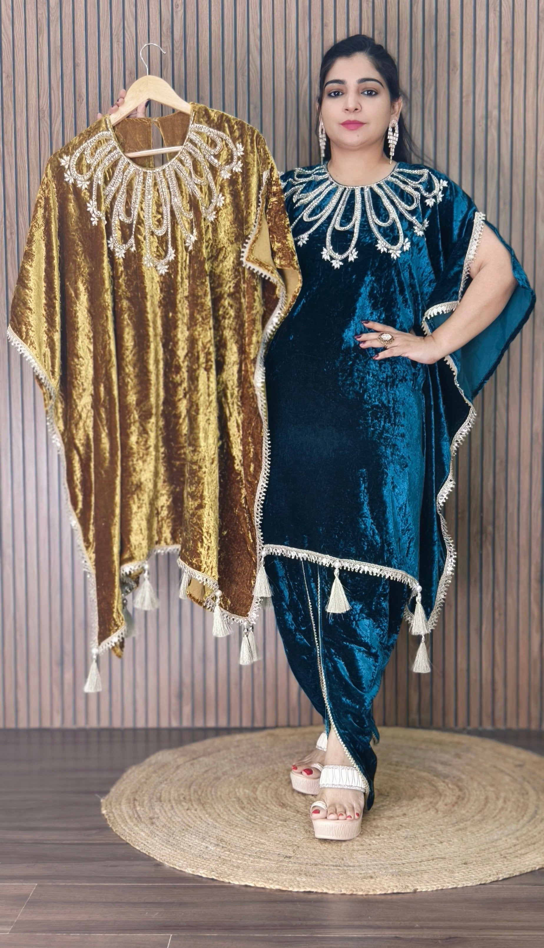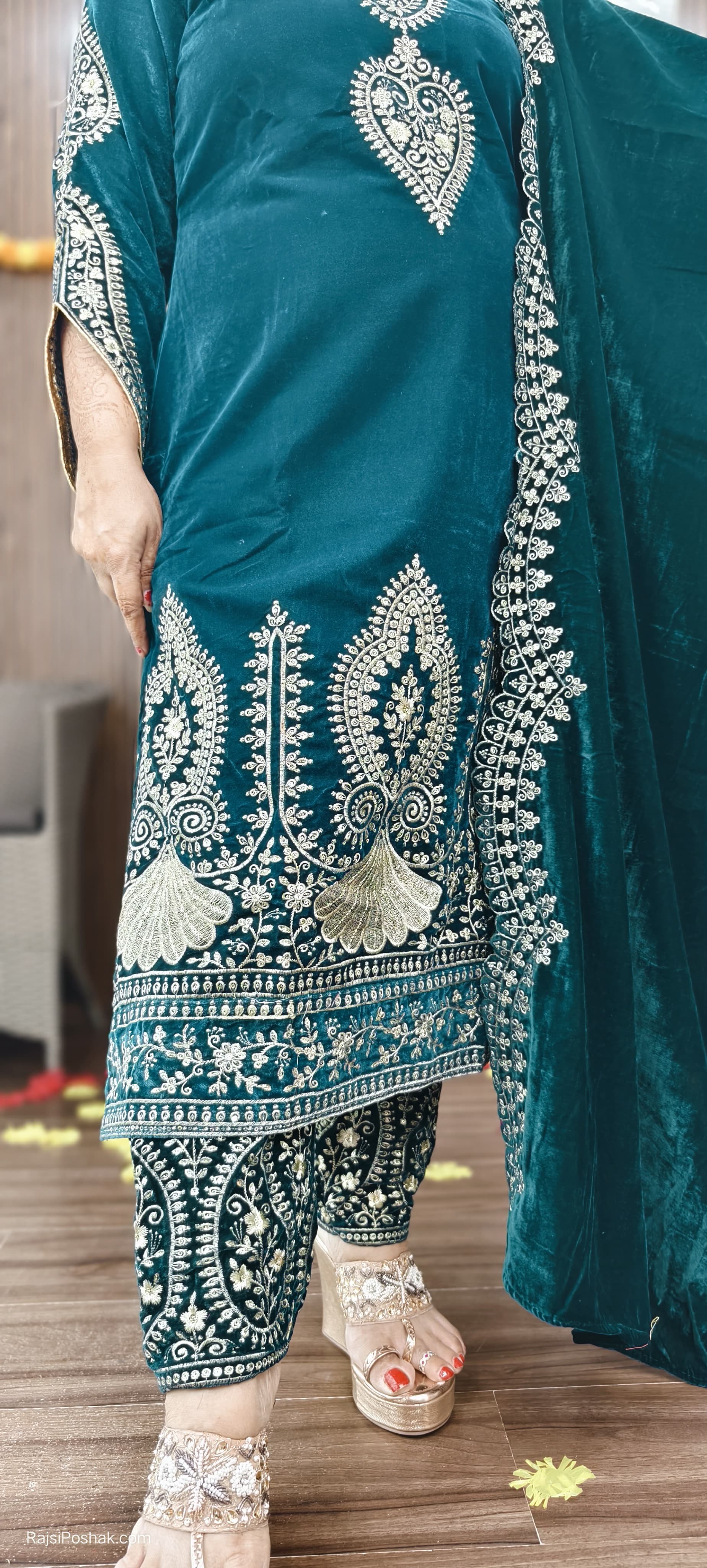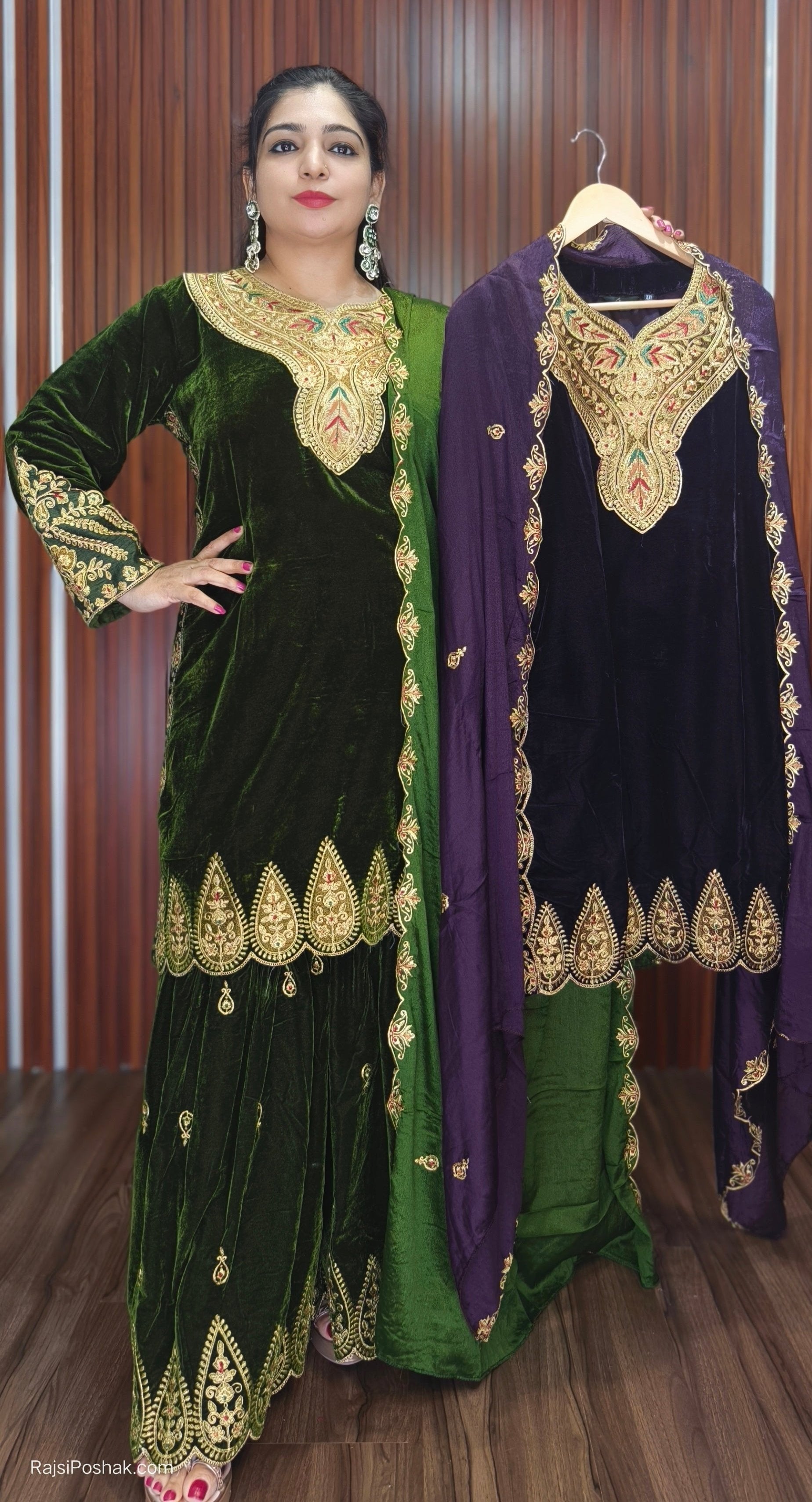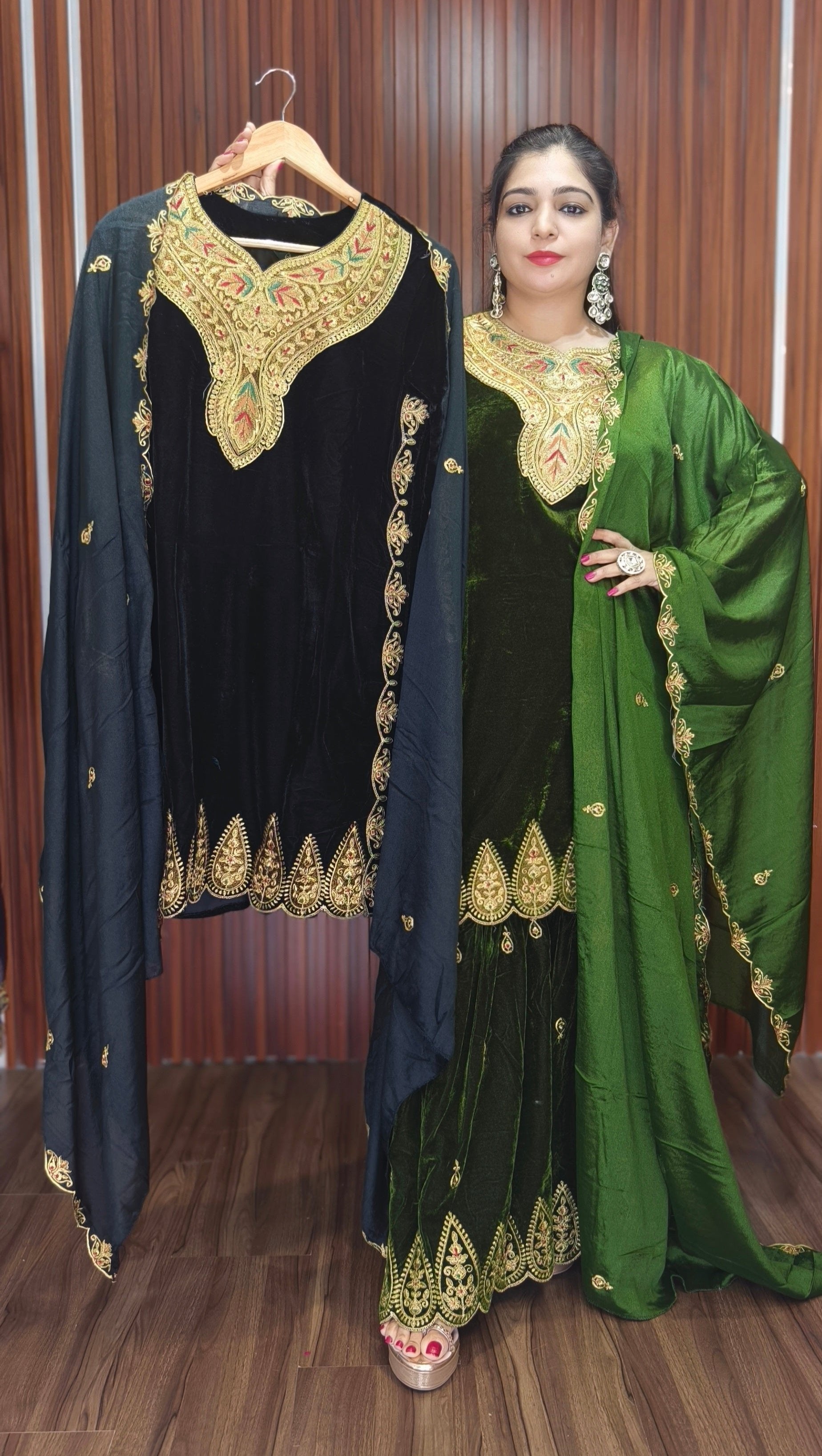 GREEN PREMIUM VELVET COORD SET WITH DESIGNER WORK AND JACKET