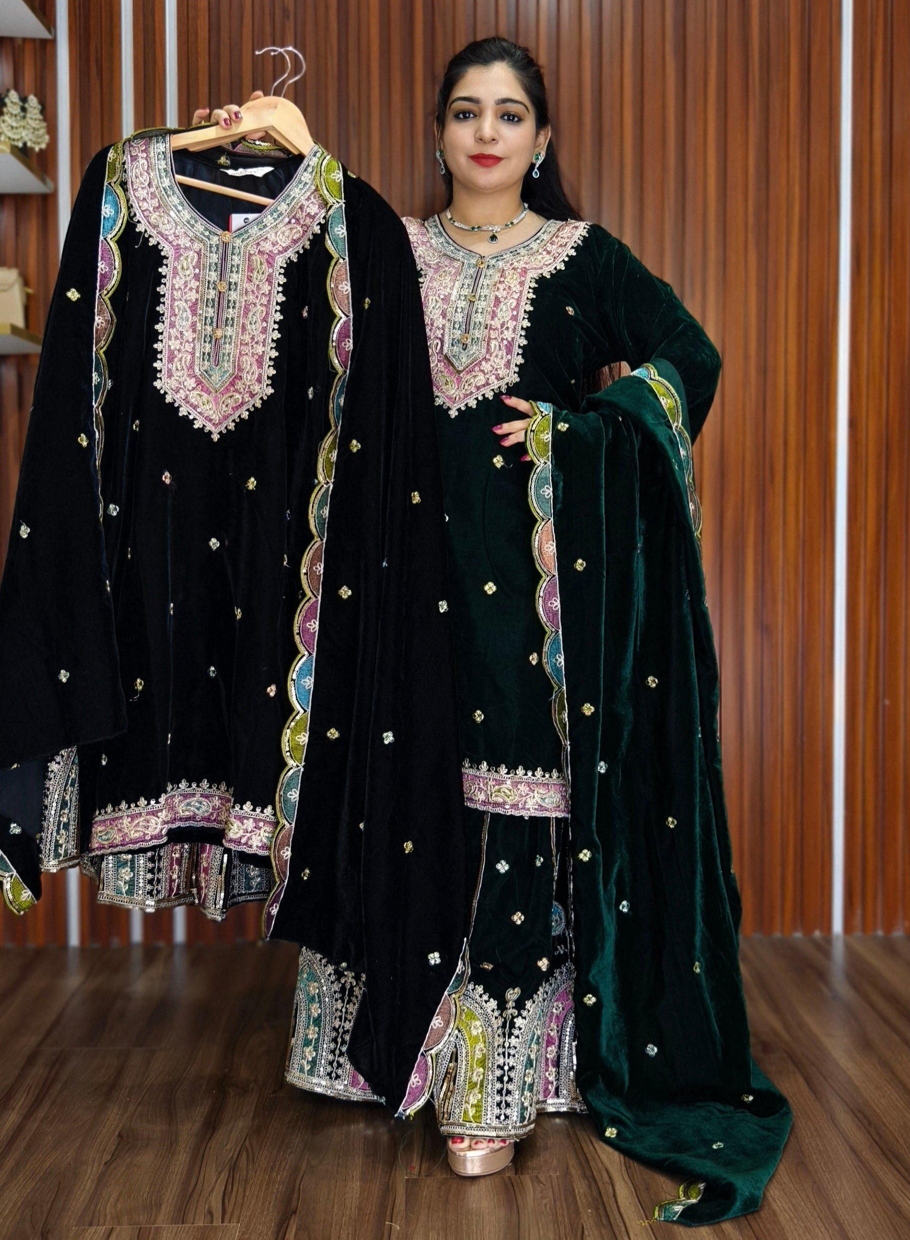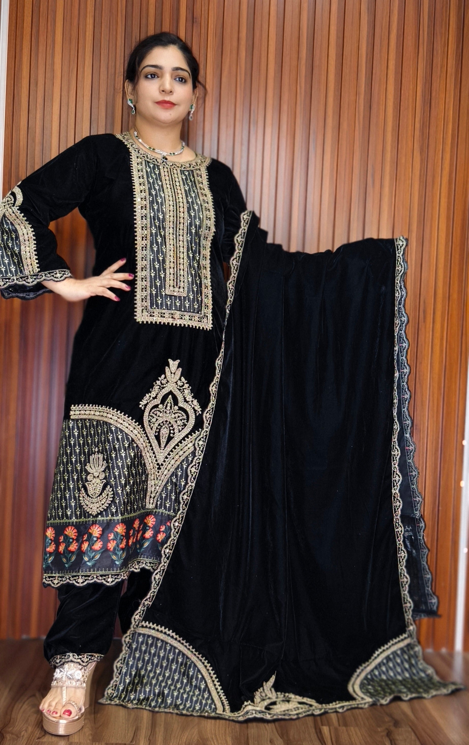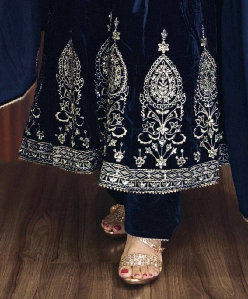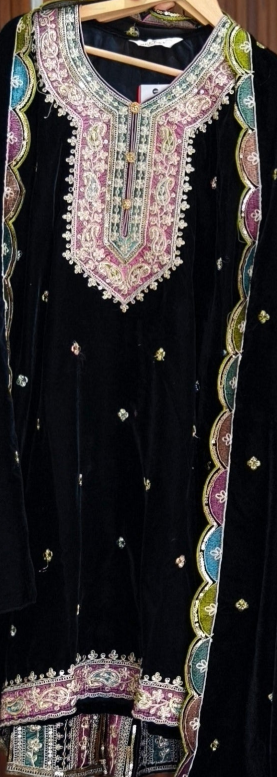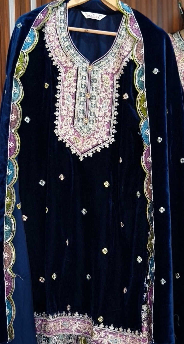 SYTLISH VELVET COORDSET WITH FULL EMBROIDERY WORK