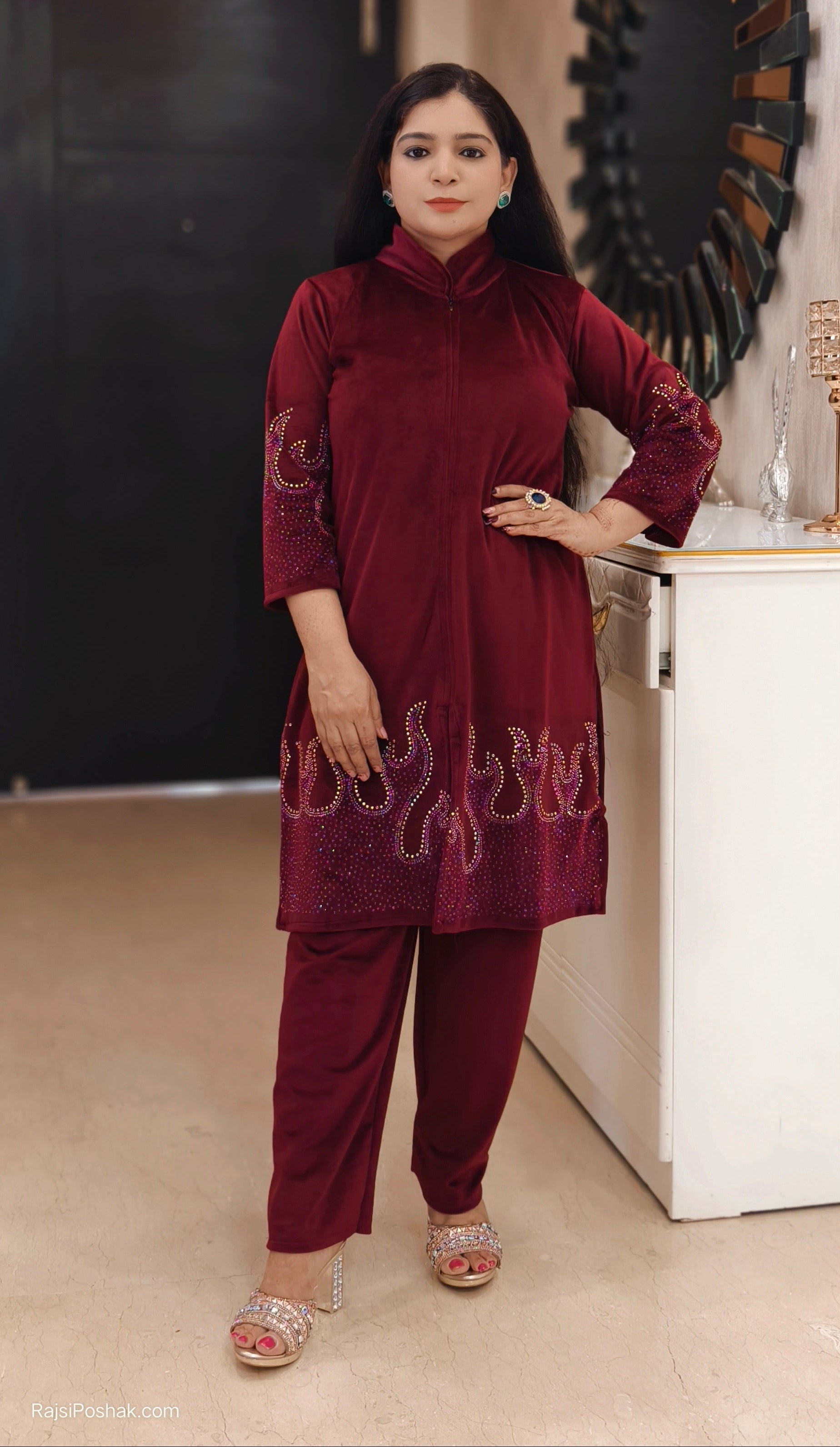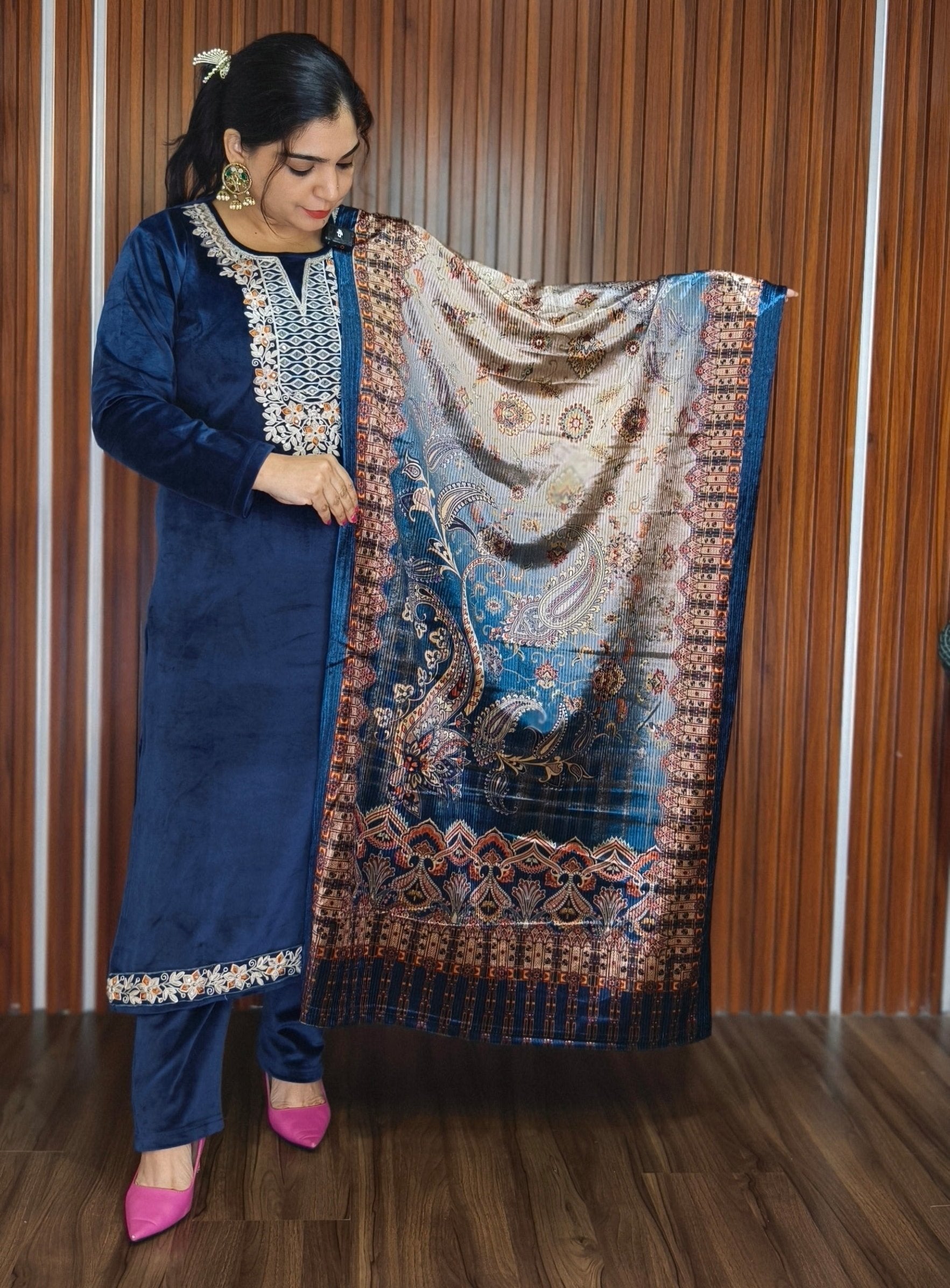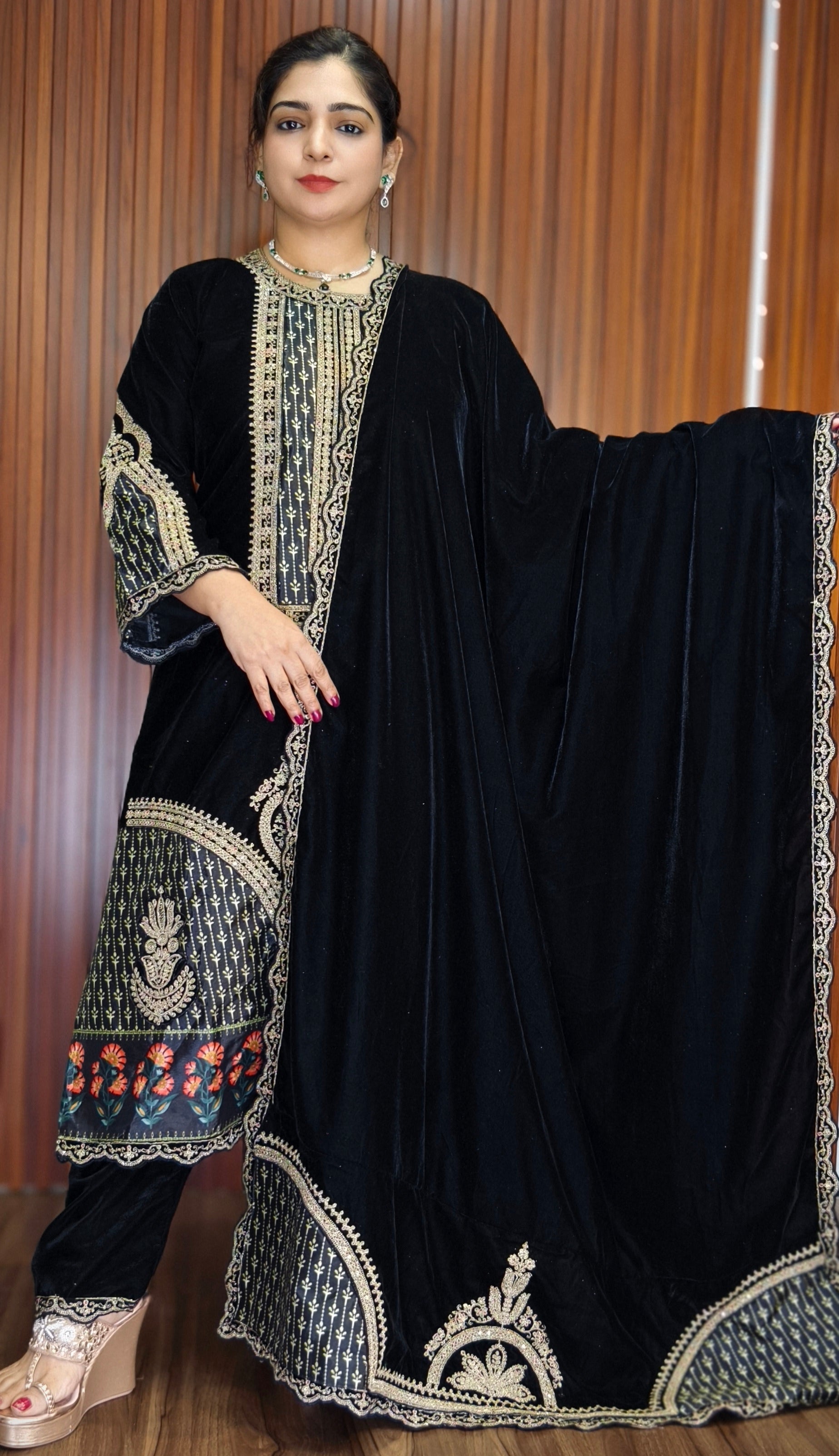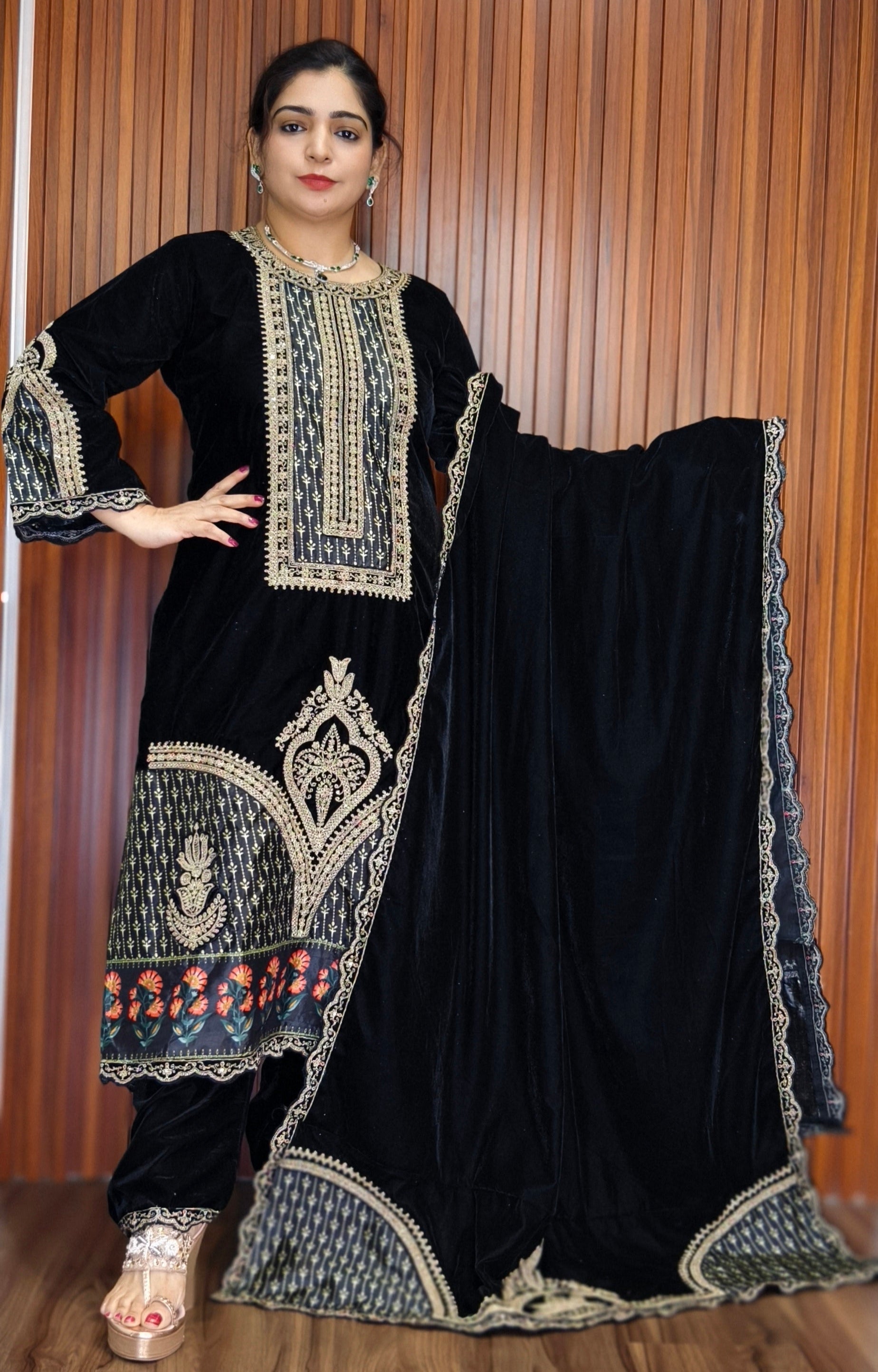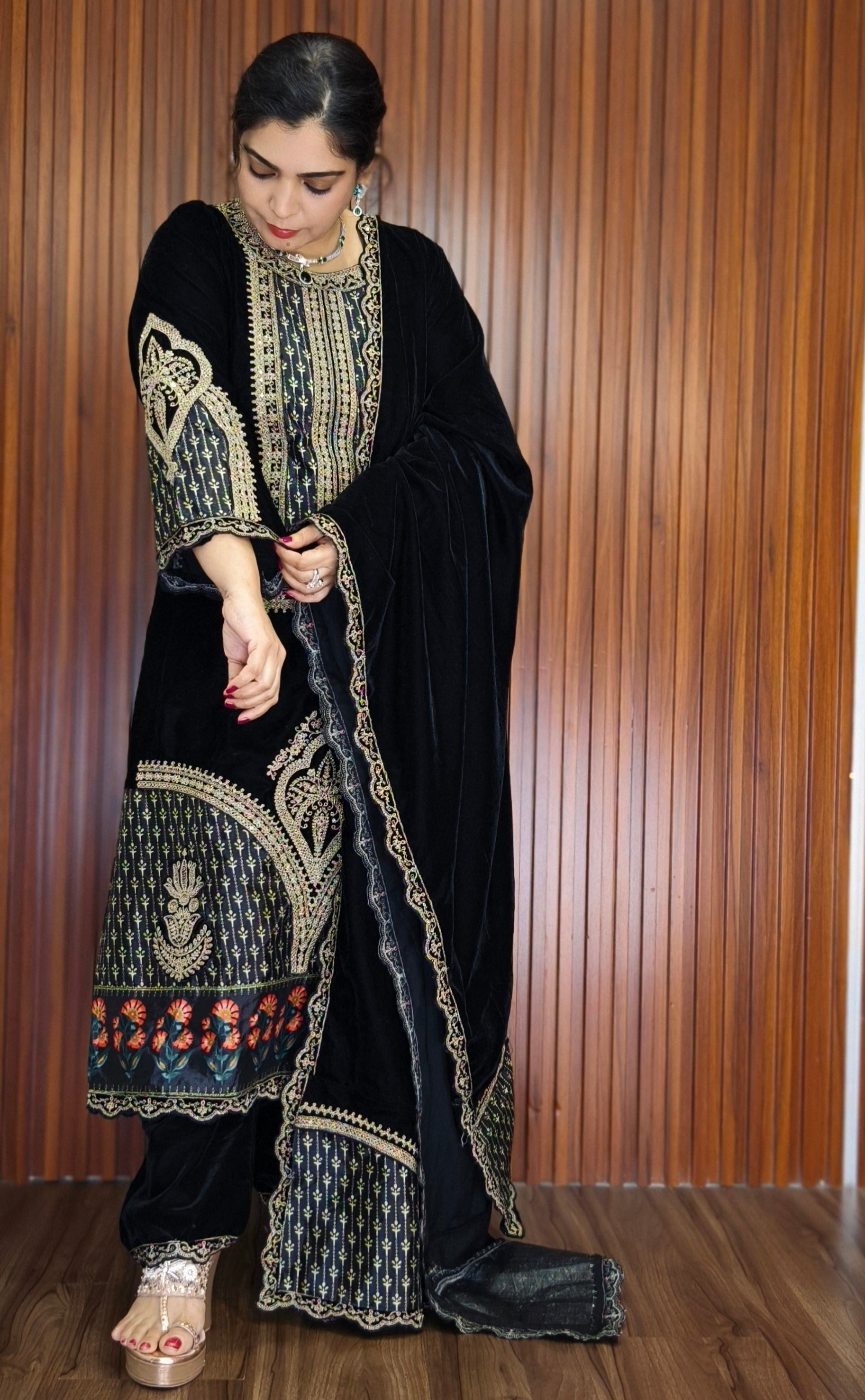 SYTLISH VELVET COORDSET WITH FULL EMBROIDERY WORK