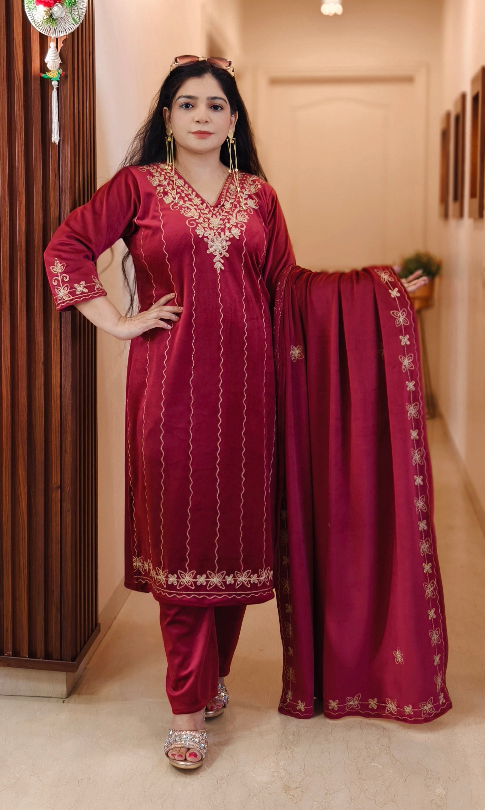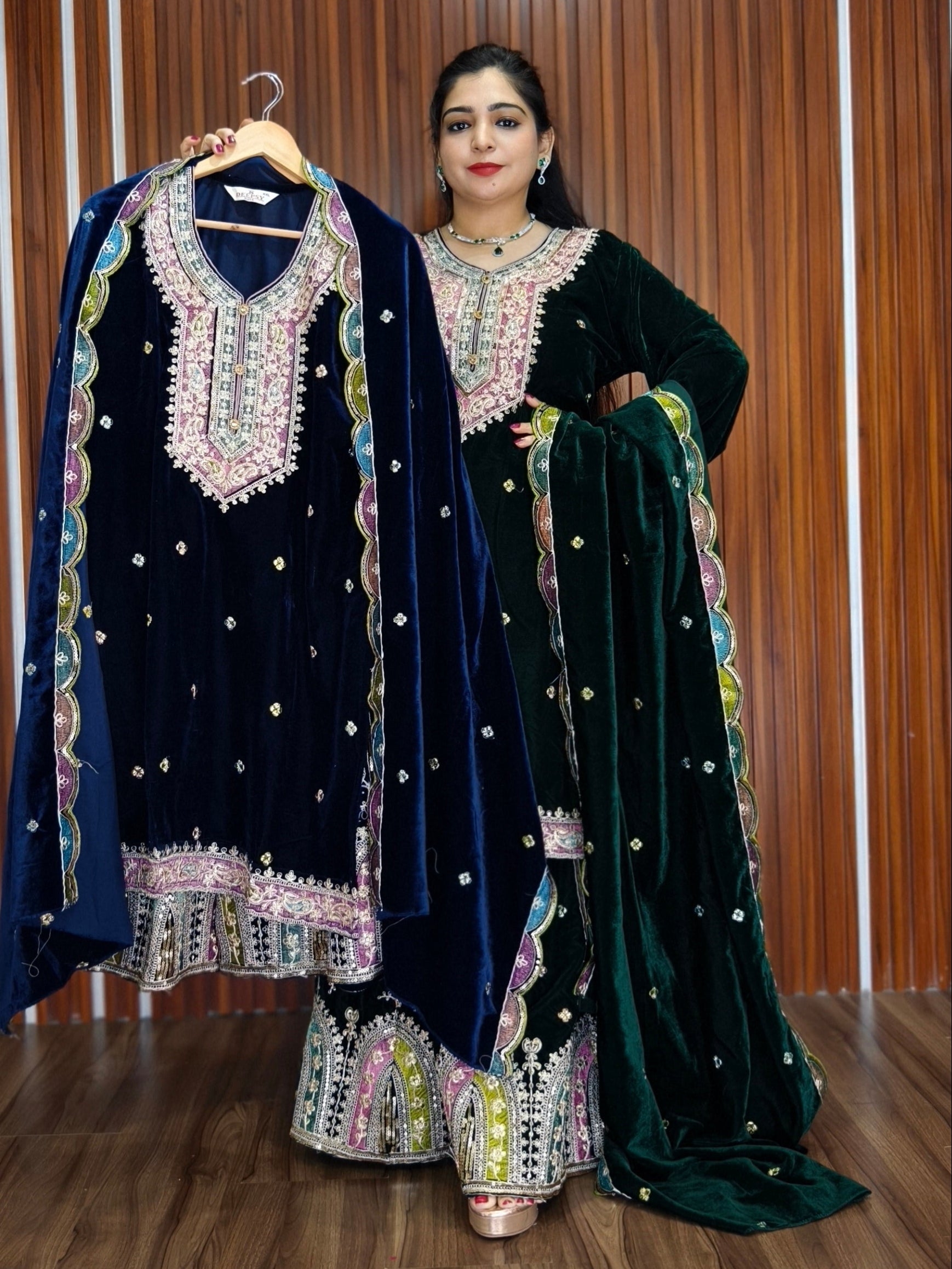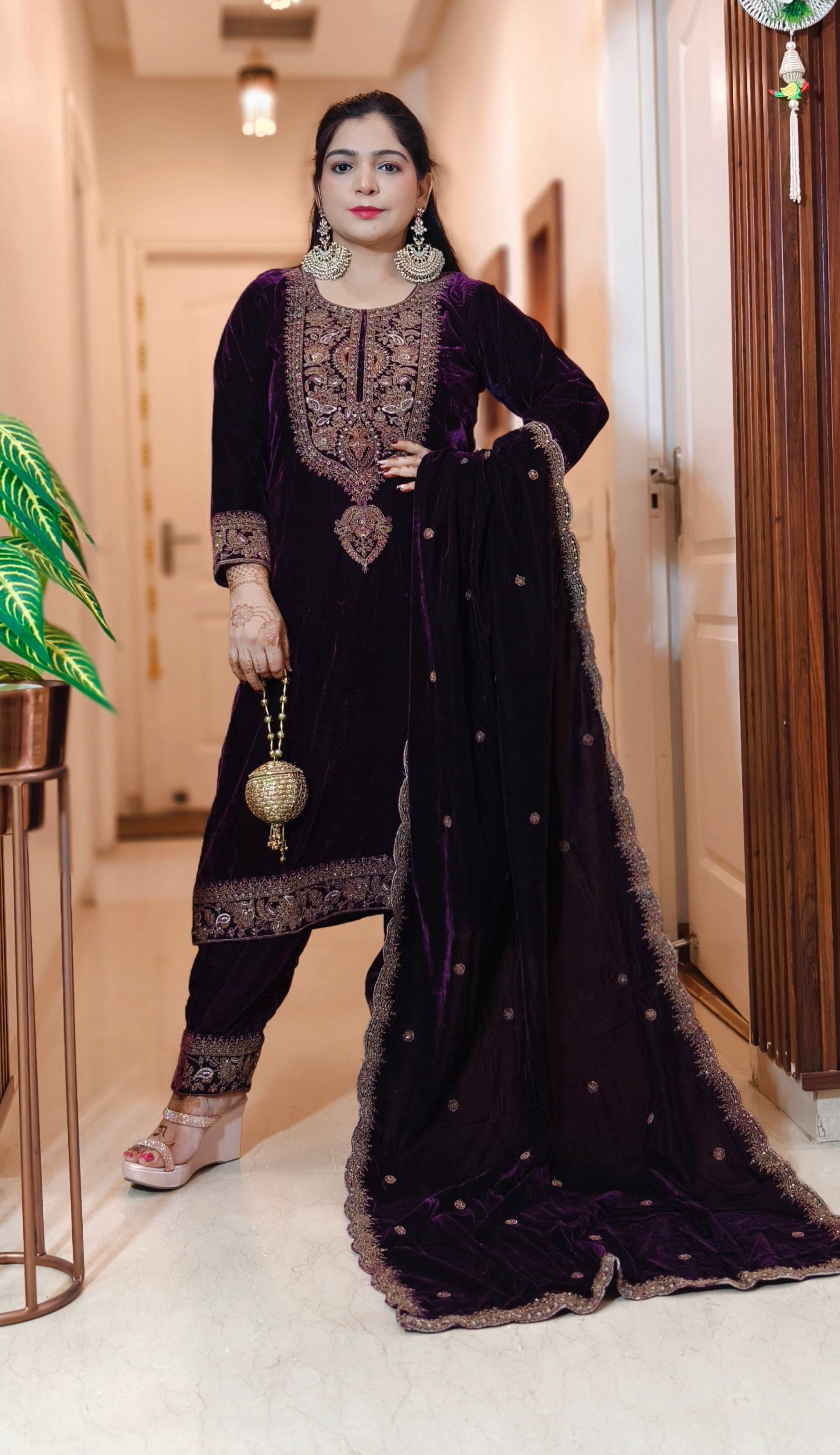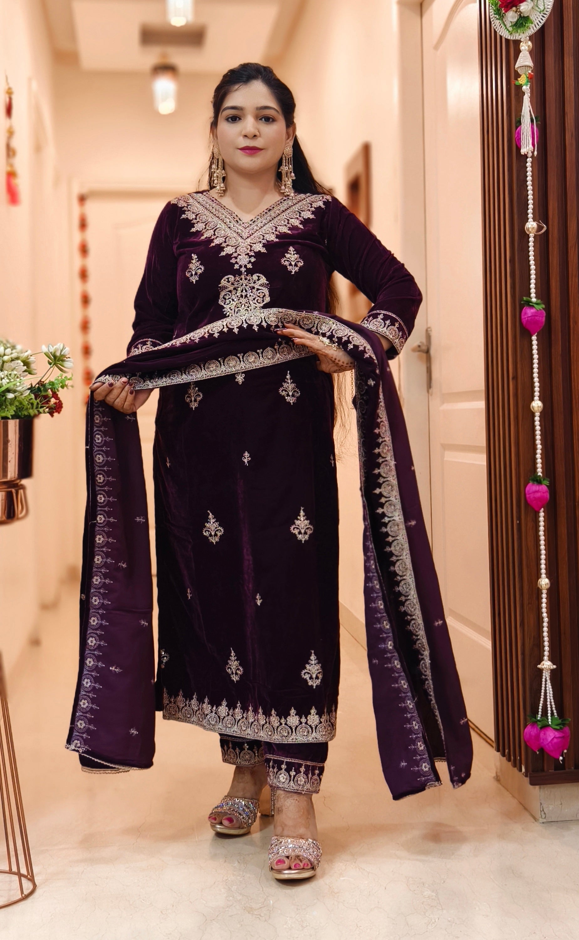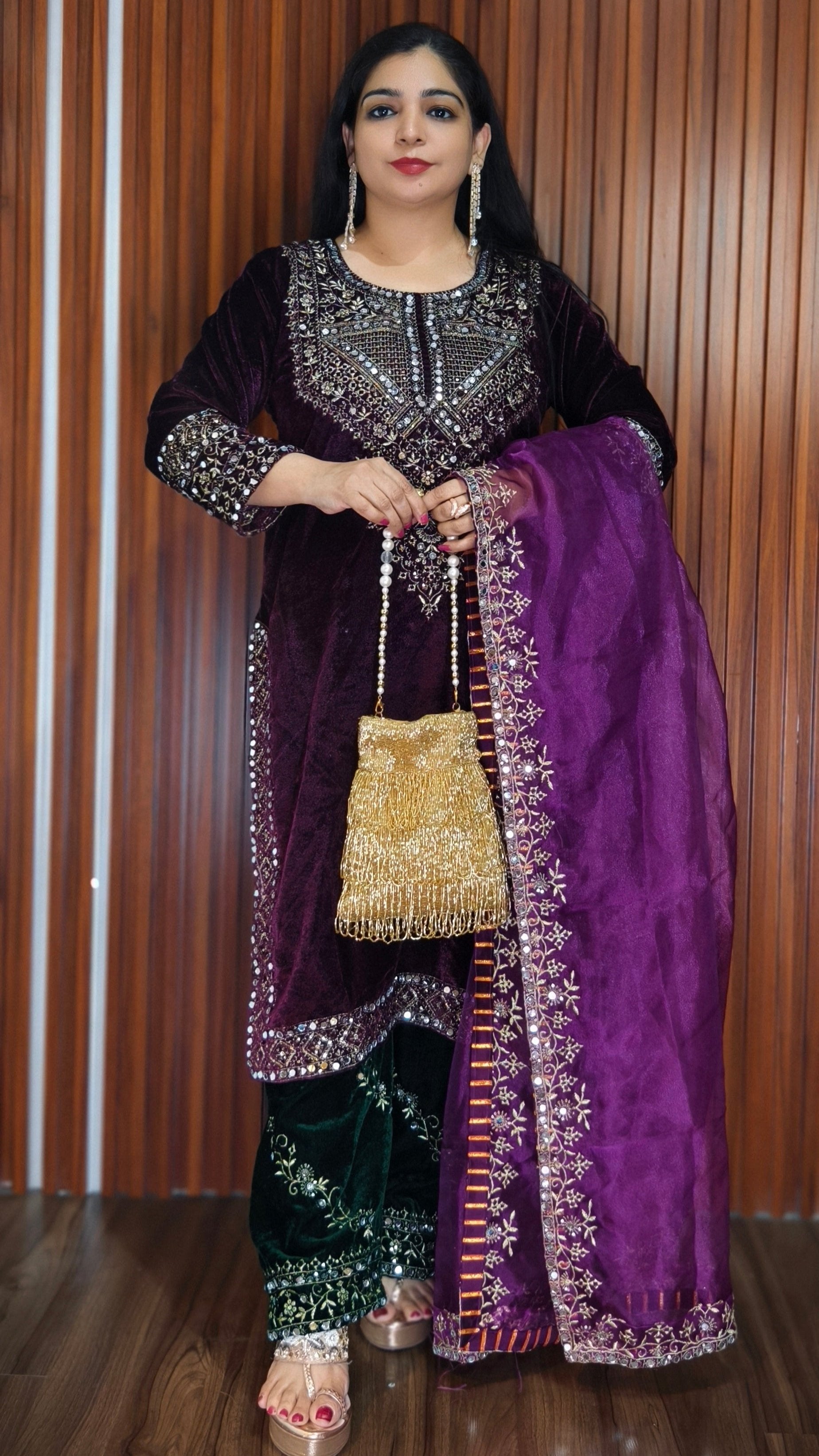 SYTLISH VELVET COORDSET WITH FULL EMBROIDERY WORK