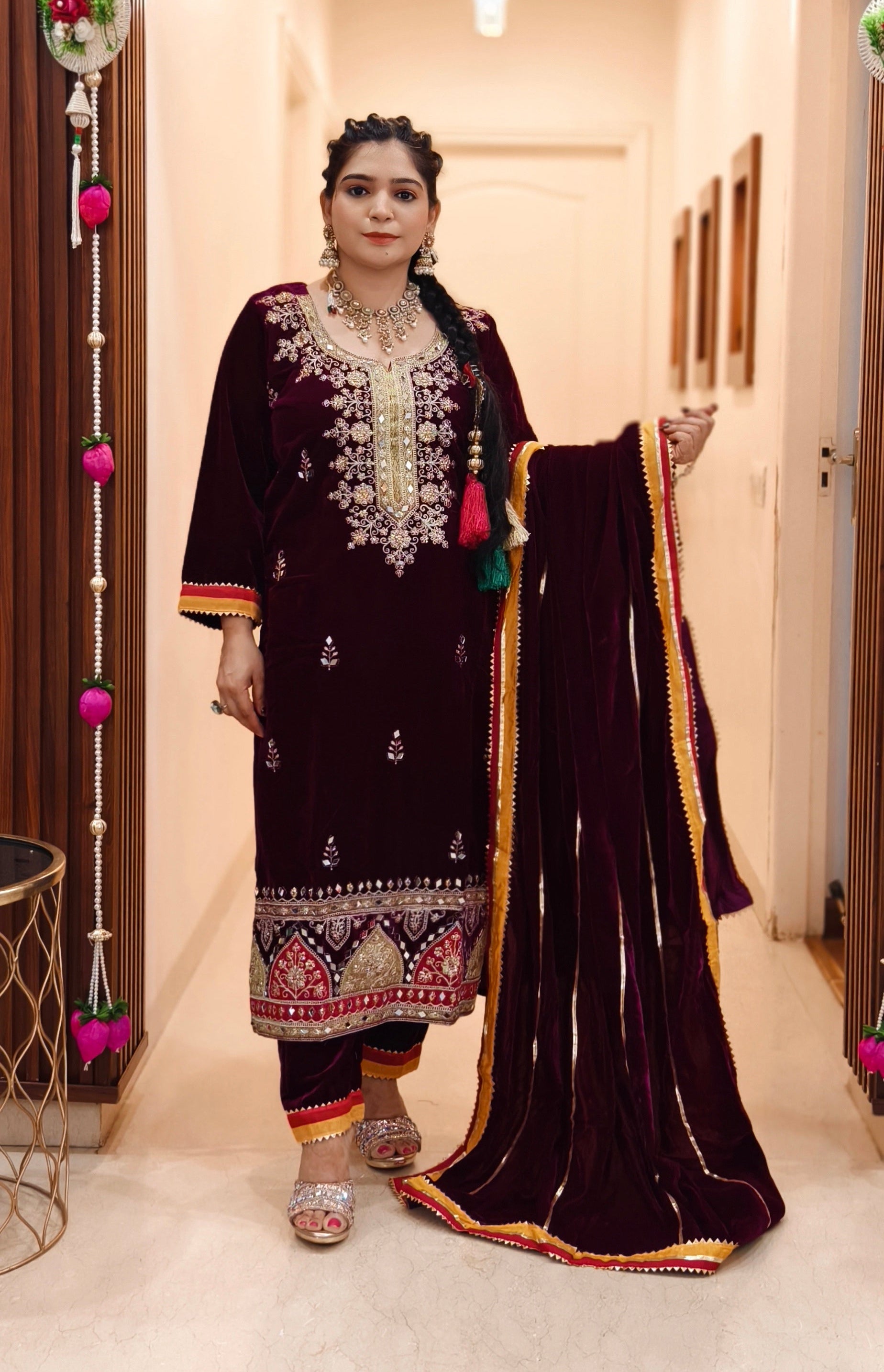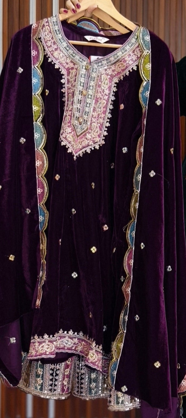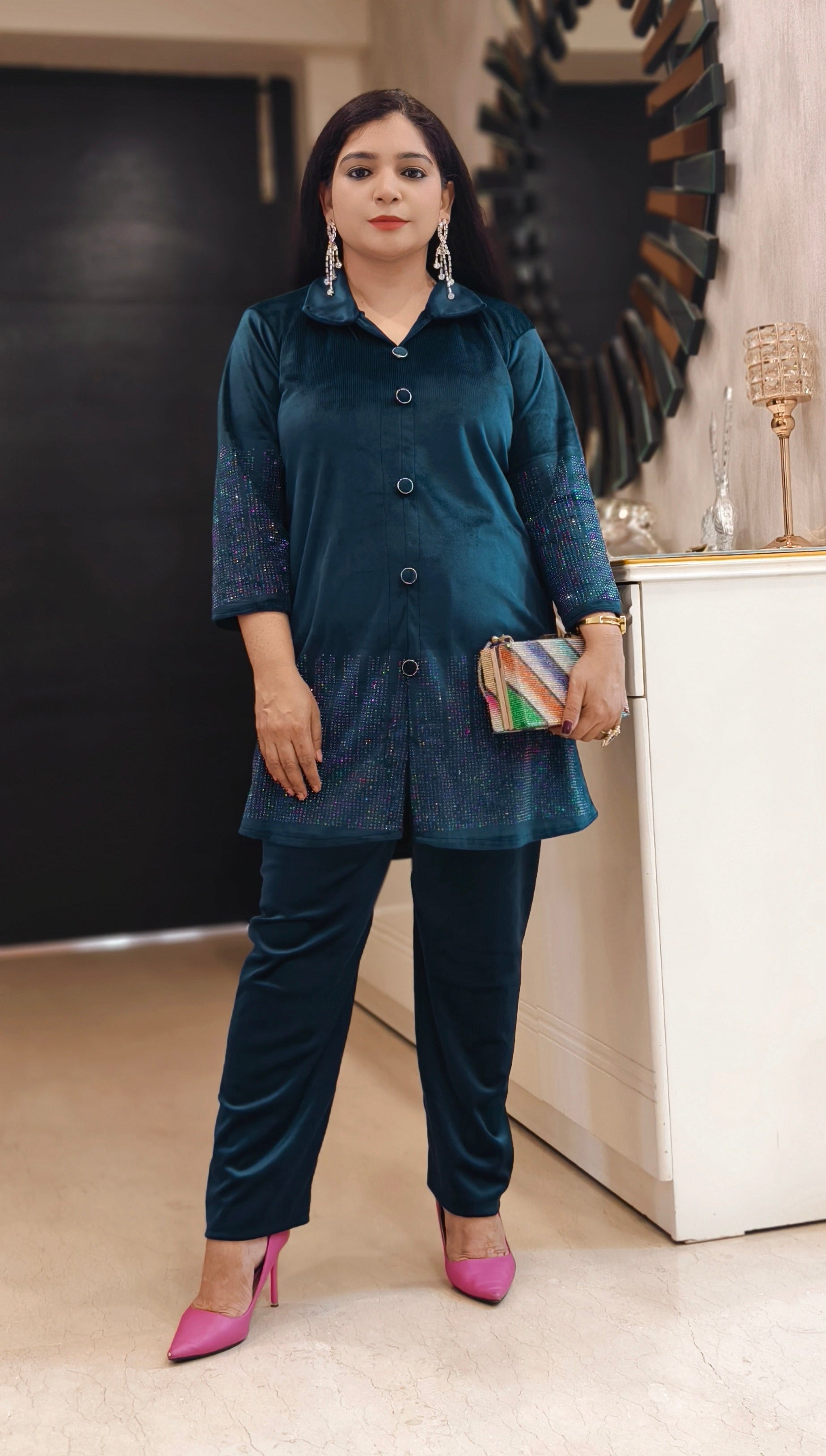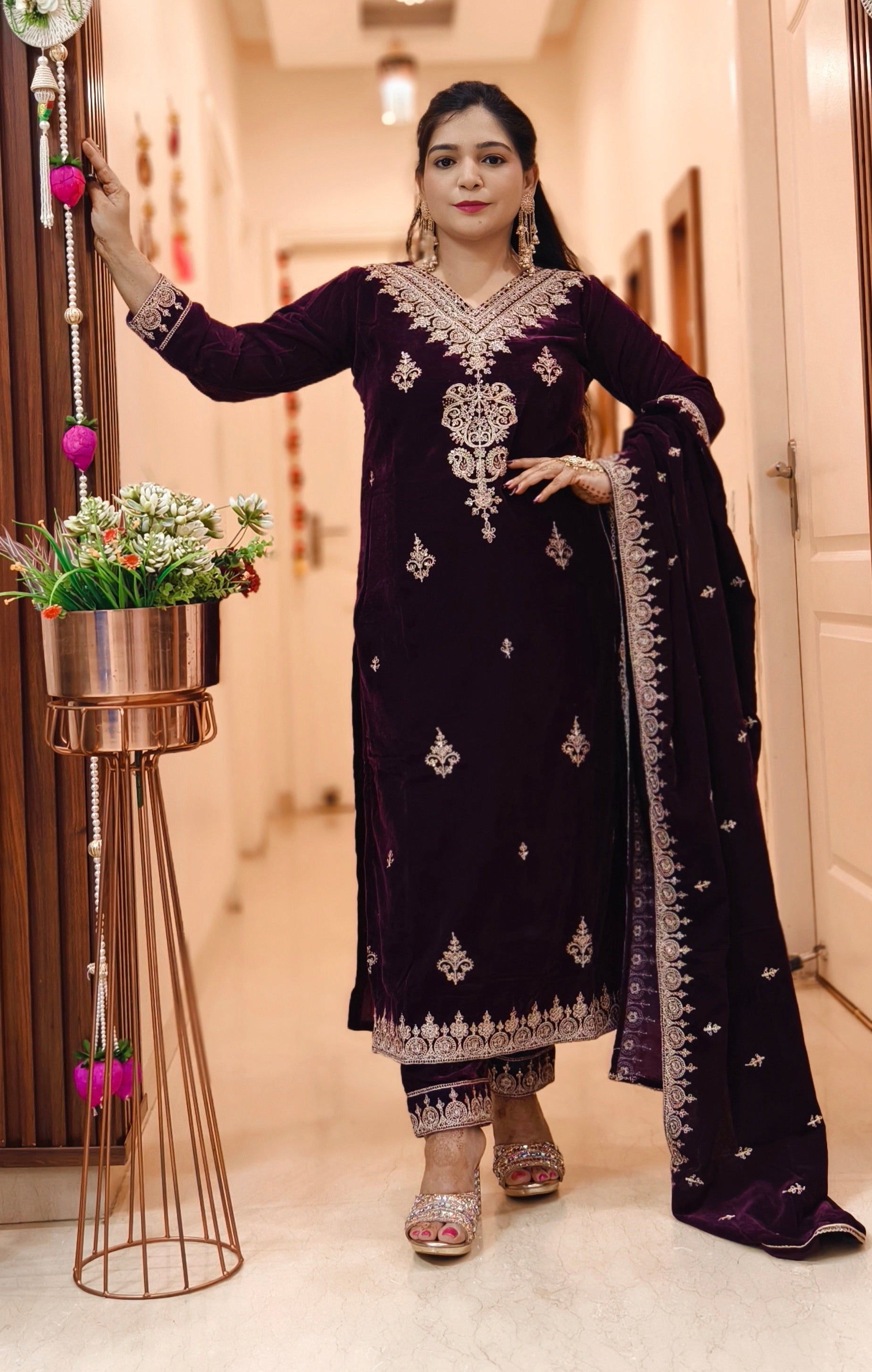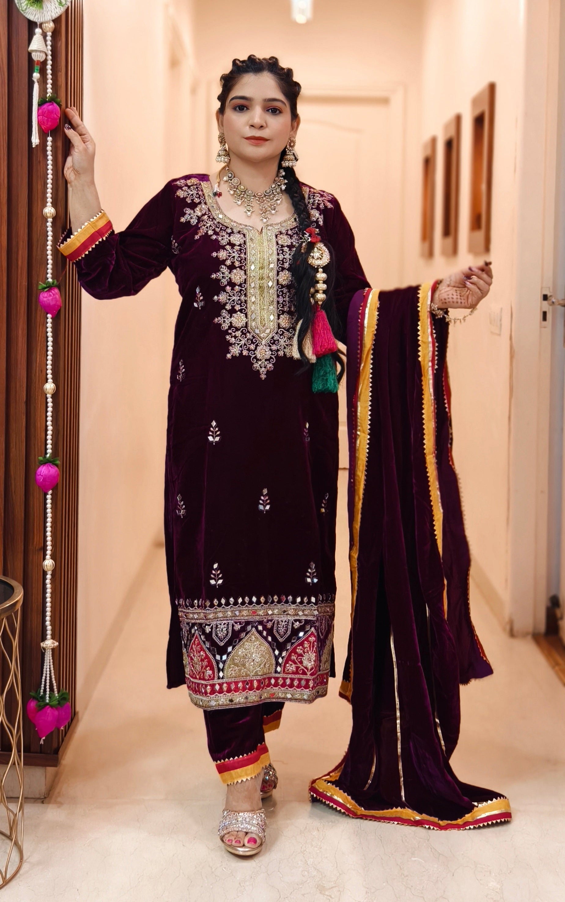 SYTLISH VELVET COORDSET WITH FULL EMBROIDERY WORK