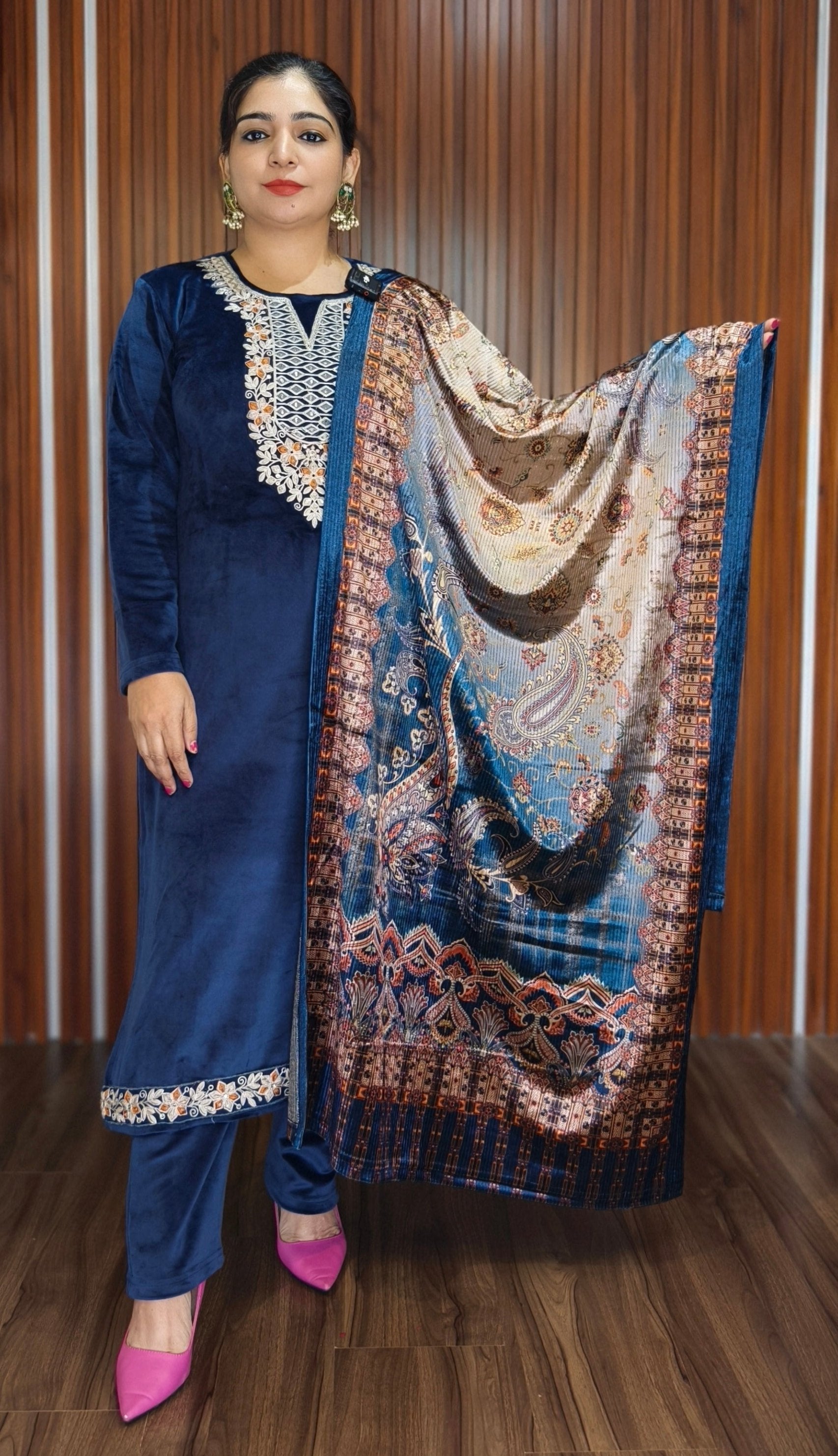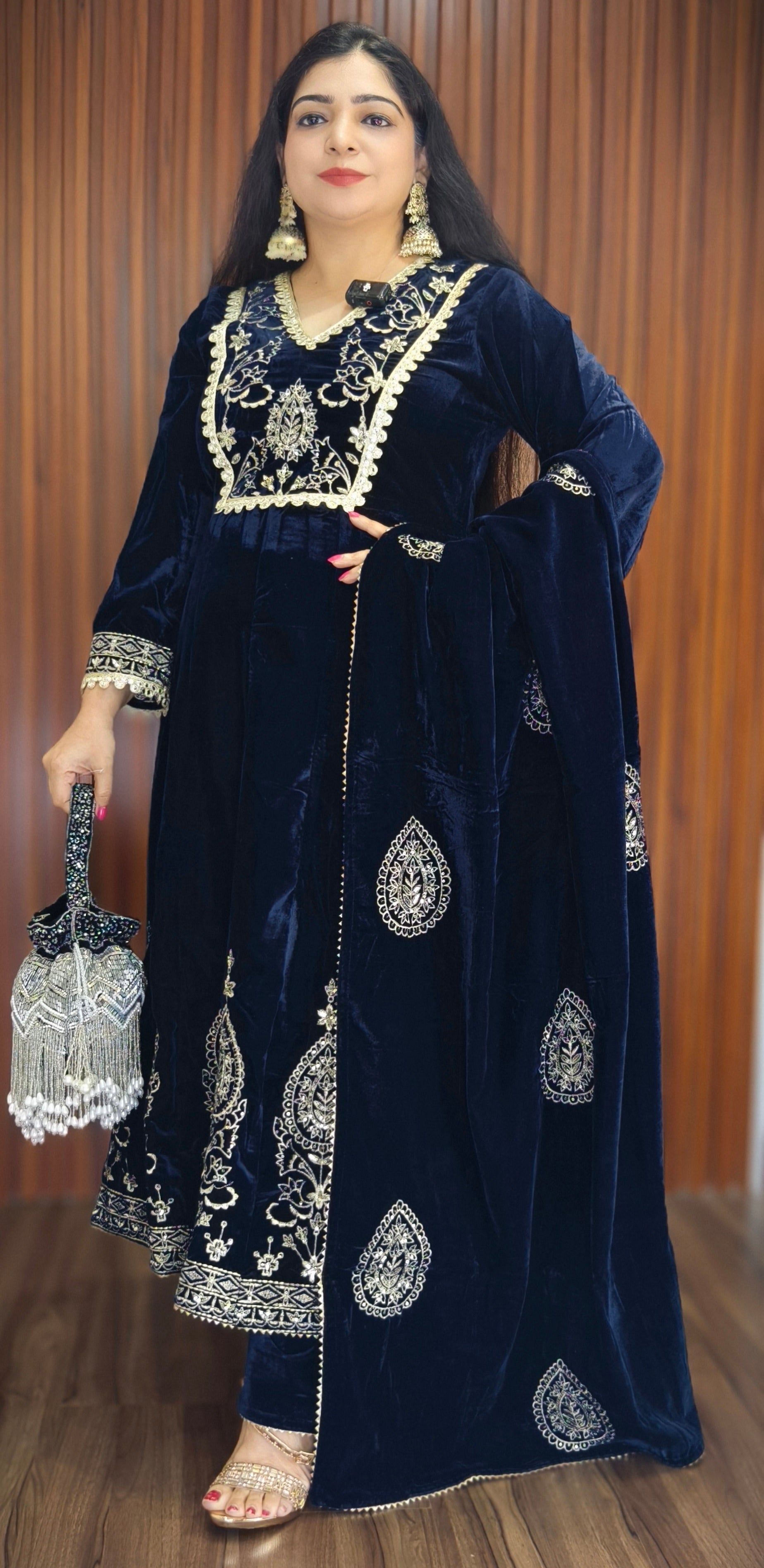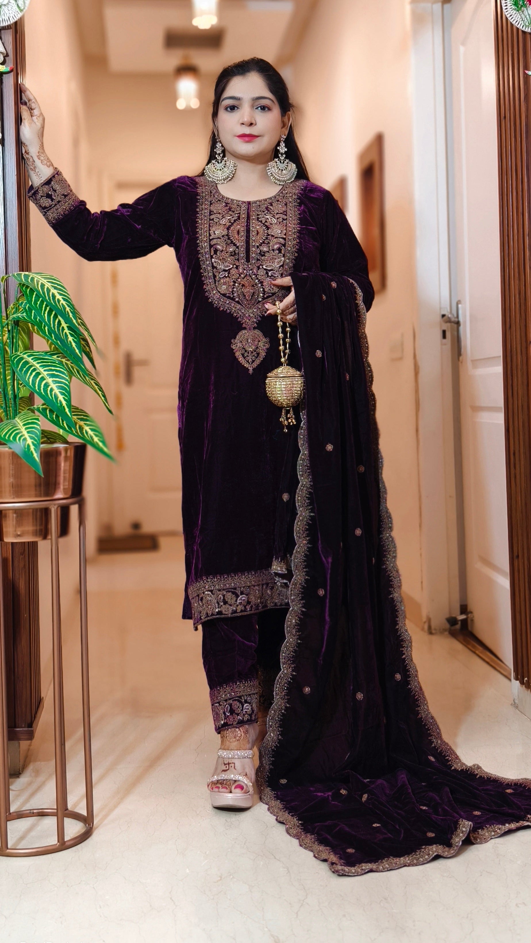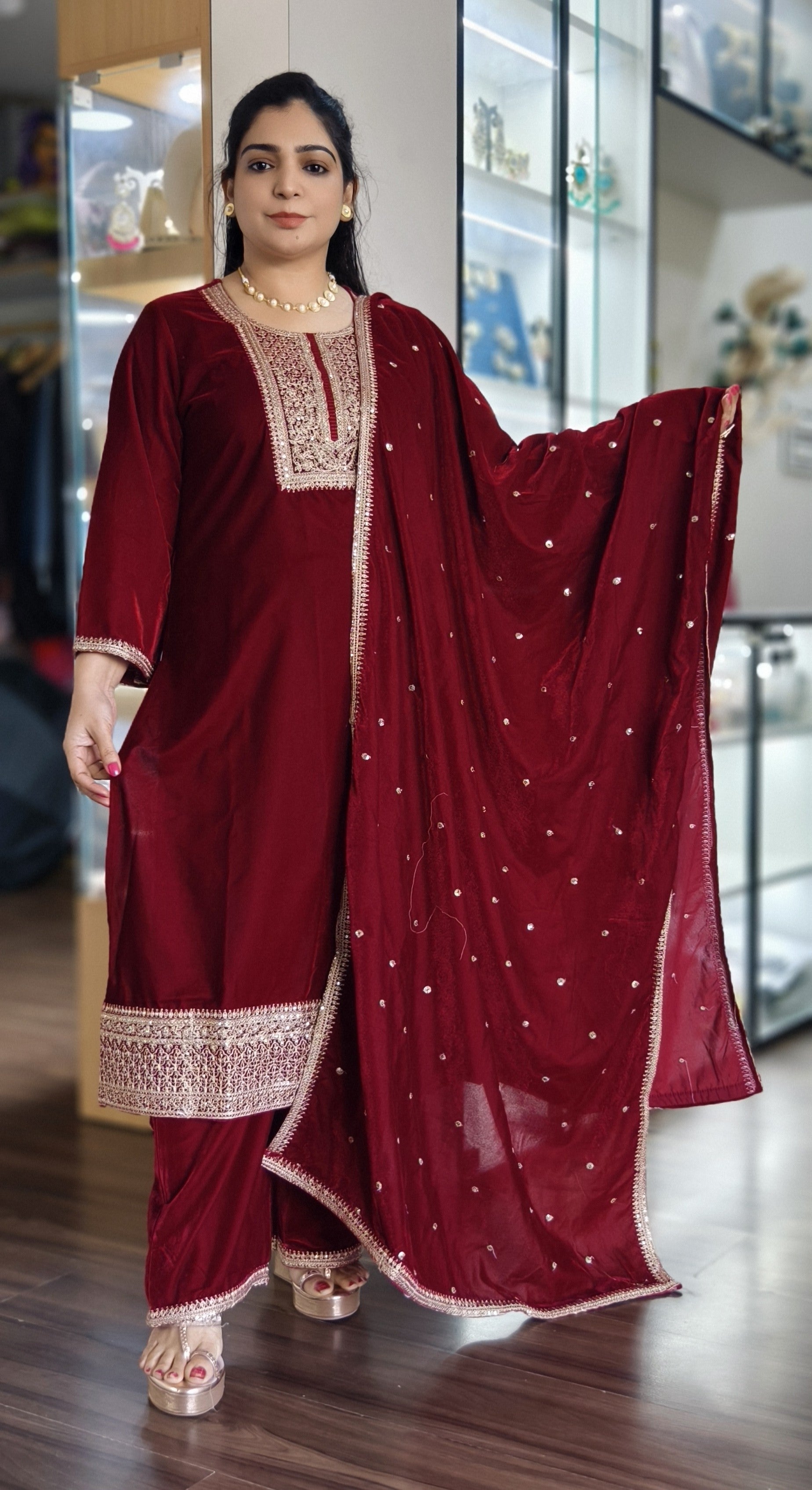 SYTLISH VELVET COORDSET WITH FULL EMBROIDERY WORK