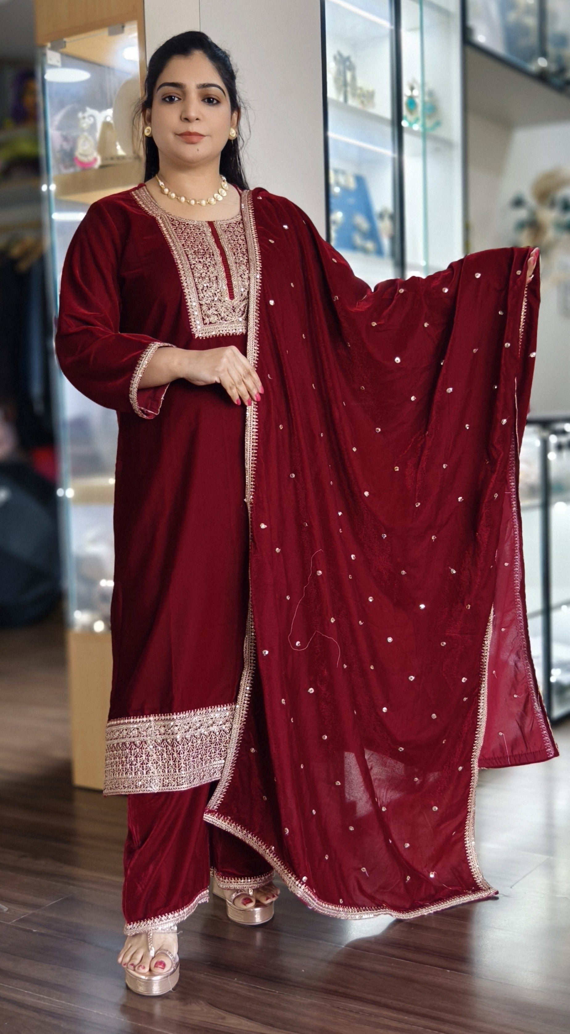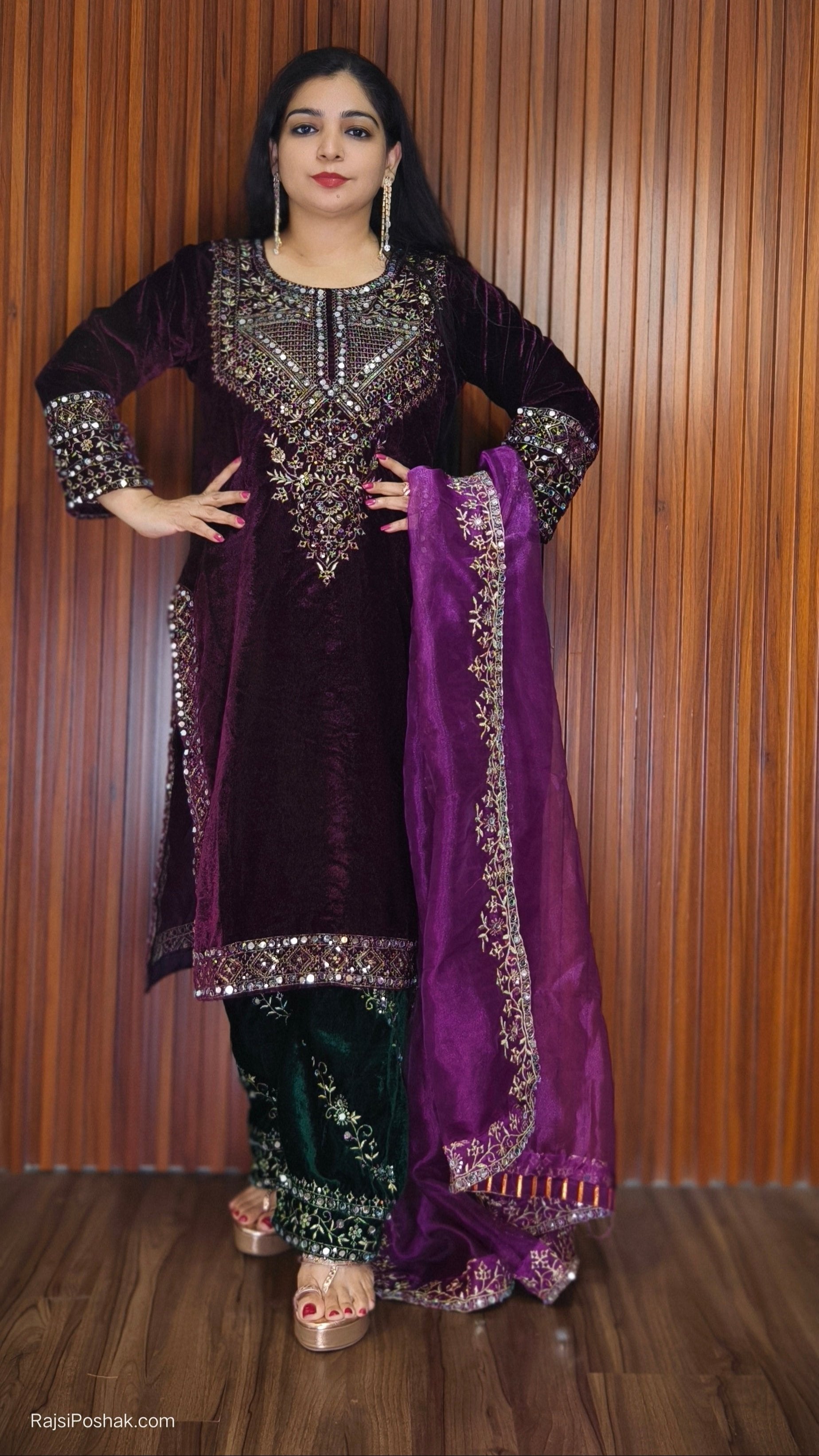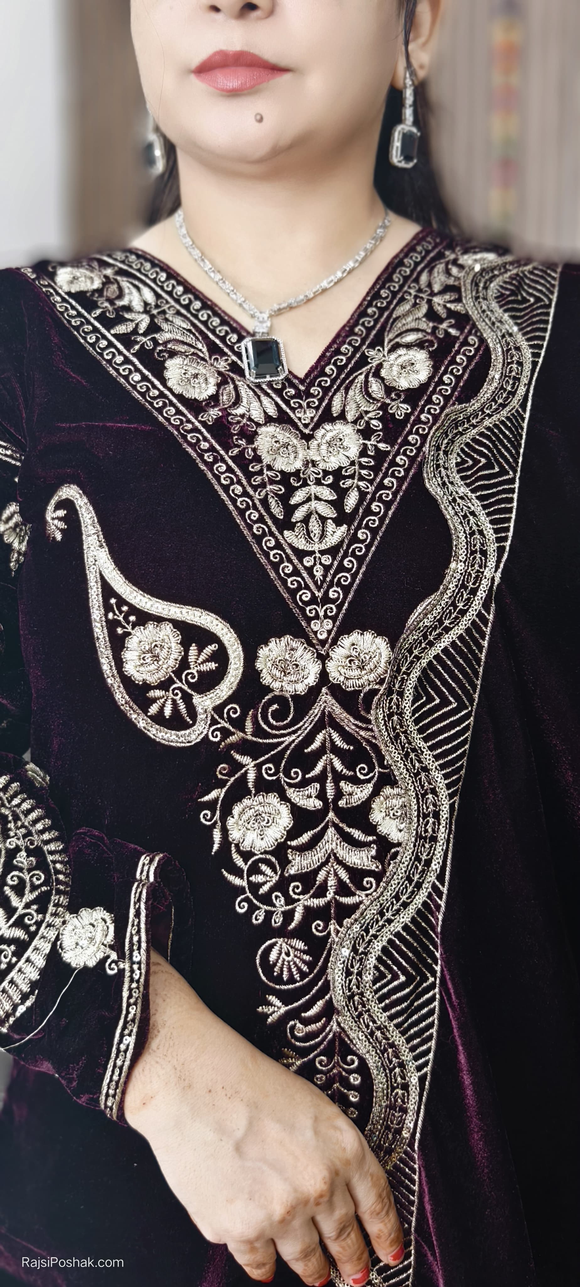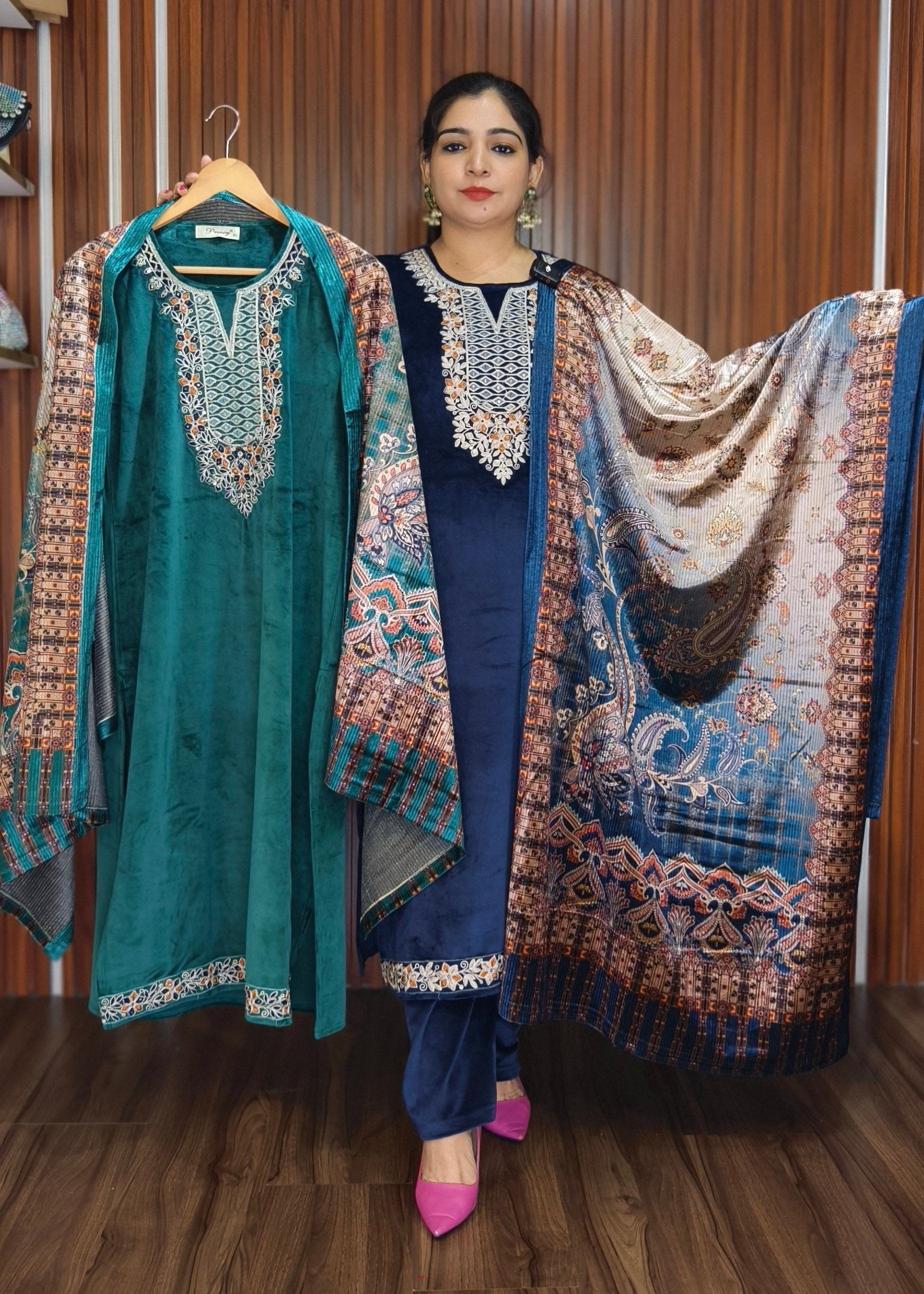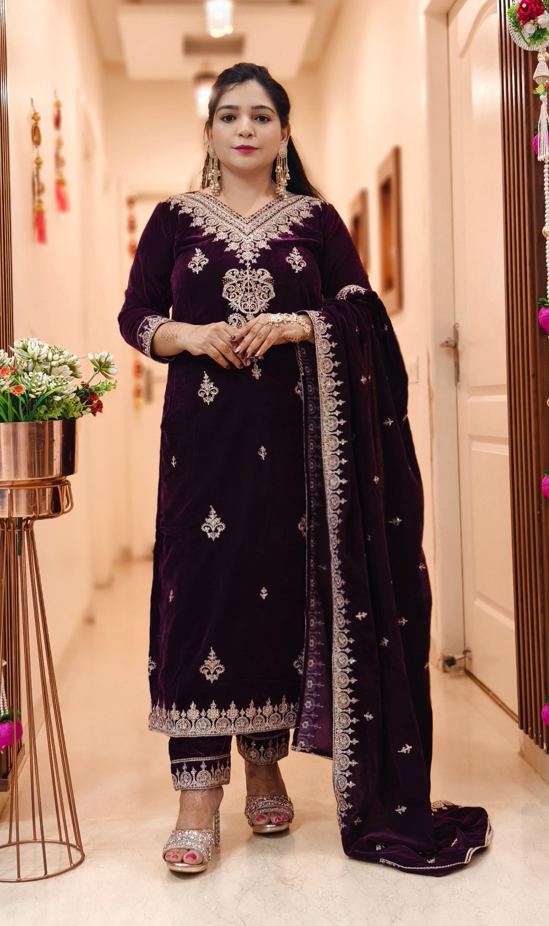 SYTLISH VELVET COORDSET WITH FULL EMBROIDERY WORK