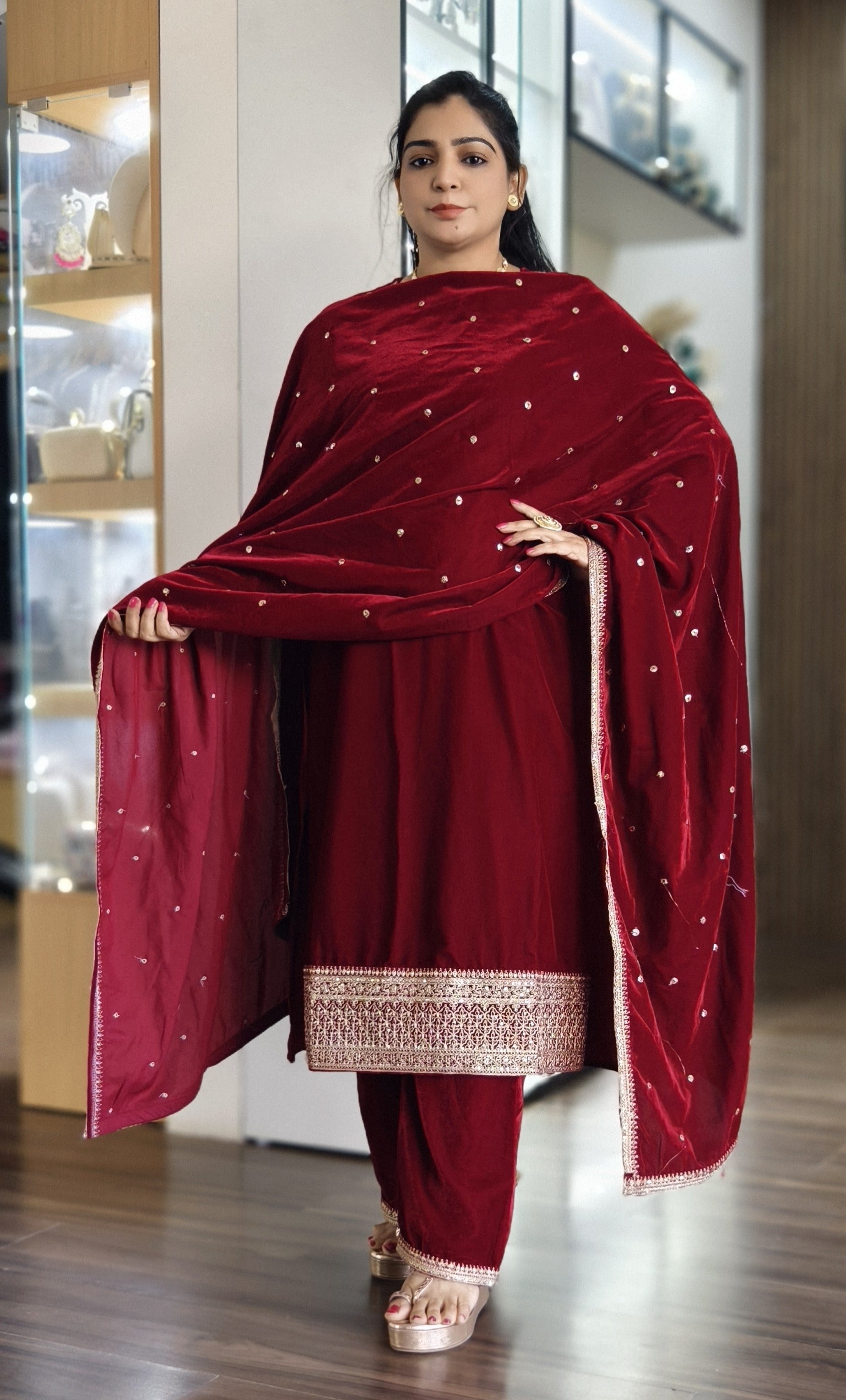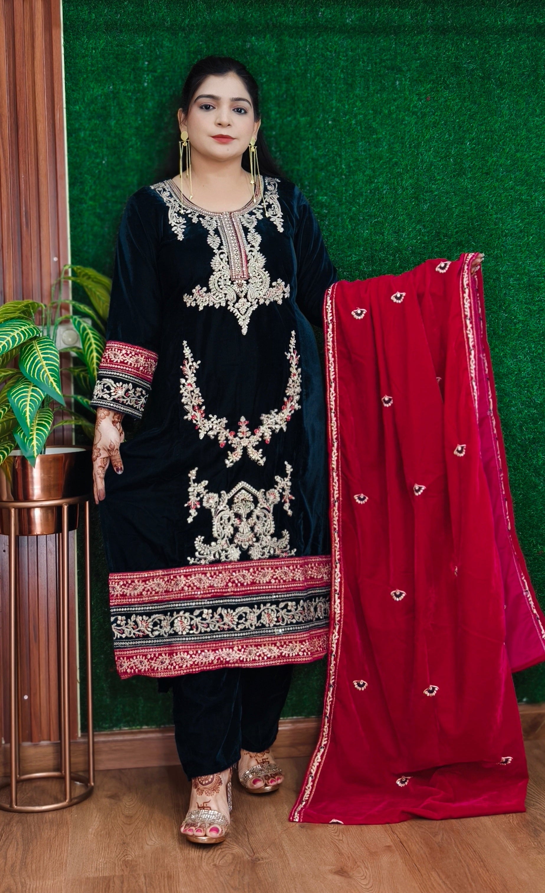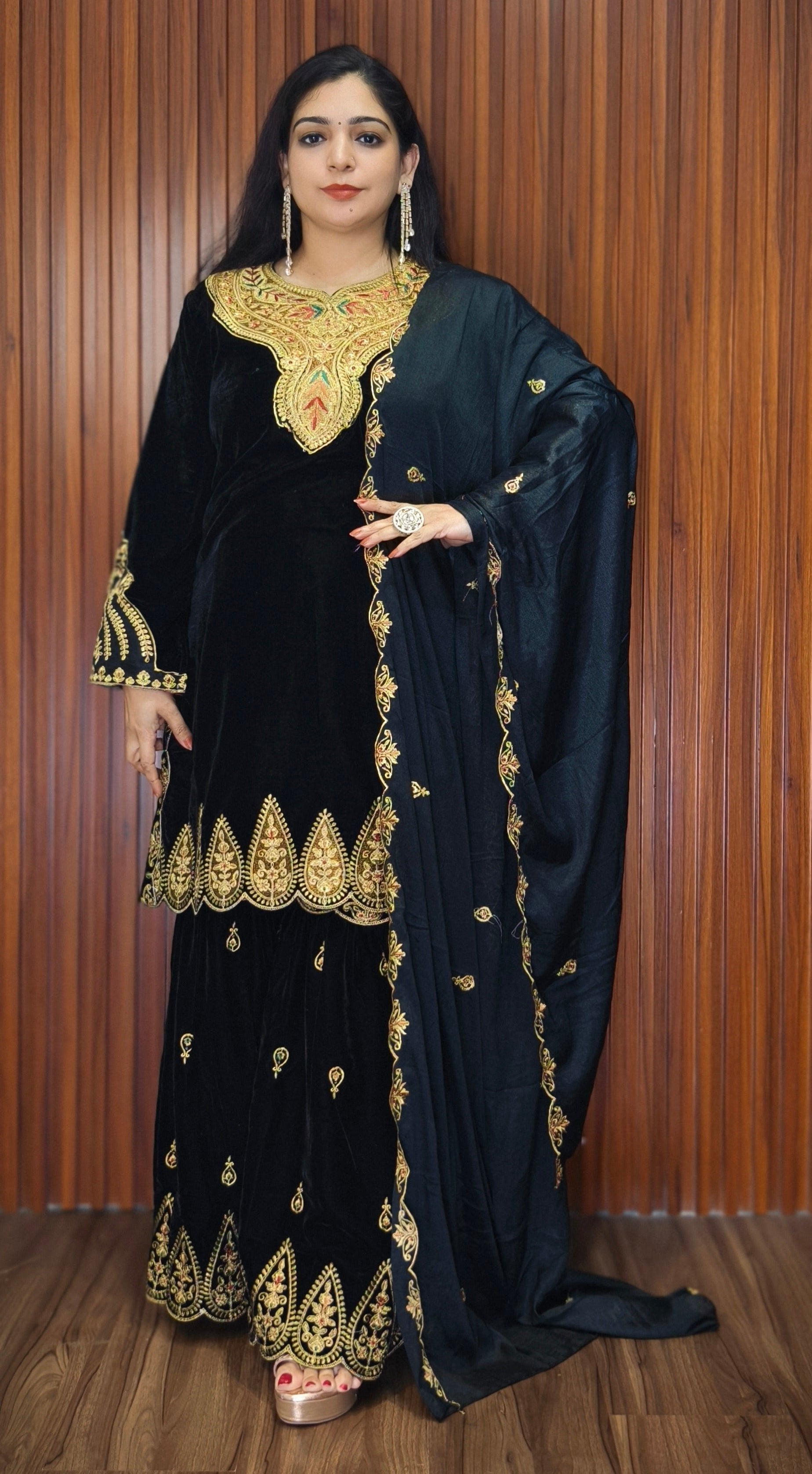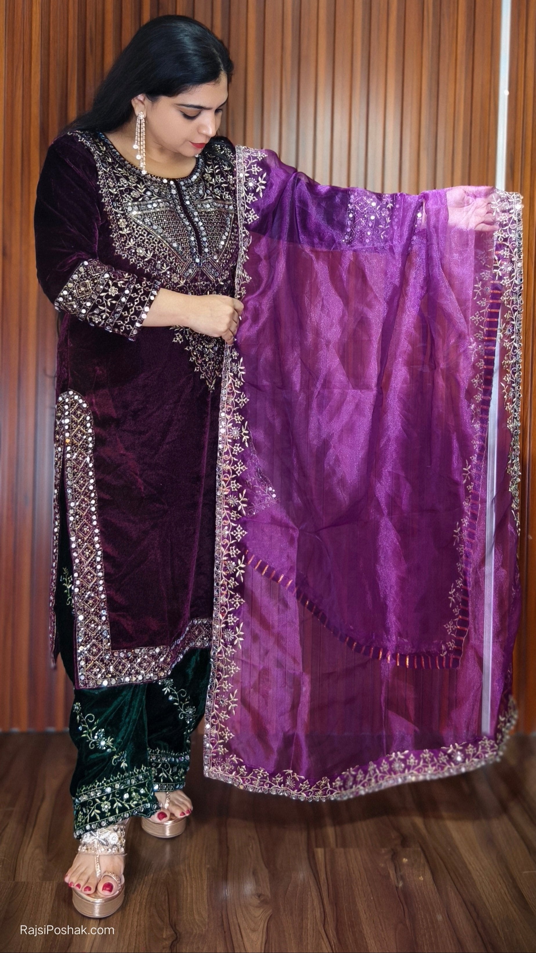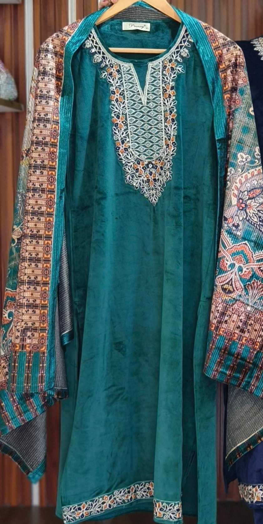 SYTLISH VELVET COORDSET WITH FULL EMBROIDERY WORK