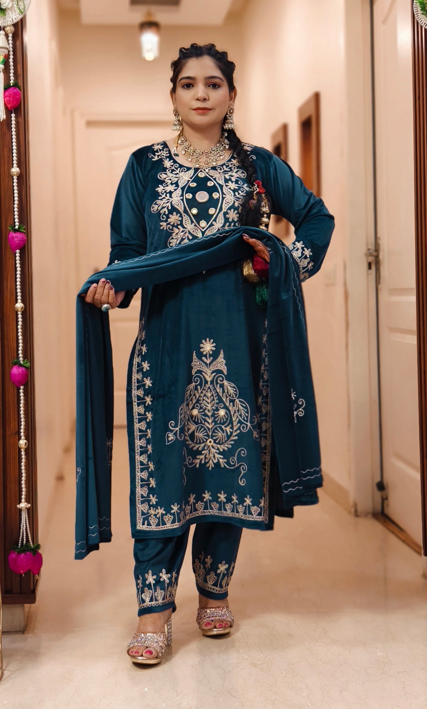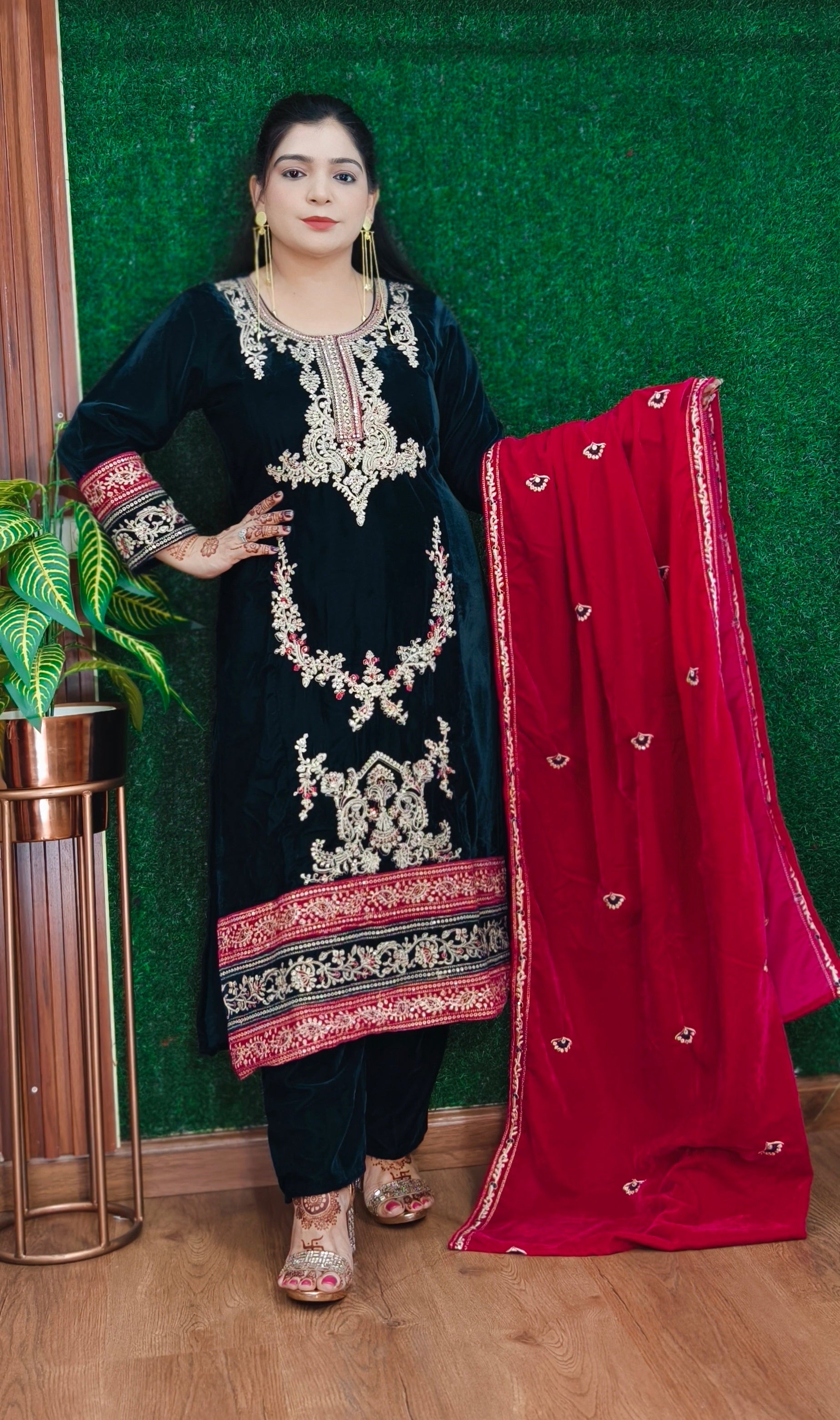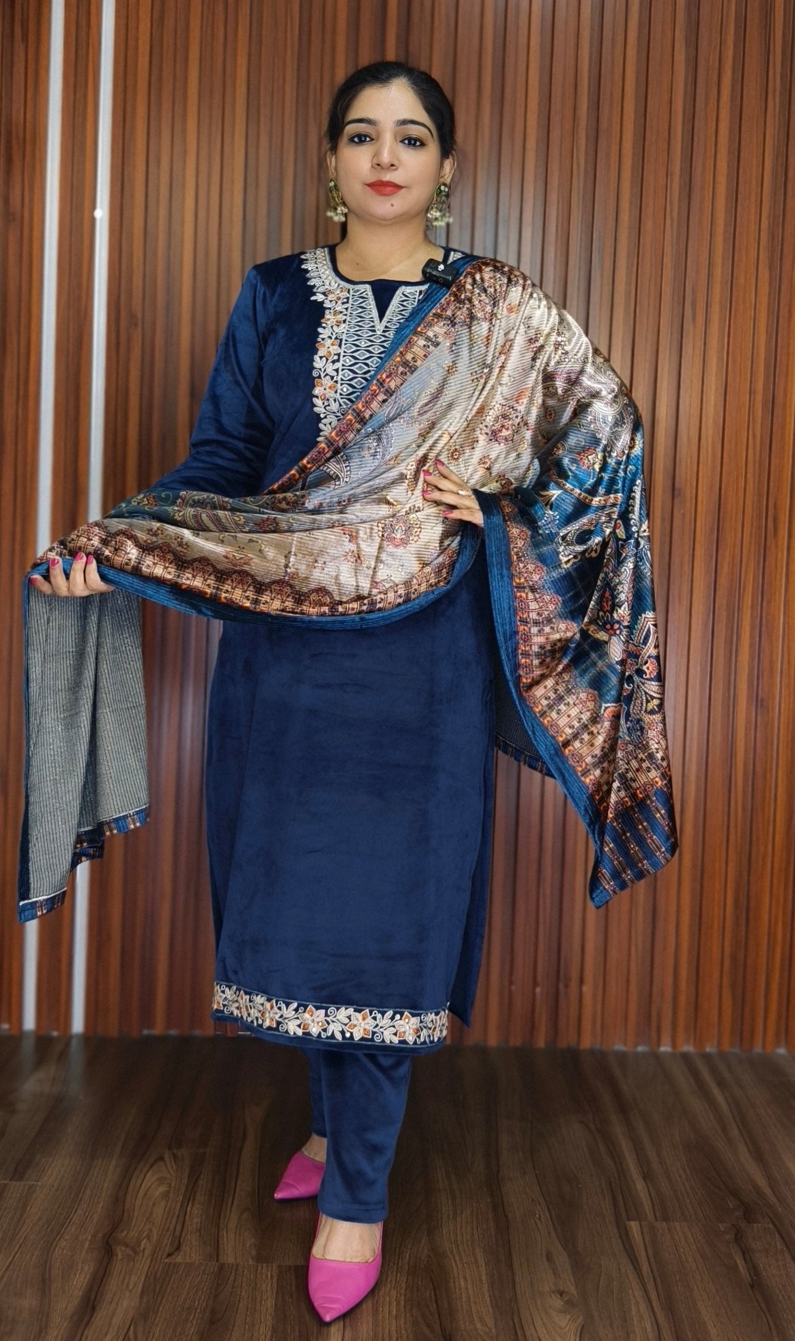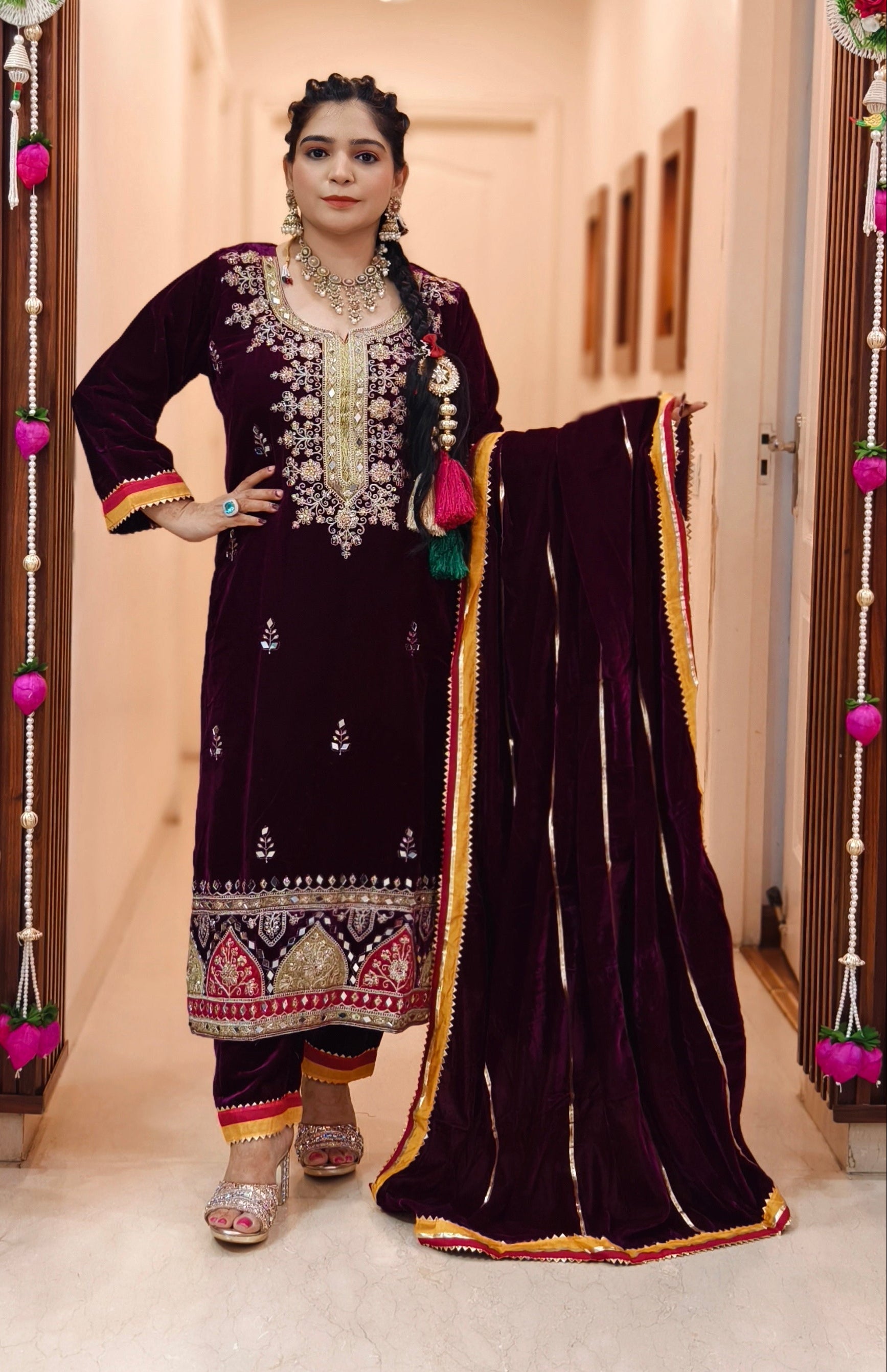 SYTLISH VELVET COORDSET WITH FULL EMBROIDERY WORK