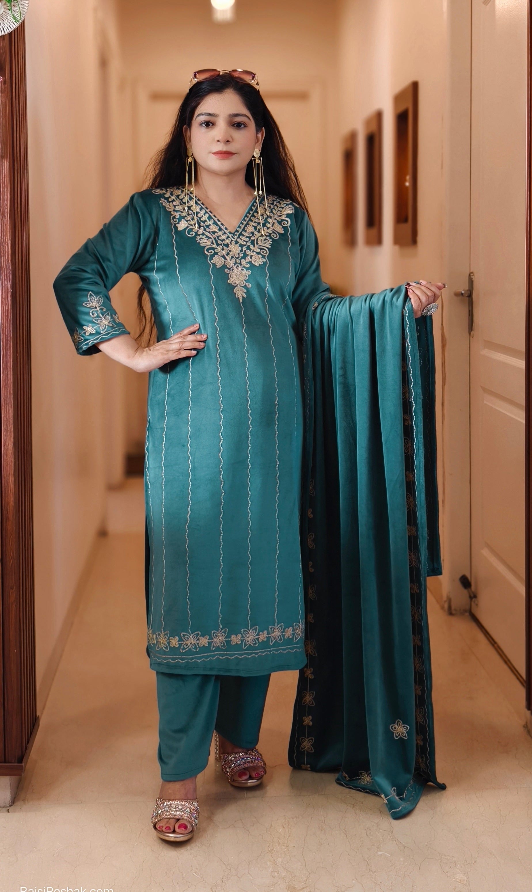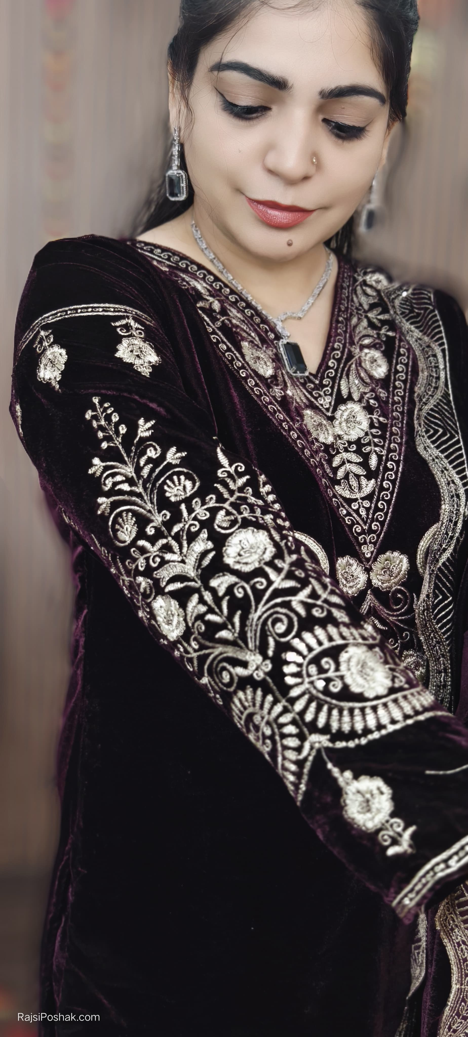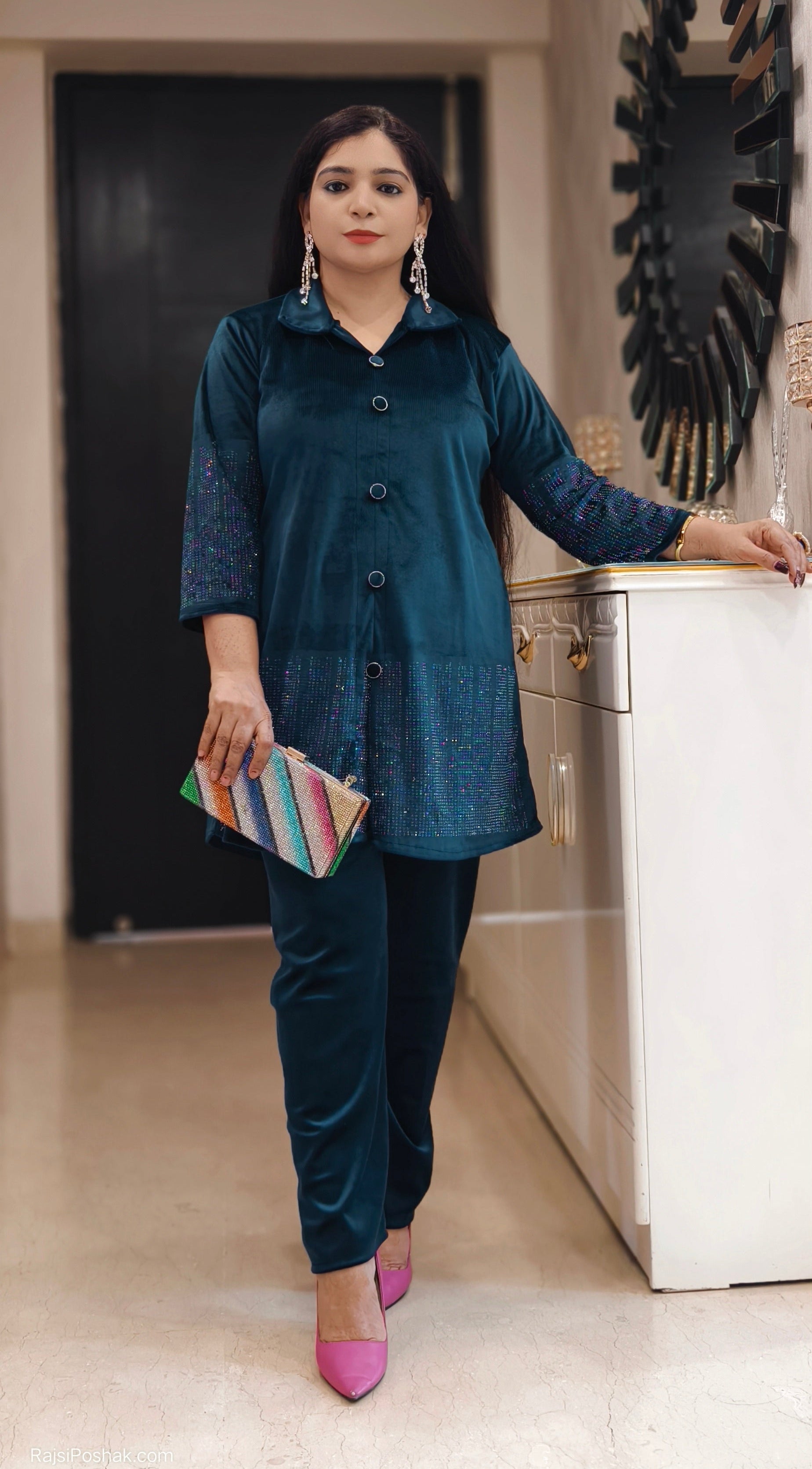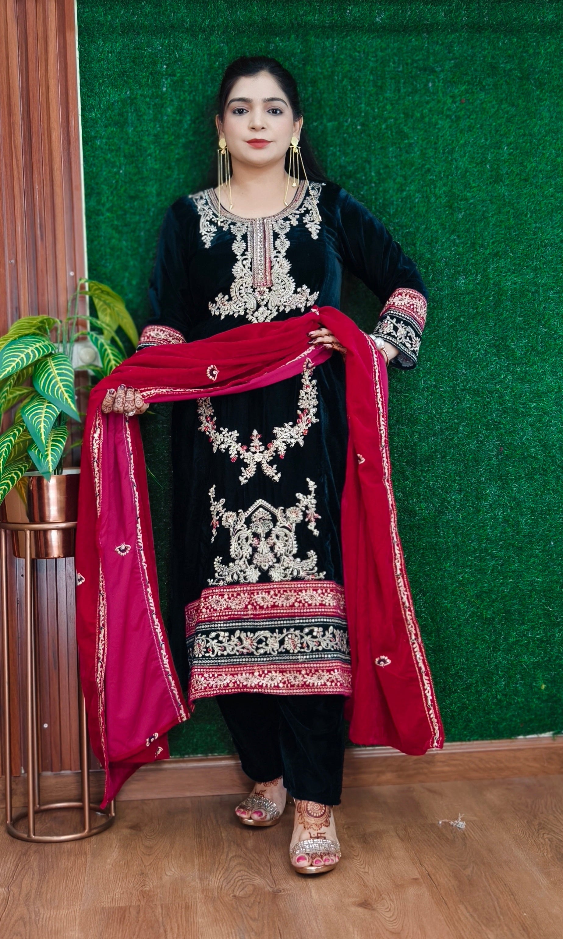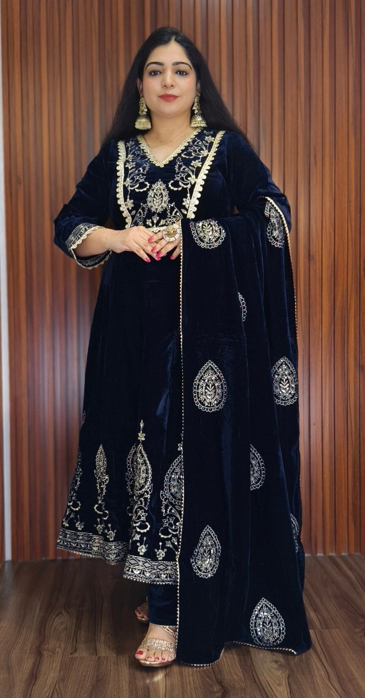 SYTLISH VELVET COORDSET WITH FULL EMBROIDERY WORK